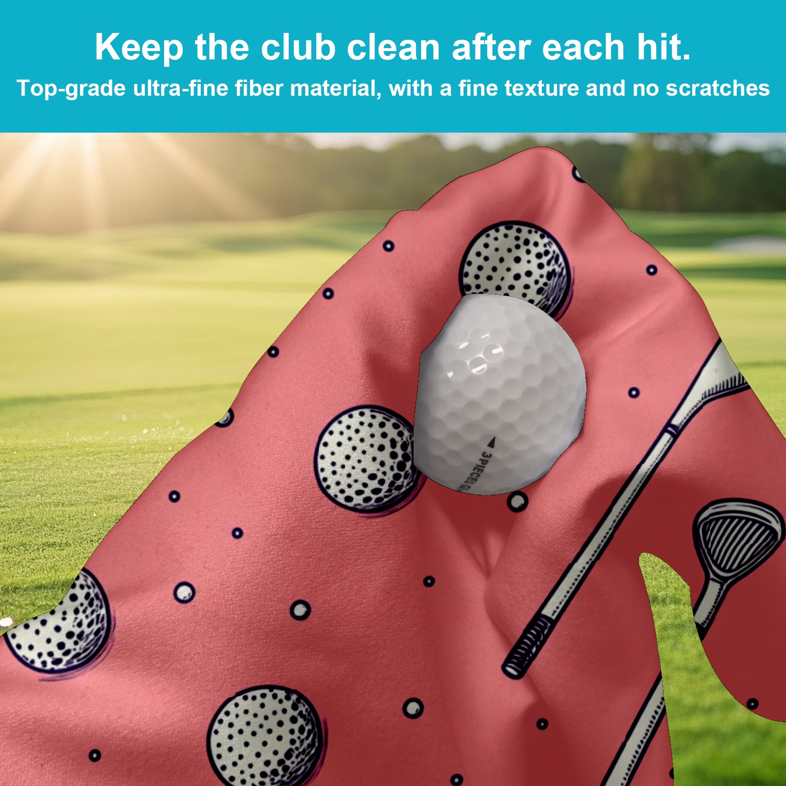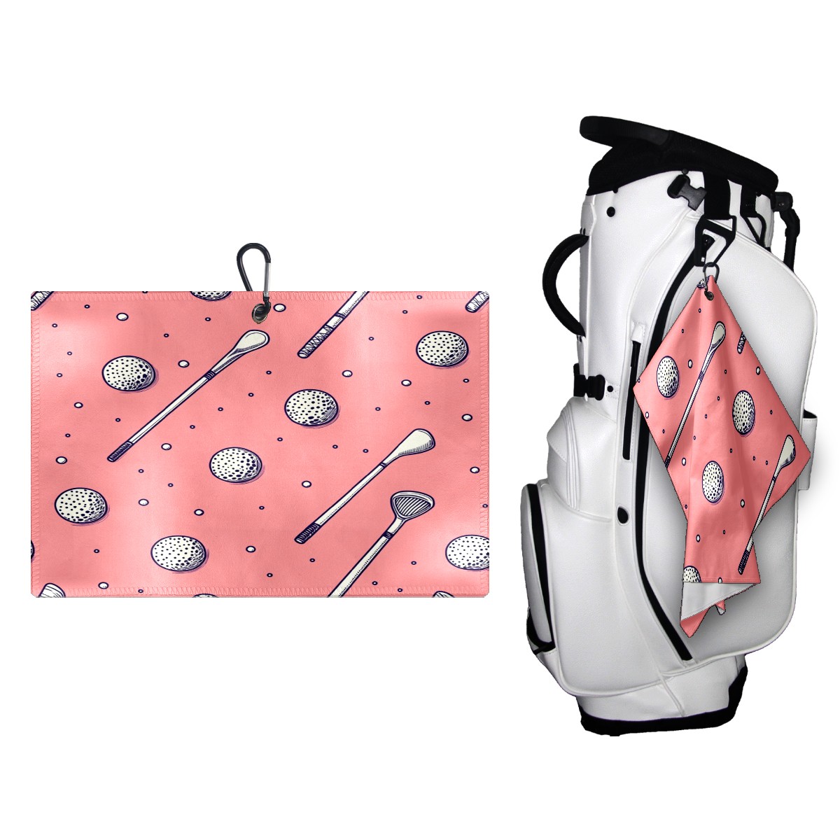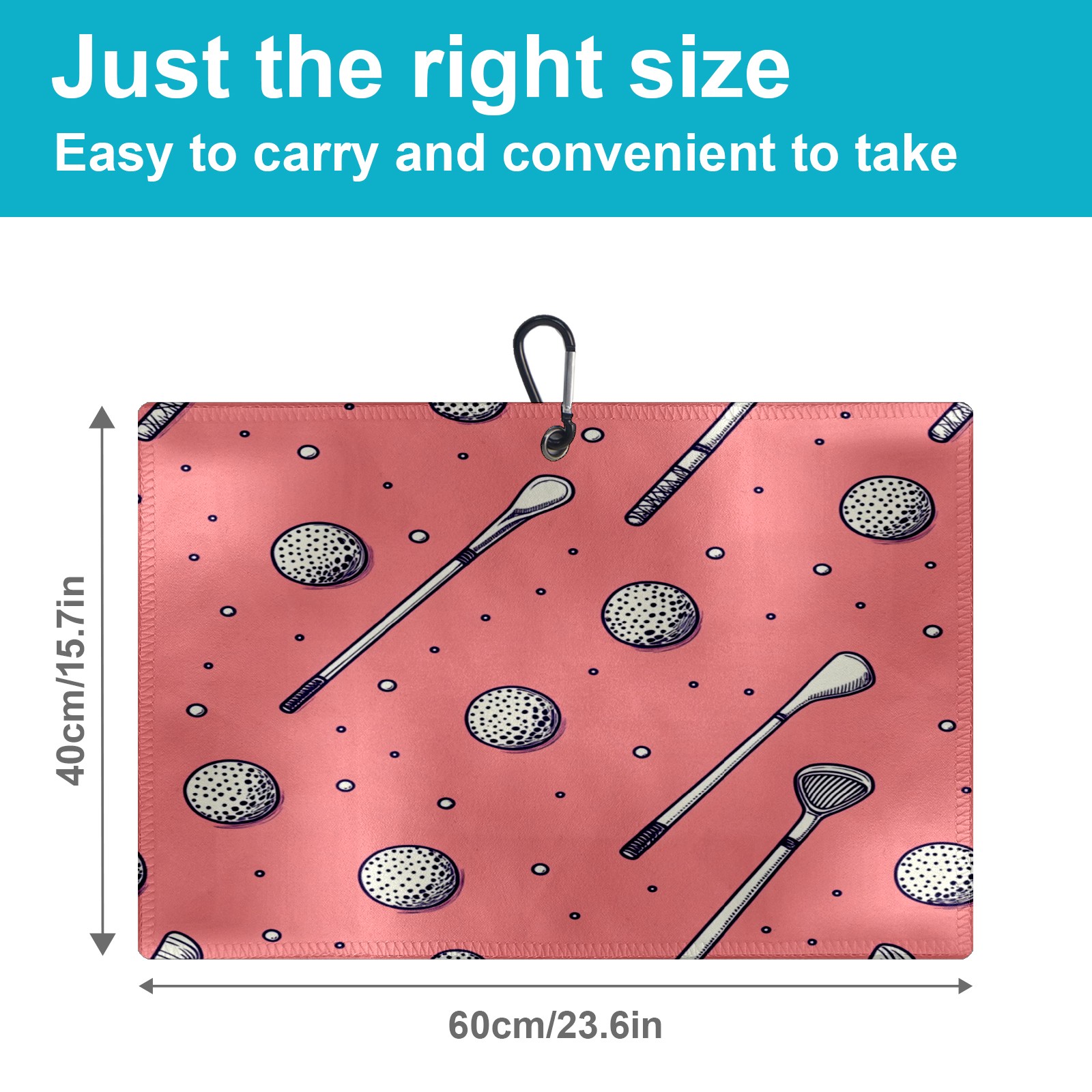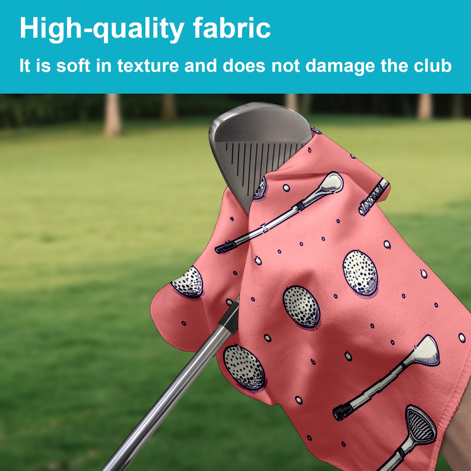 Golf Ball Towel with Absorbent and Fast Drying, Polyester Small Golf Ball Towels,for Cleaning Club Heads and Balls Pink Golf Clubs Pattern
