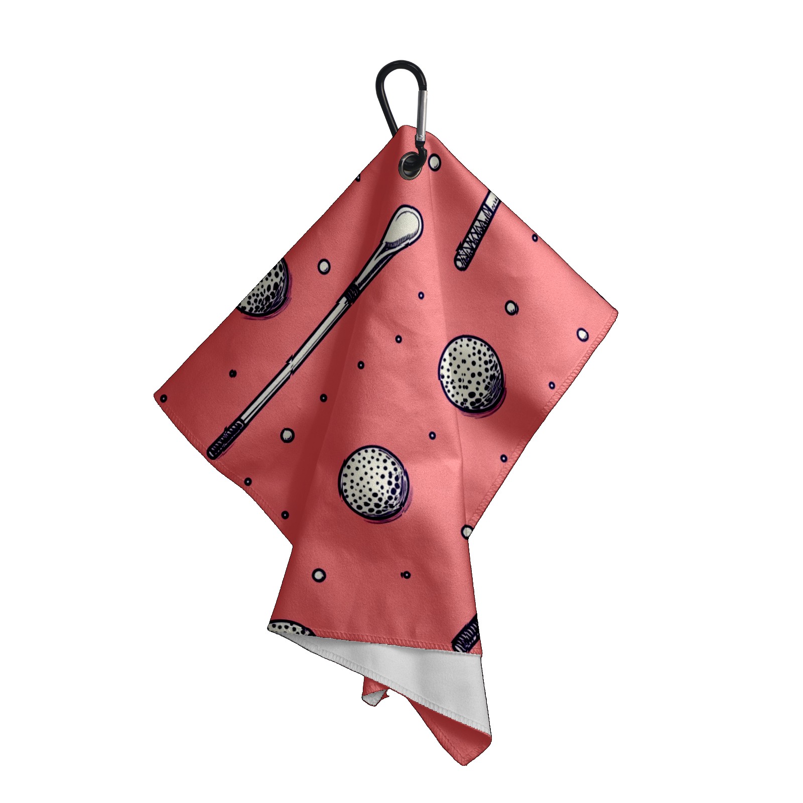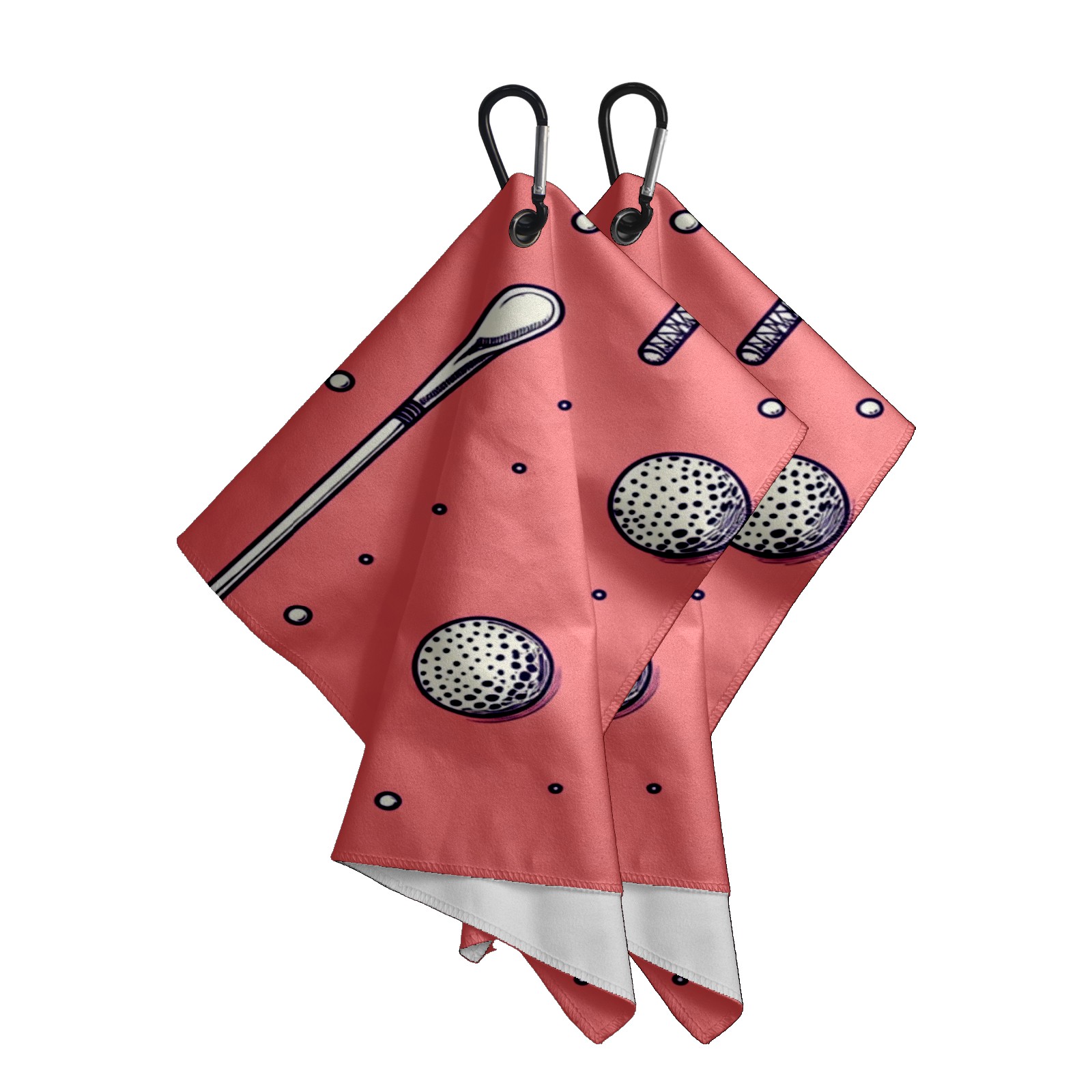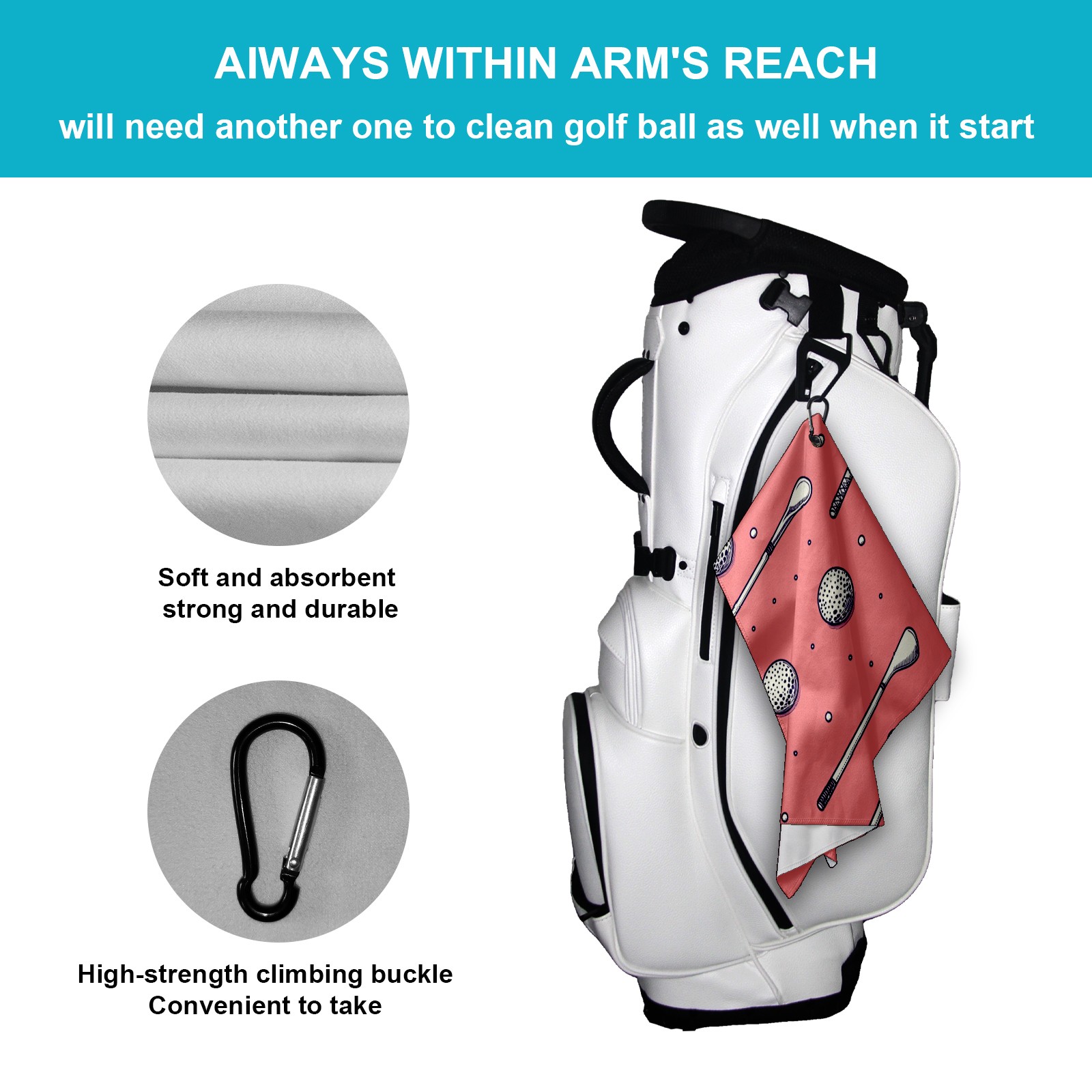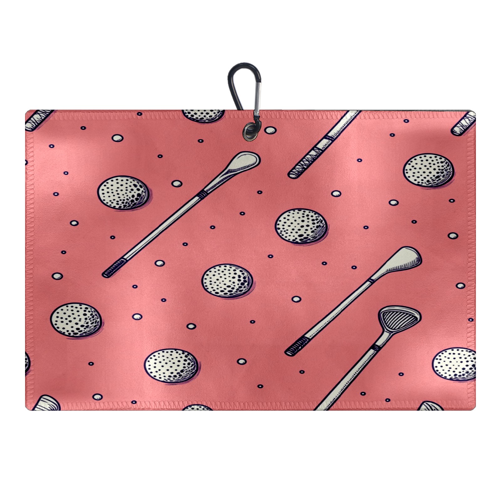 Golf Ball Towel with Absorbent and Fast Drying, Polyester Small Golf Ball Towels,for Cleaning Club Heads and Balls Pink Golf Clubs Pattern