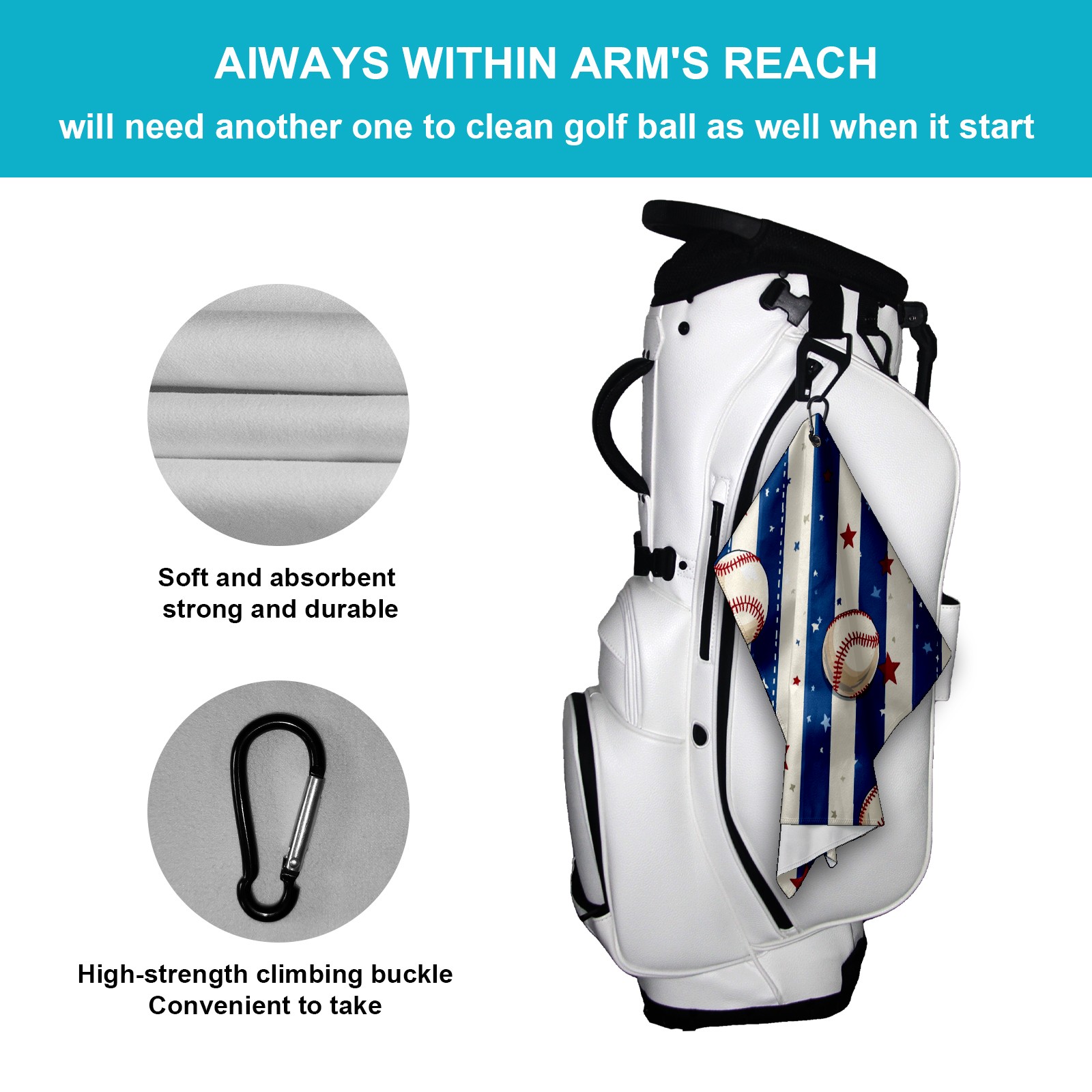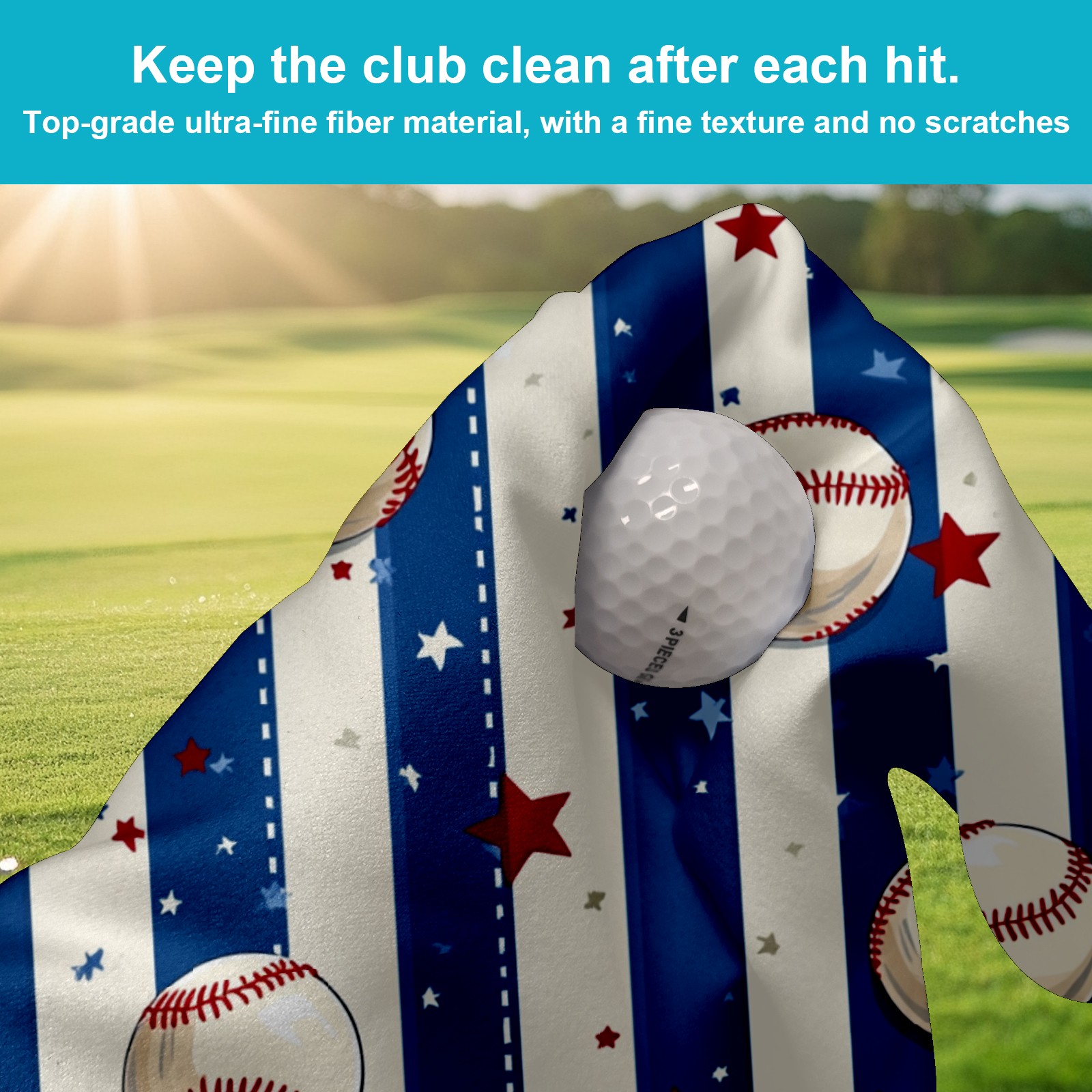 Golf Ball Towel with Absorbent and Fast Drying, Polyester Small Golf Ball Towels,for Cleaning Club Heads and Balls Baseball Pattern