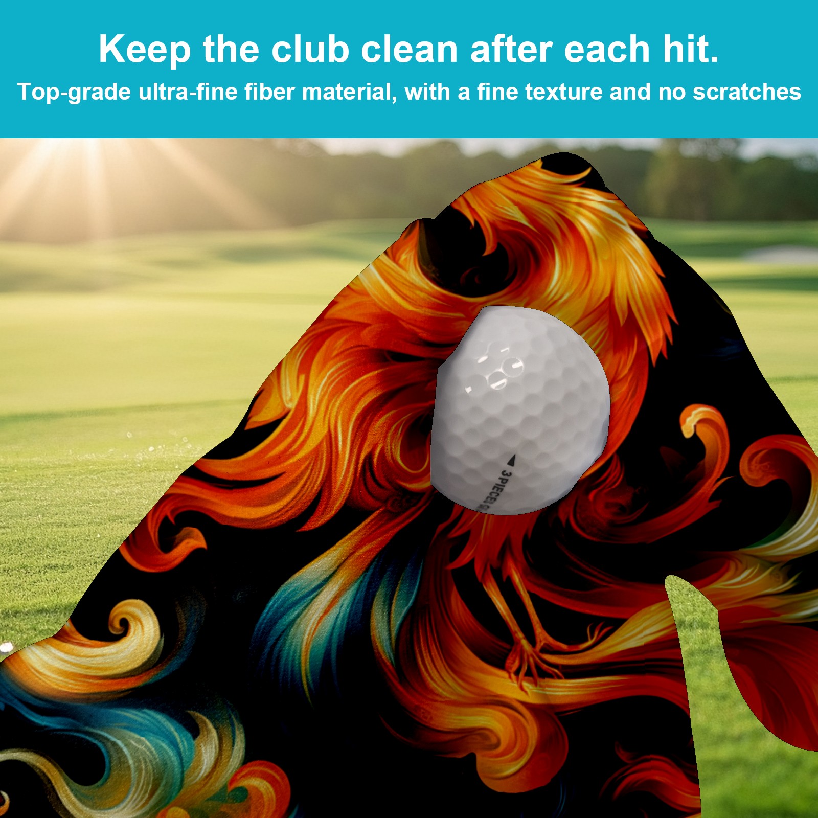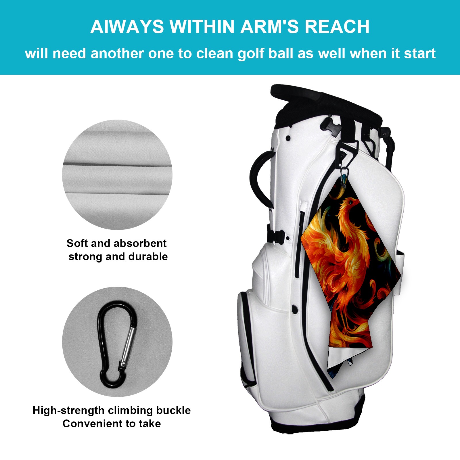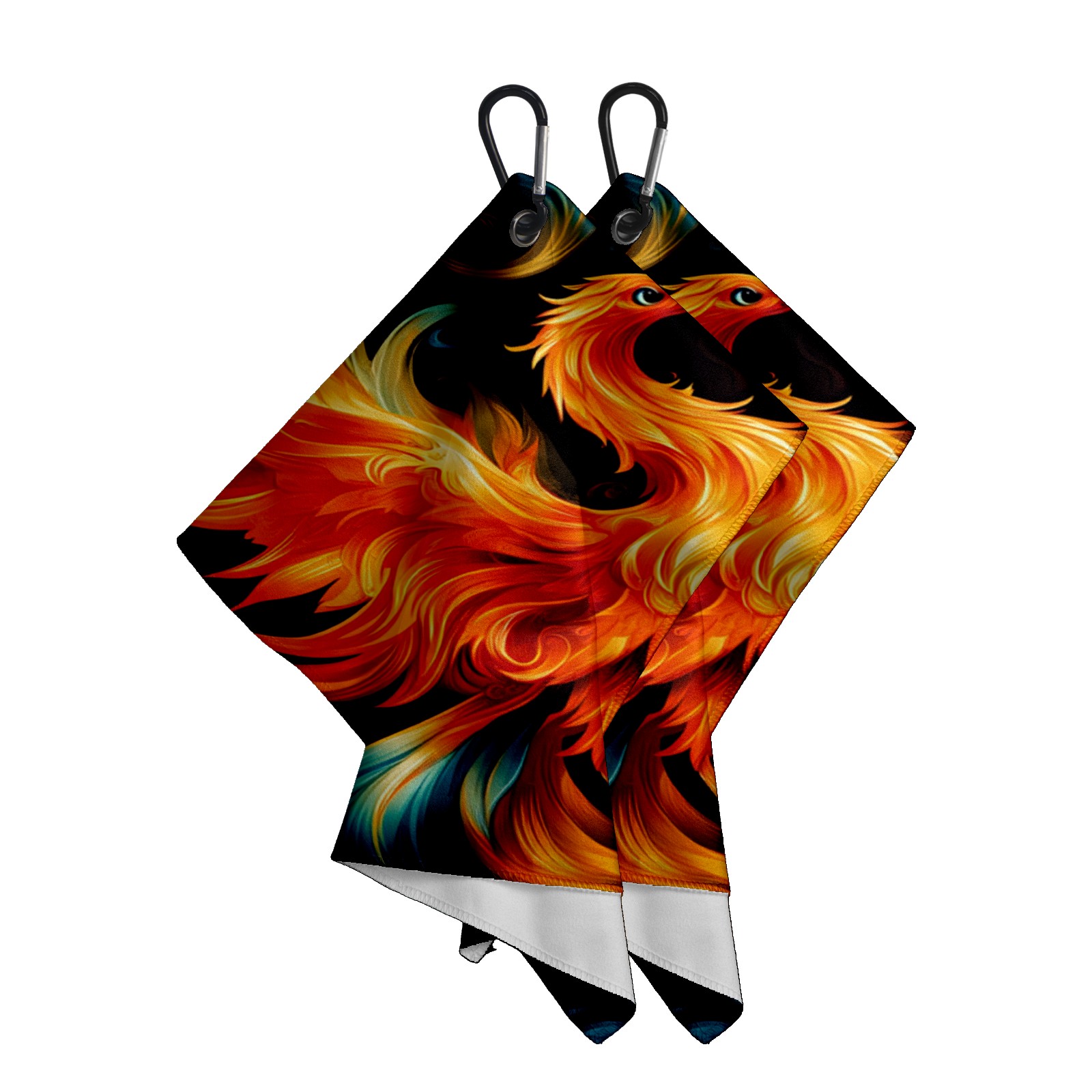 Golf Ball Towel with Absorbent and Fast Drying, Polyester Small Golf Ball Towels,for Cleaning Club Heads and Balls Phoenix Pattern