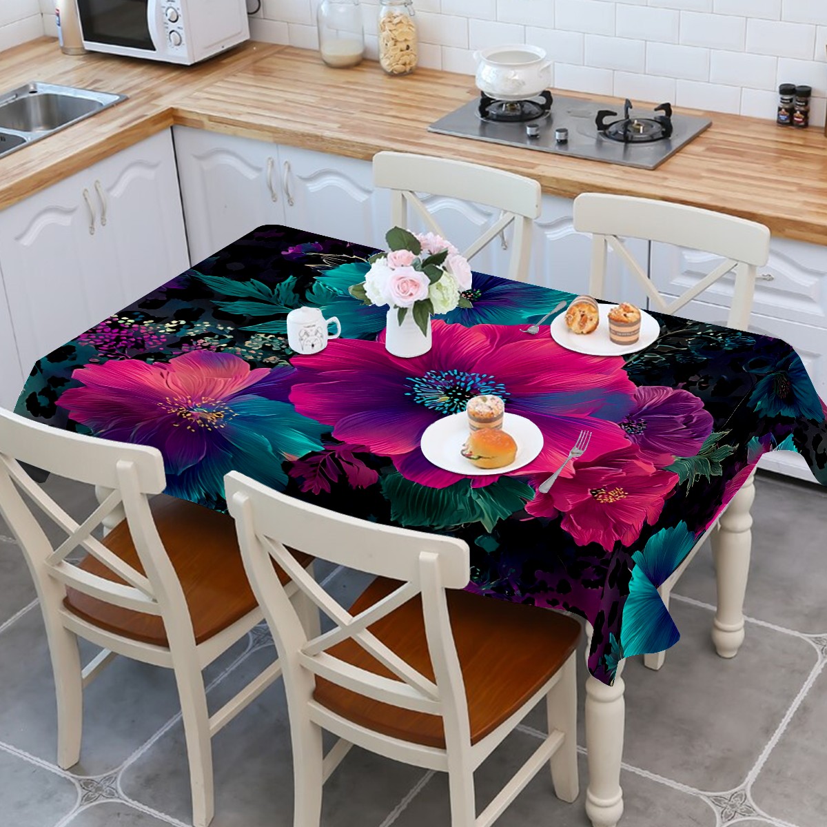 Psychedelic Flower Purple Tablecloth - Polyester Wrinkle-Resistant Table Cover | Durable, Stain-Resistant Tablecloth for Dining Room, Outdoor Patio, Picnic & Party