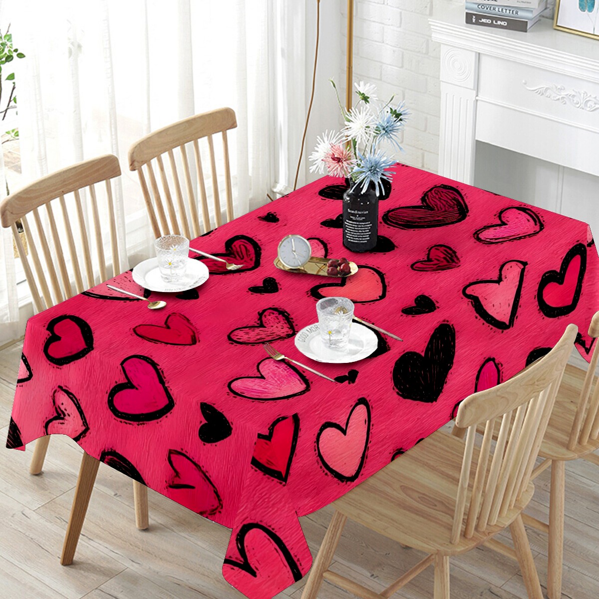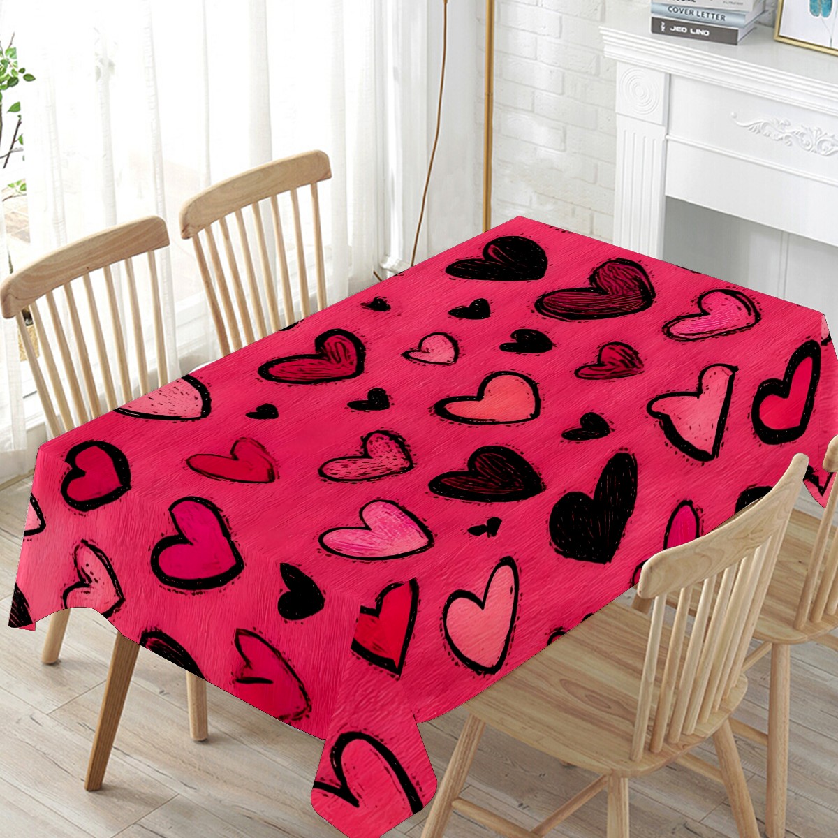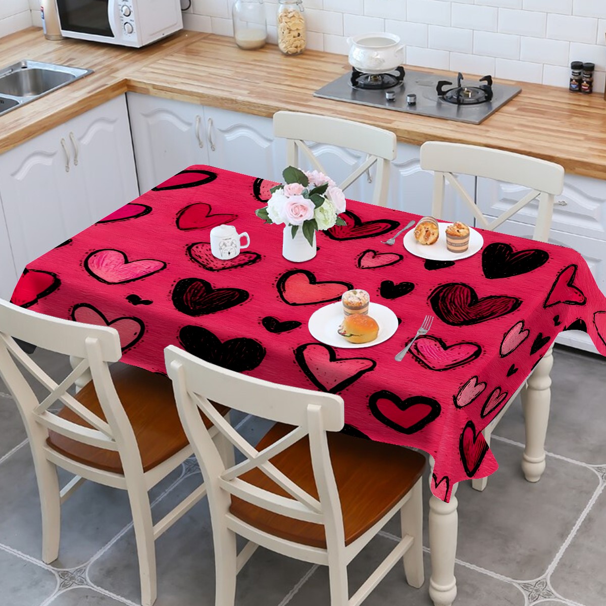 Fiery Heart Red Tablecloth - Polyester Wrinkle-Resistant Table Cover | Durable, Stain-Resistant Tablecloth for Dining Room, Outdoor Patio, Picnic & Party