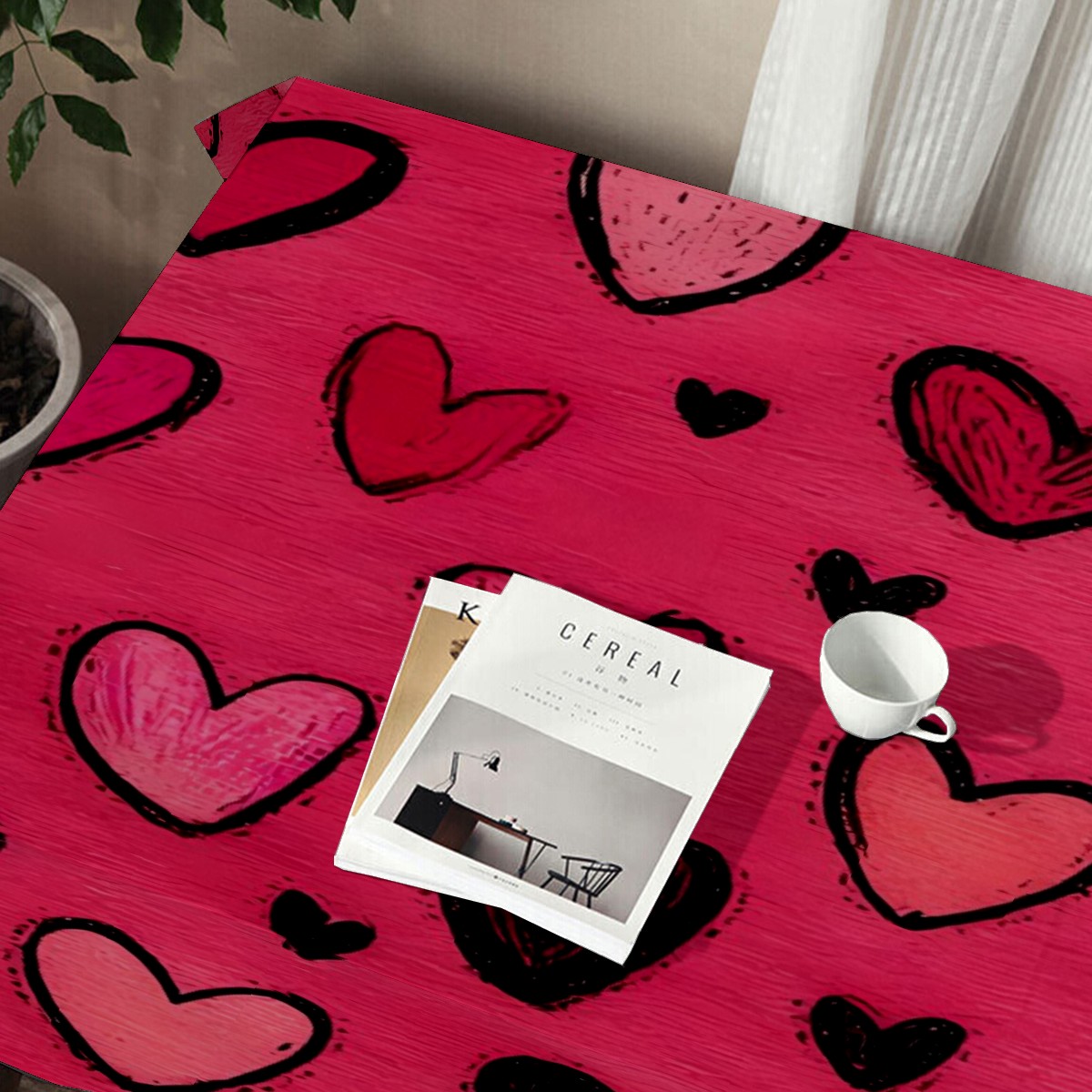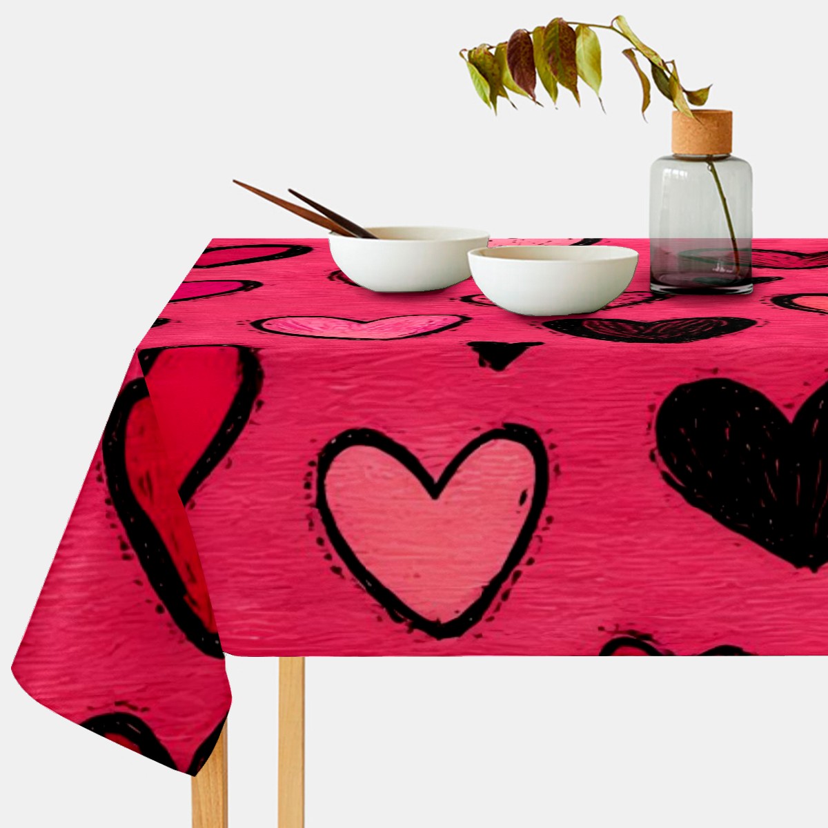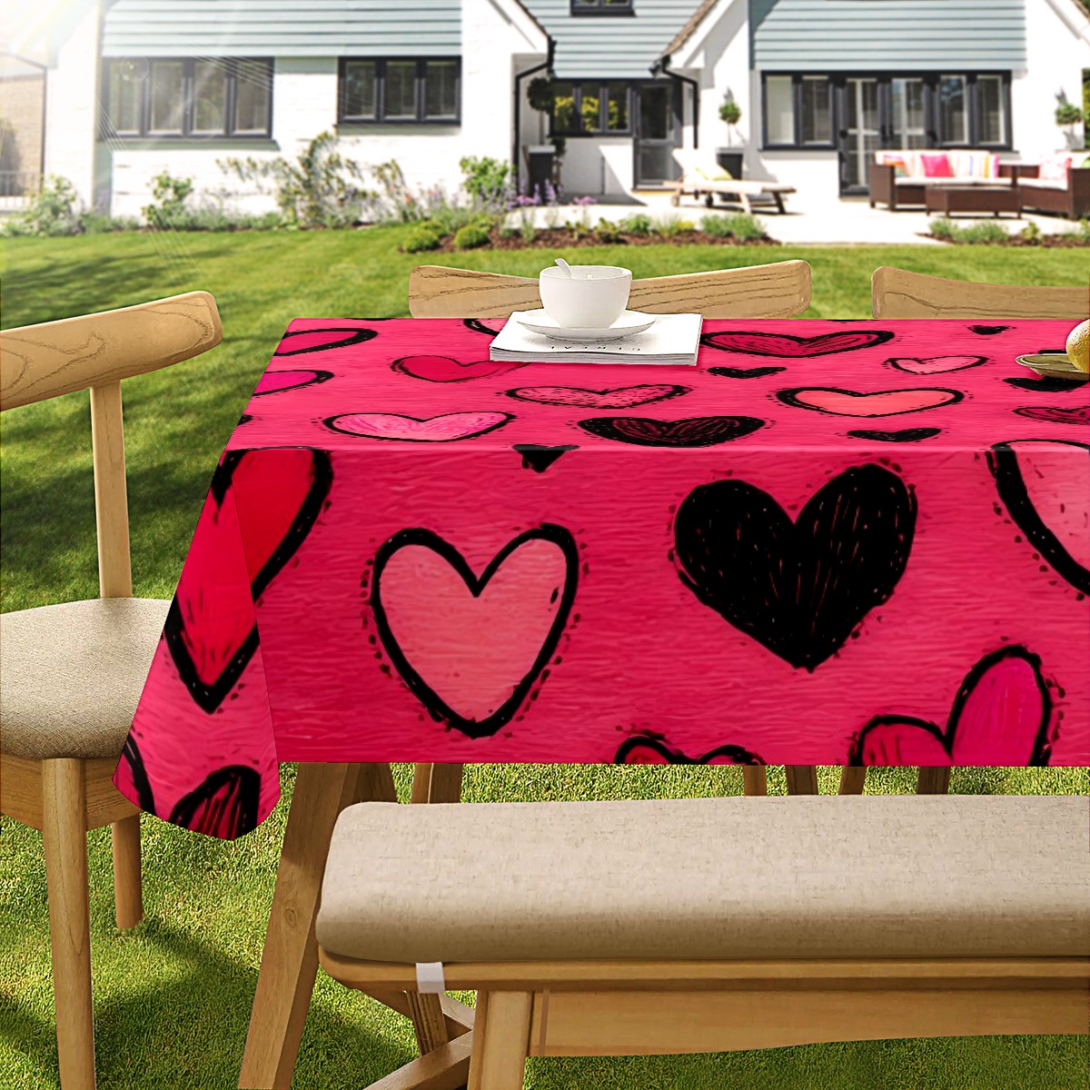 Fiery Heart Red Tablecloth - Polyester Wrinkle-Resistant Table Cover | Durable, Stain-Resistant Tablecloth for Dining Room, Outdoor Patio, Picnic & Party