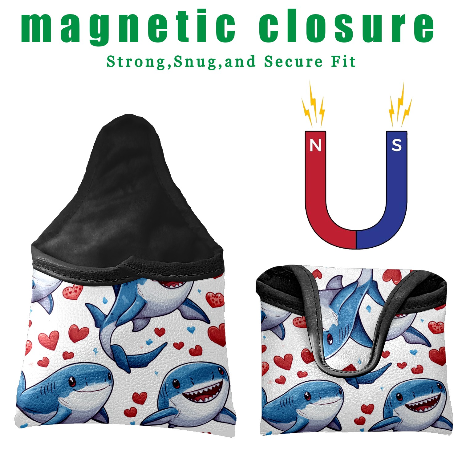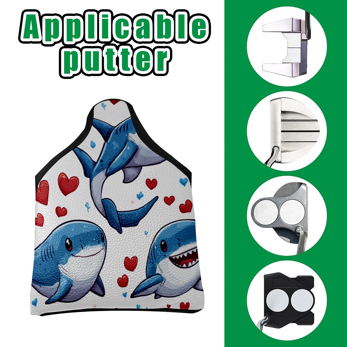 Golf Putter Covers Mallet Putter Headcover Leather Putter Covers Golf Club Covers Magnetic Golf Putter Headcover for Most Brand Cute Shark