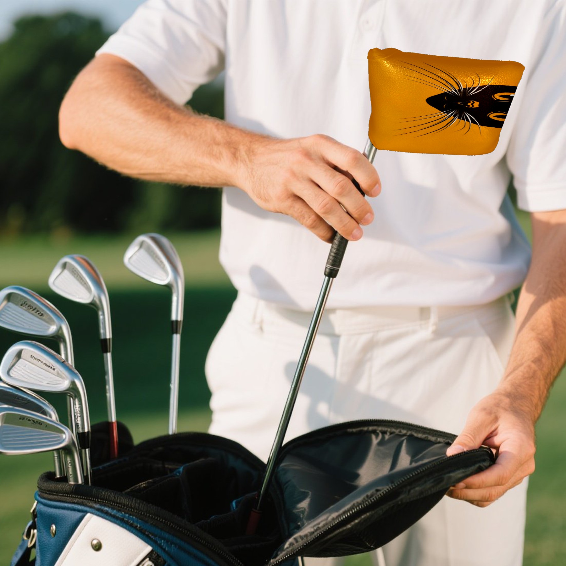 <p>Crafted from premium leather, this putter cover offers the ideal combination of durability and luxurious softness. It effectively protects against dents, unsightly scratches, and moisture damage, keeping your putter head looking pristine round after round. Designed for easy maintenance, this putter cover is simple to wipe clean, ensuring long-lasting protection and keeping your club looking fresh season after season. Its superior, ultra-strong magnetic closure ensures a secure fit every time – you'll never have to worry about your putter cover slipping off during your swing or transport. Beyond its unparalleled practicality, this putter cover is also a fun and stylish golf accessory. Its humorous and unique design adds a playful touch to your golf bag, bringing smiles and compliments from you and your playing partners. Whether for personal use or as a thoughtful gift for a golf enthusiast, friend, family member, or colleague, it perfectly blends style, reliable protection, and lighthearted charm, making it a must-have for every golfer.</p>