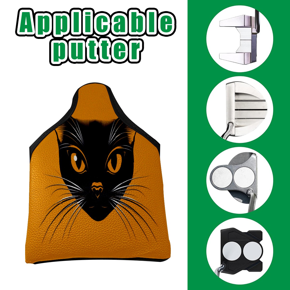 Golf Putter Covers Mallet Putter Headcover Leather Putter Covers Golf Club Covers Magnetic Golf Putter Headcover for Most Brand Cat Face