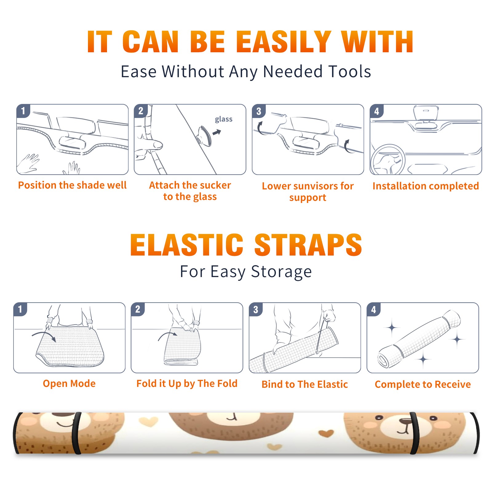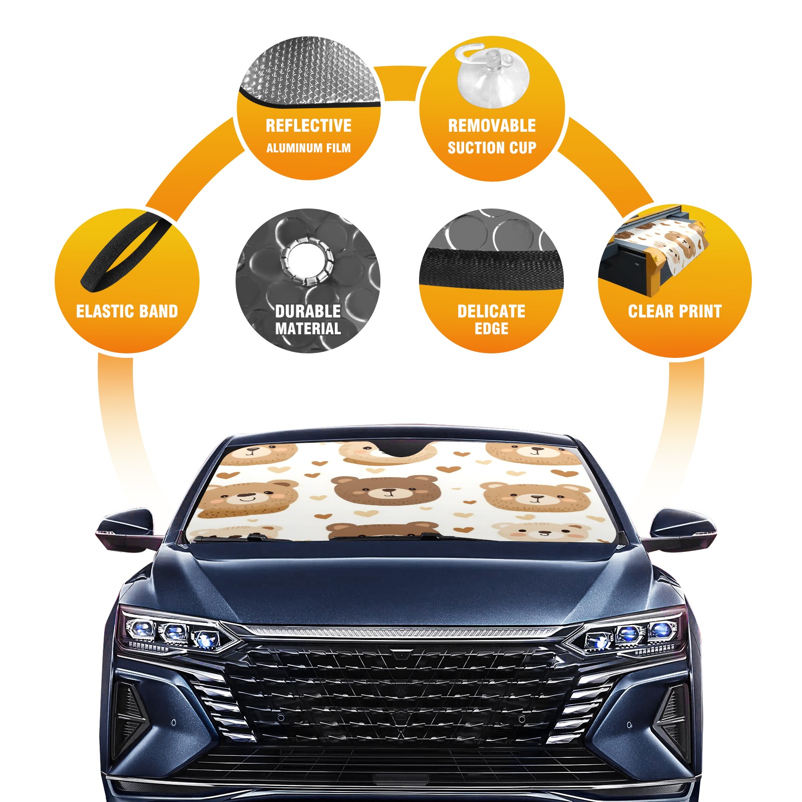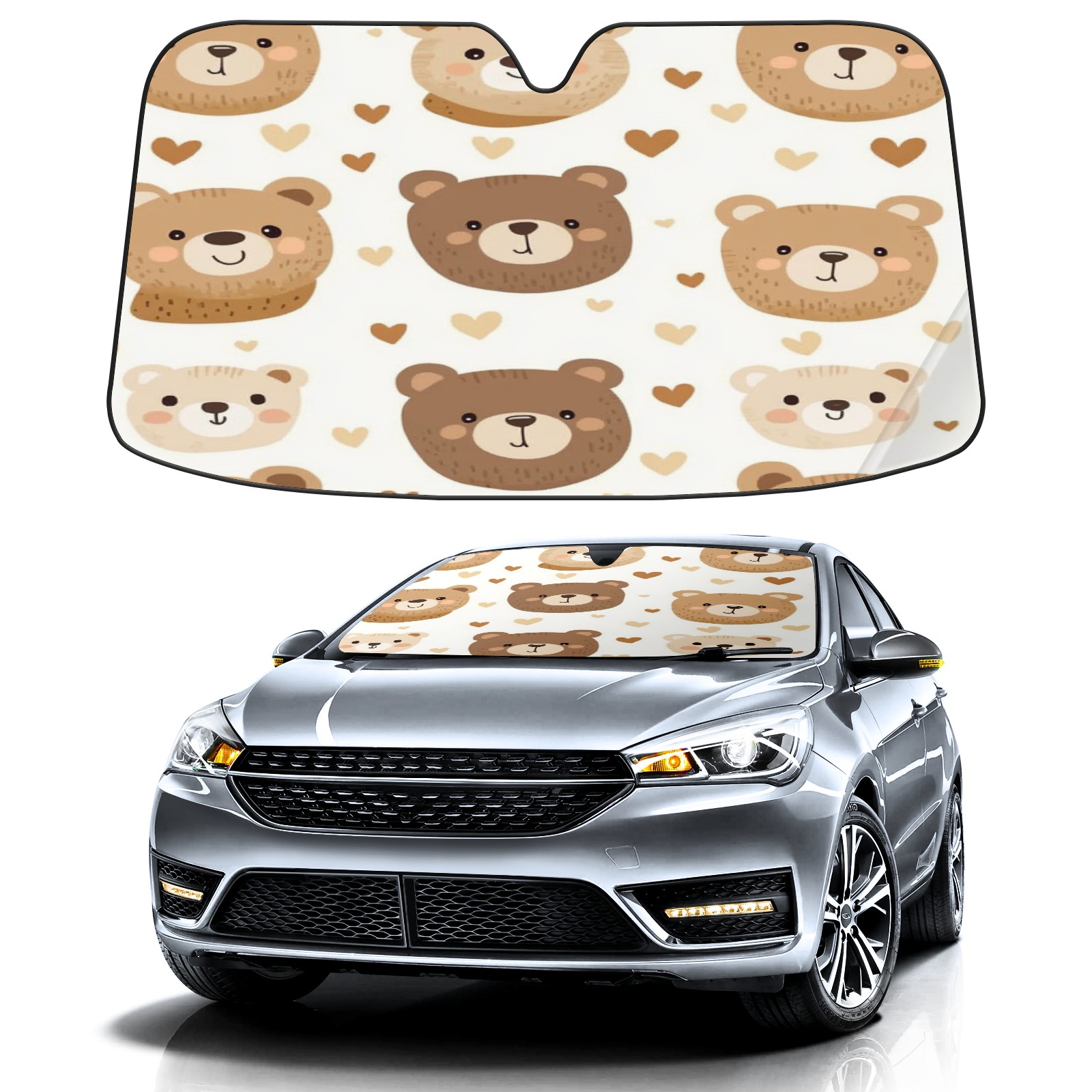 Car Windshield Sun Shade with UV Block & Heat Protection, Universal Foldable Front Window Sunshade for Automotive Sun Protection, Easy Fold Design(Teddy Bear)