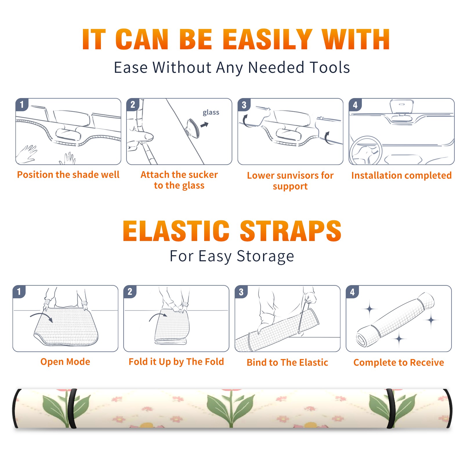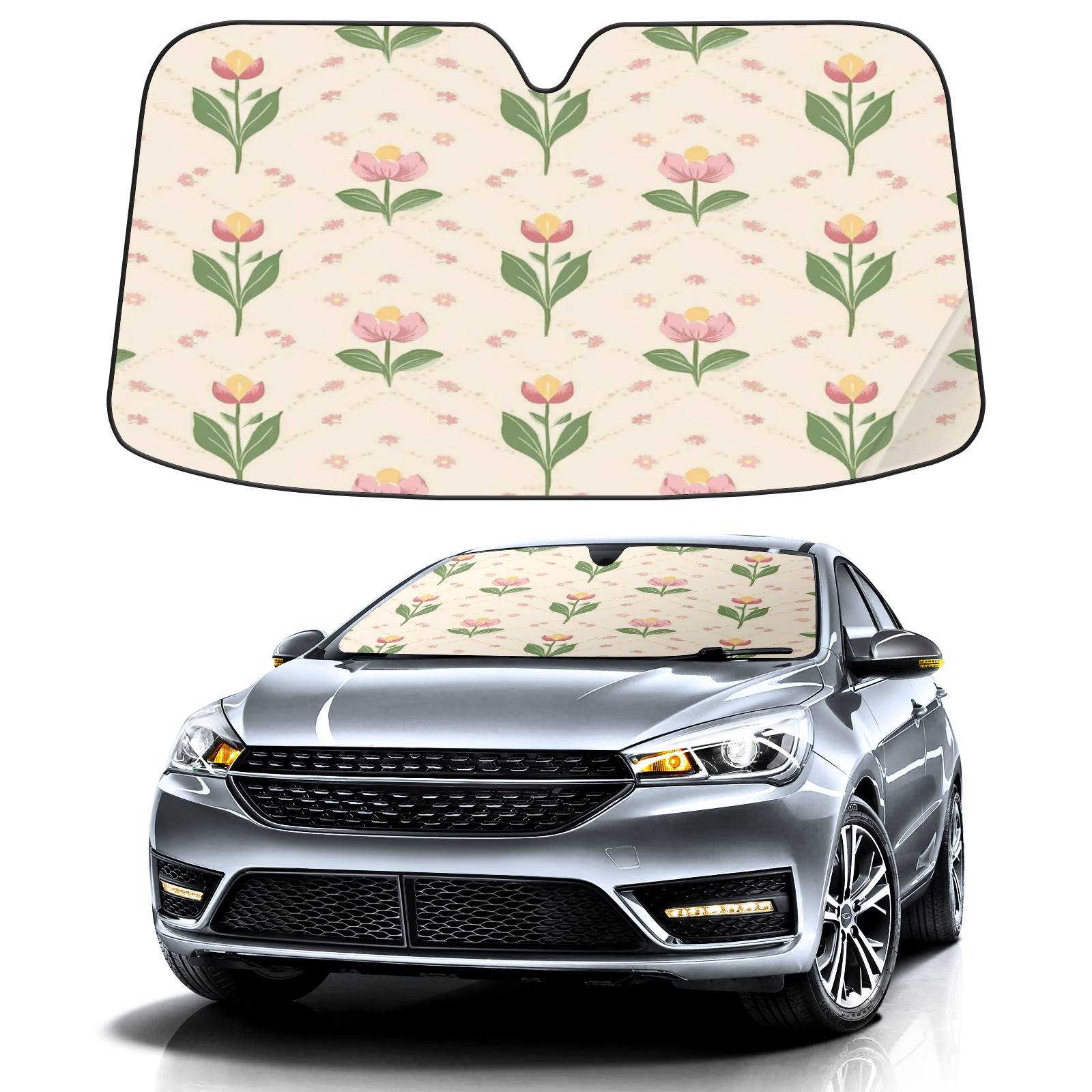 Car Windshield Sun Shade with UV Block & Heat Protection, Universal Foldable Front Window Sunshade for Automotive Sun Protection, Easy Fold Design(Small Tulips)