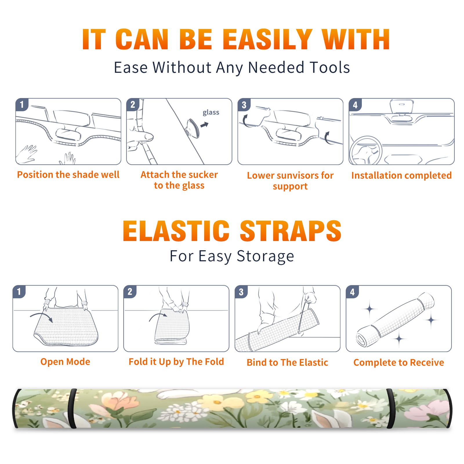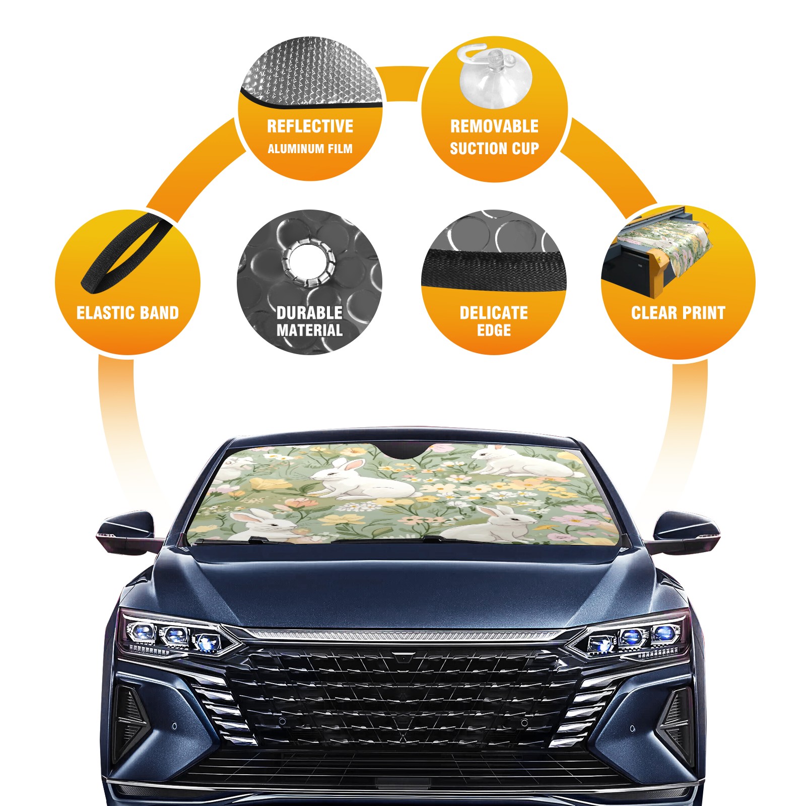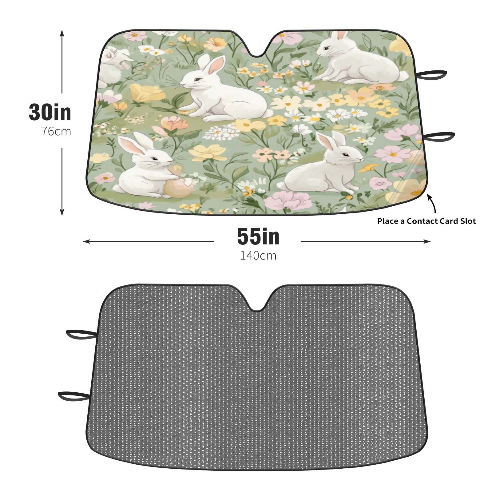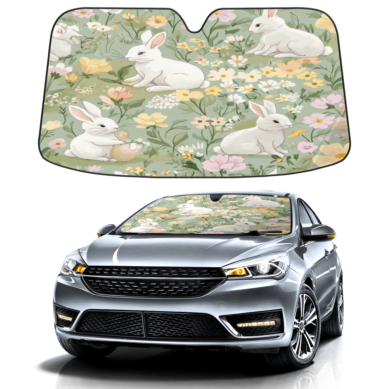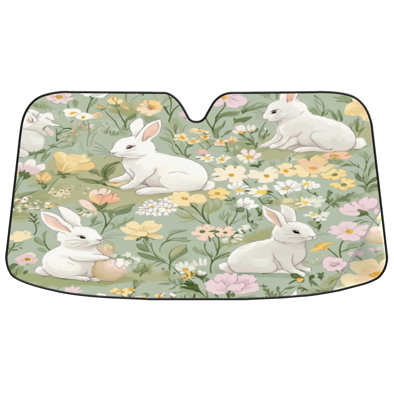 Car Windshield Sun Shade with UV Block & Heat Protection, Universal Foldable Front Window Sunshade for Automotive Sun Protection, Easy Fold Design(Rabbits And Pastel Flowers)