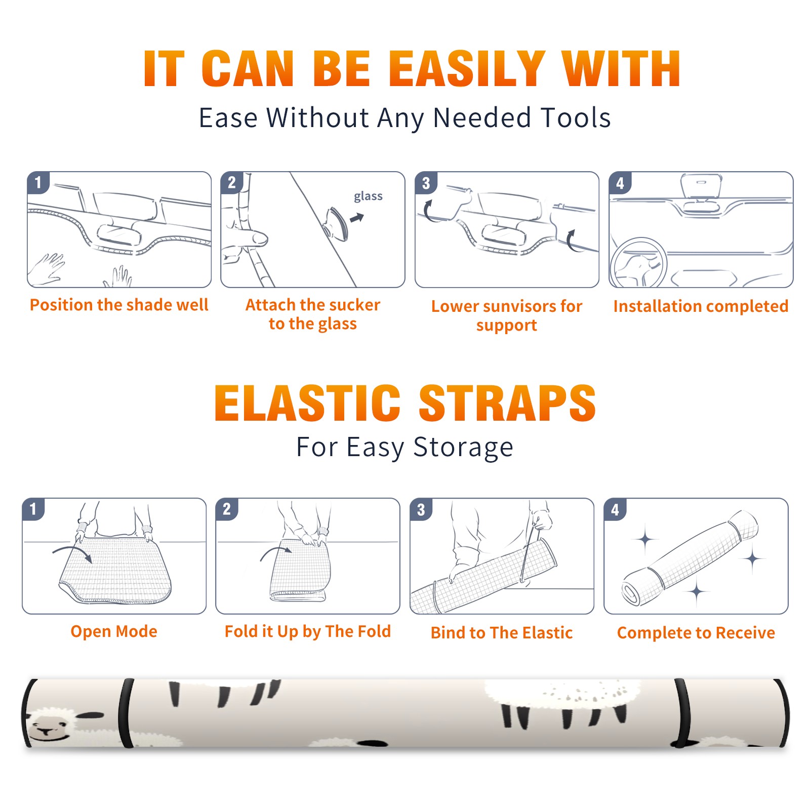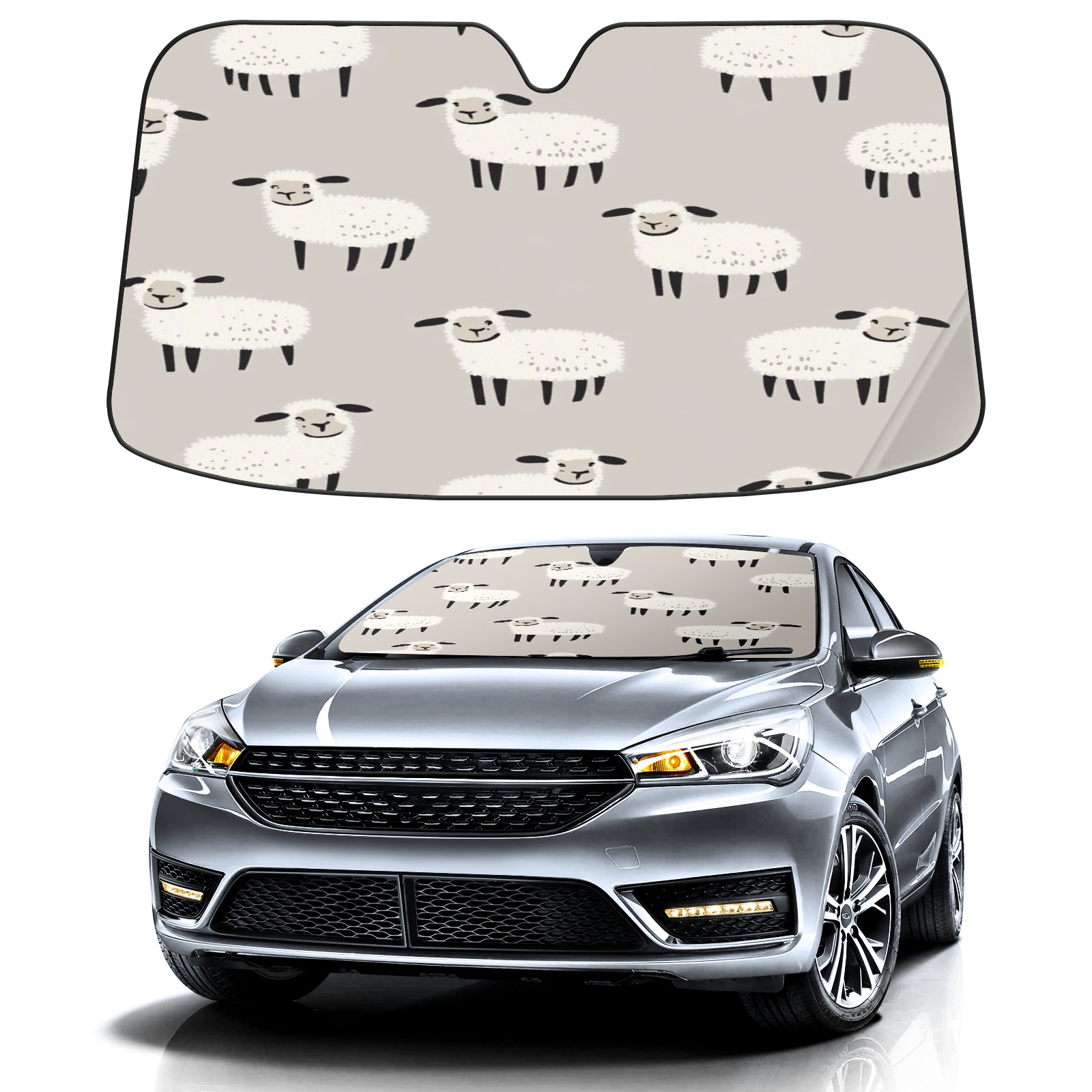 Car Windshield Sun Shade with UV Block & Heat Protection, Universal Foldable Front Window Sunshade for Automotive Sun Protection, Easy Fold Design(Sheep)