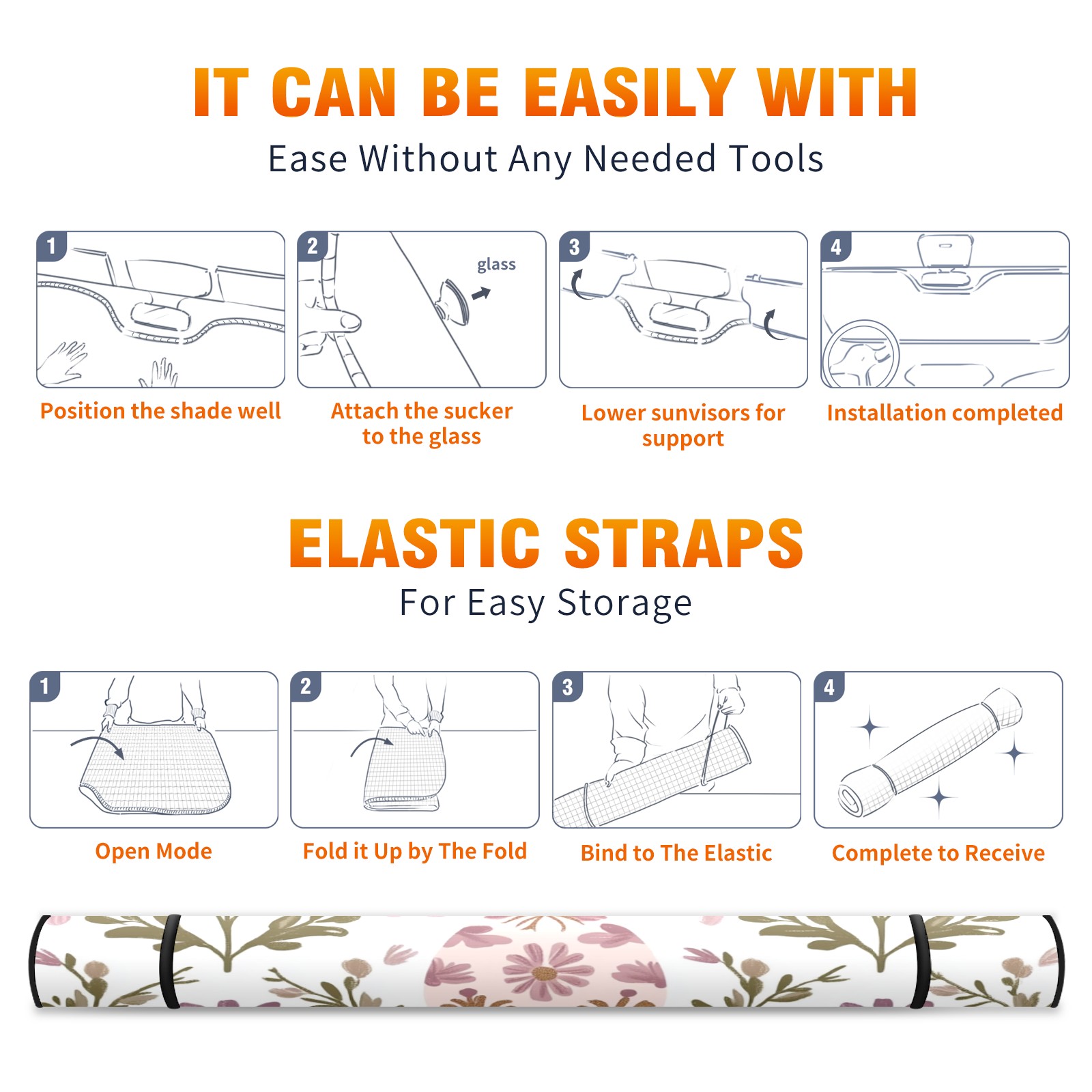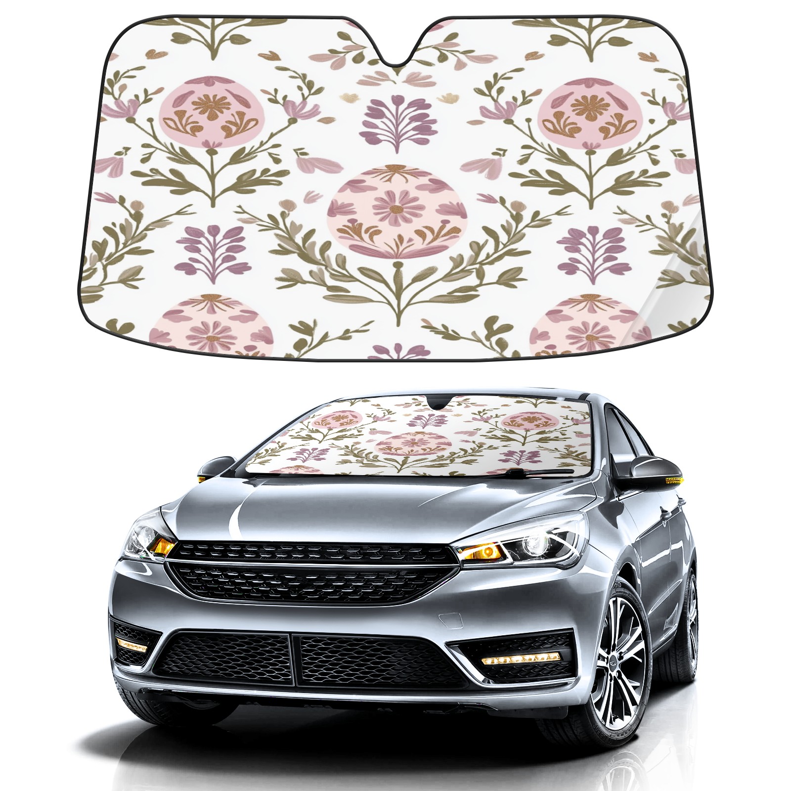 Car Windshield Sun Shade with UV Block & Heat Protection, Universal Foldable Front Window Sunshade for Automotive Sun Protection, Easy Fold Design(Egg-shaped Floral)