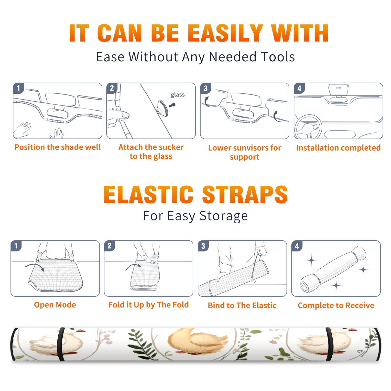 Car Windshield Sun Shade with UV Block & Heat Protection, Universal Foldable Front Window Sunshade for Automotive Sun Protection, Easy Fold Design(Cute Geese)