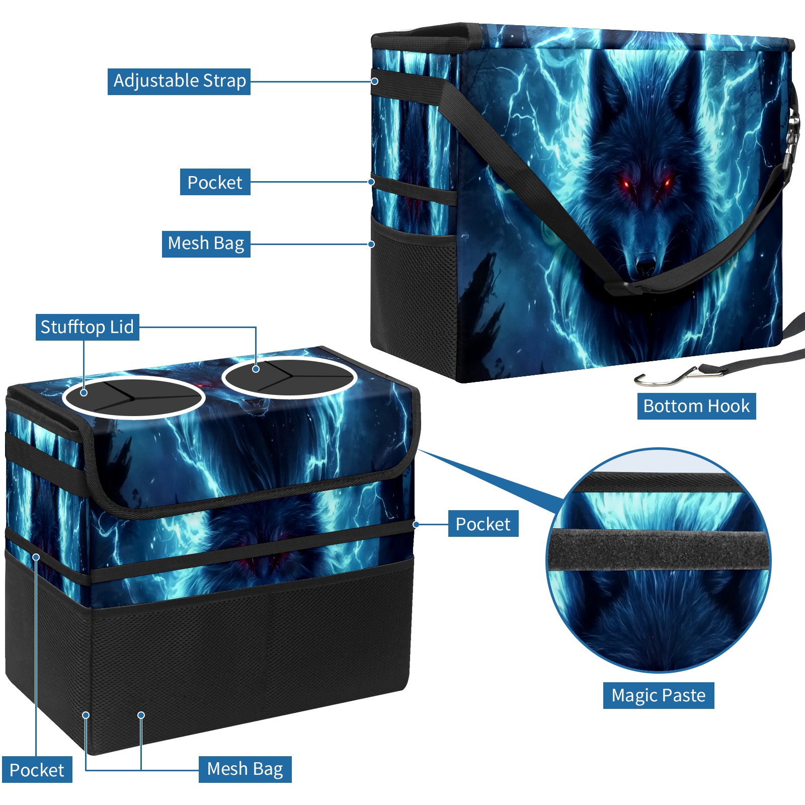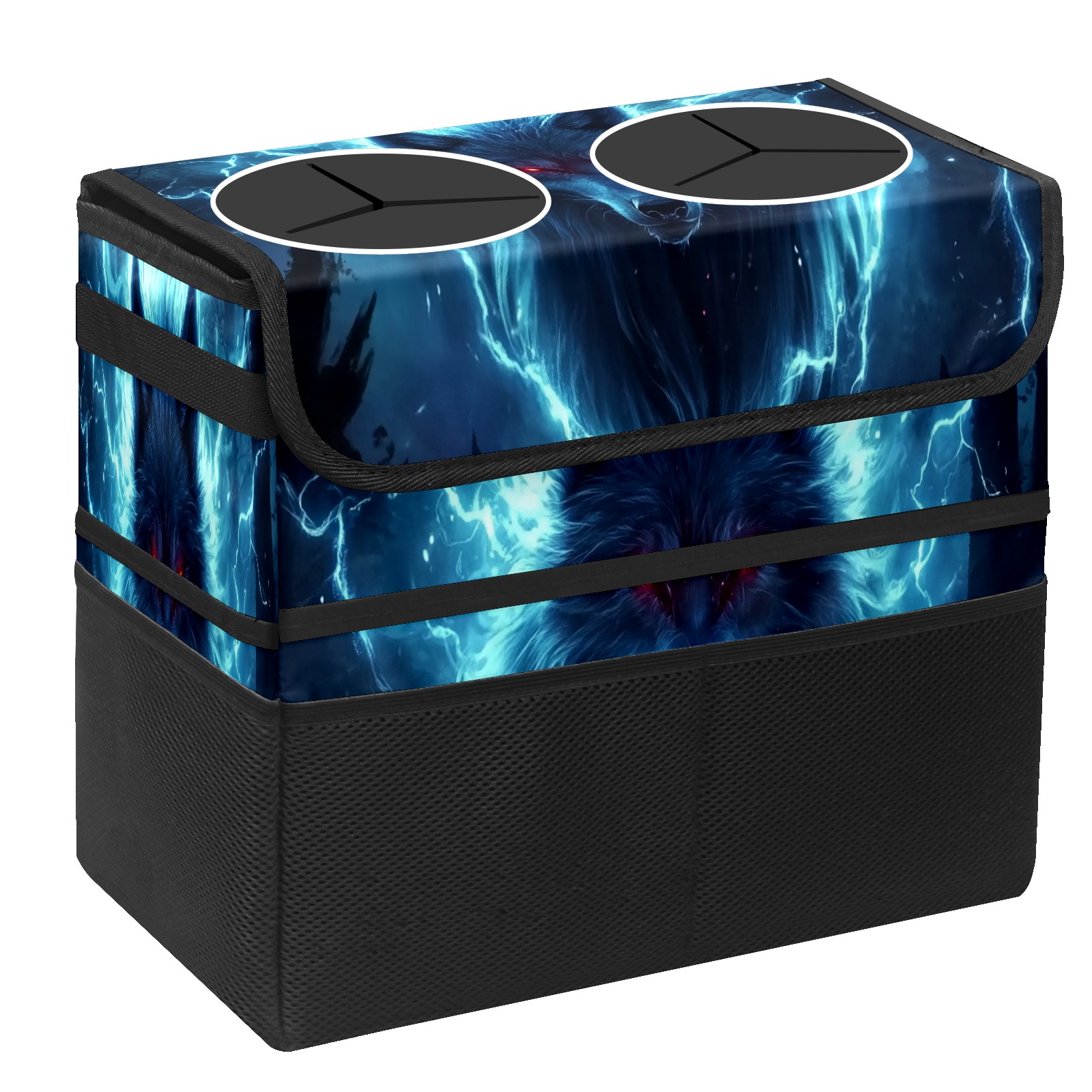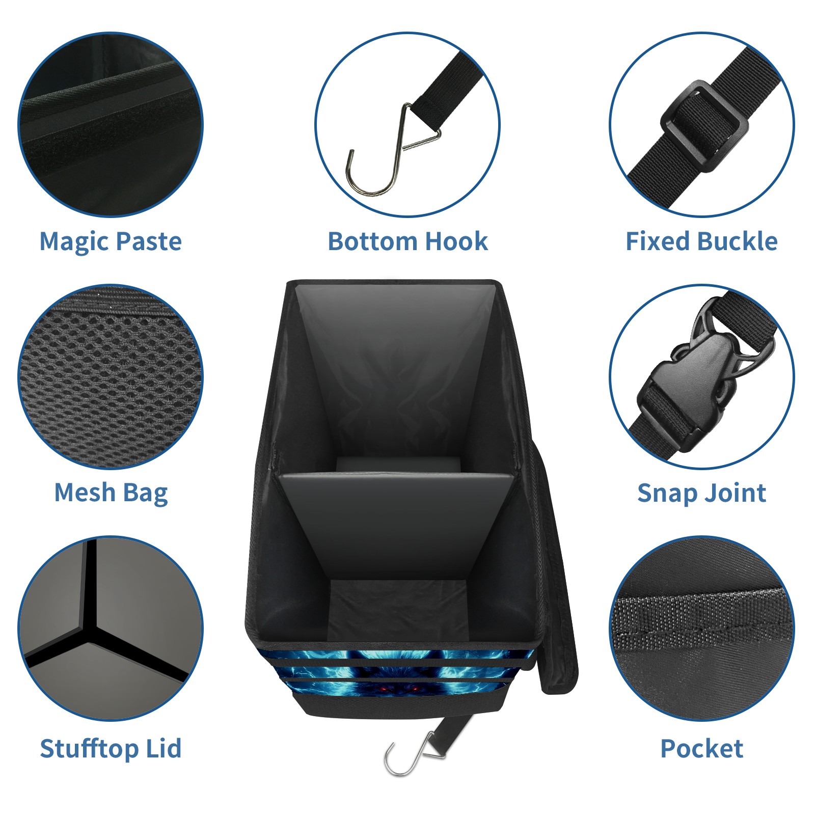 Car Trash Can with Lid, Portable Hanging Automotive Garbage Bin for Vehicles, Leakproof Waste Bag Container for SUV Truck Van Interior Auto Travel Road Trips(Mystical Wolf)