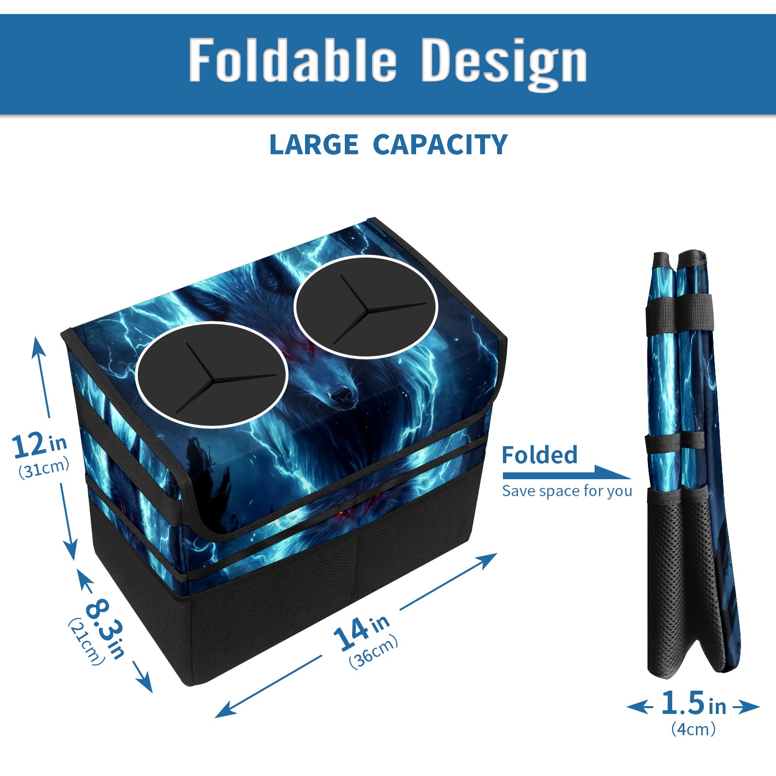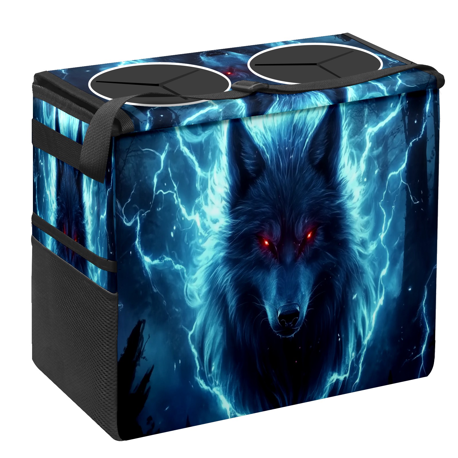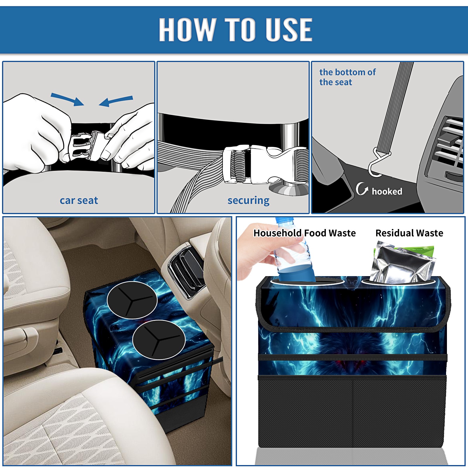 Car Trash Can with Lid, Portable Hanging Automotive Garbage Bin for Vehicles, Leakproof Waste Bag Container for SUV Truck Van Interior Auto Travel Road Trips(Mystical Wolf)