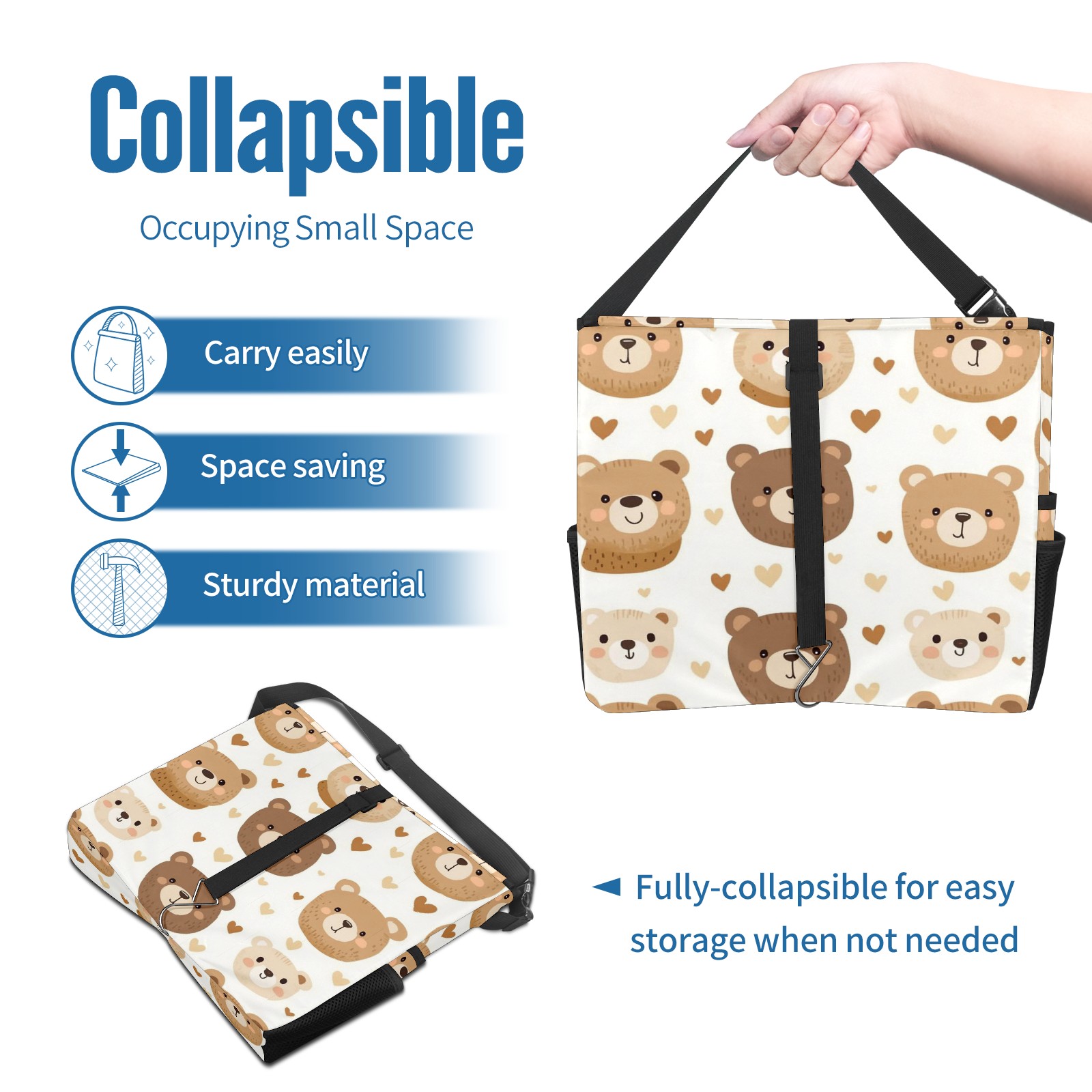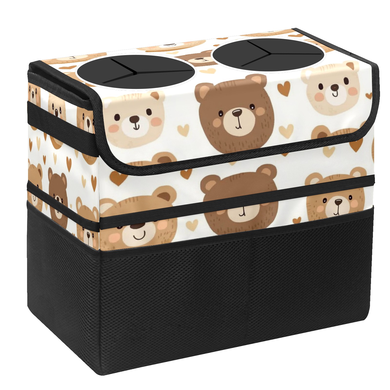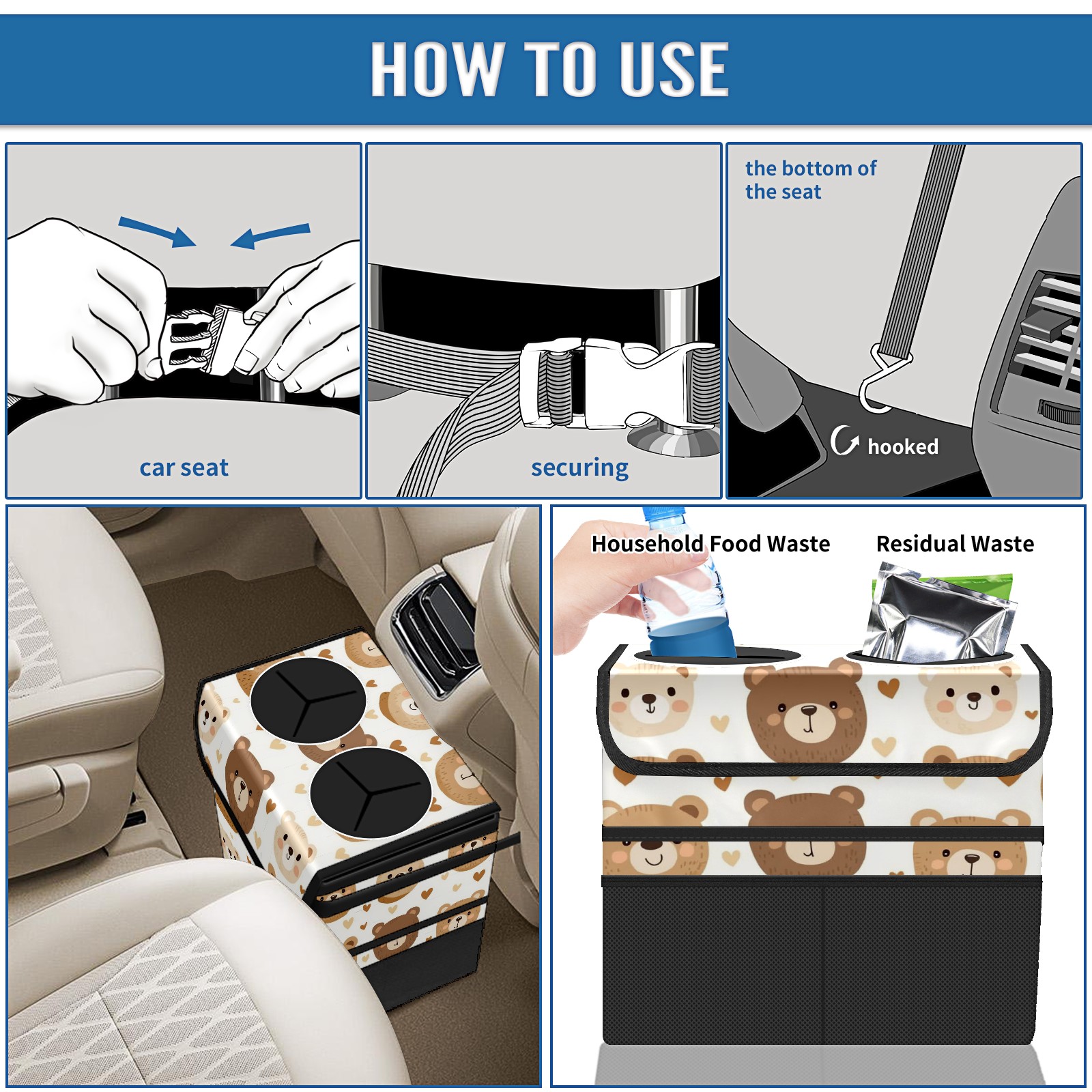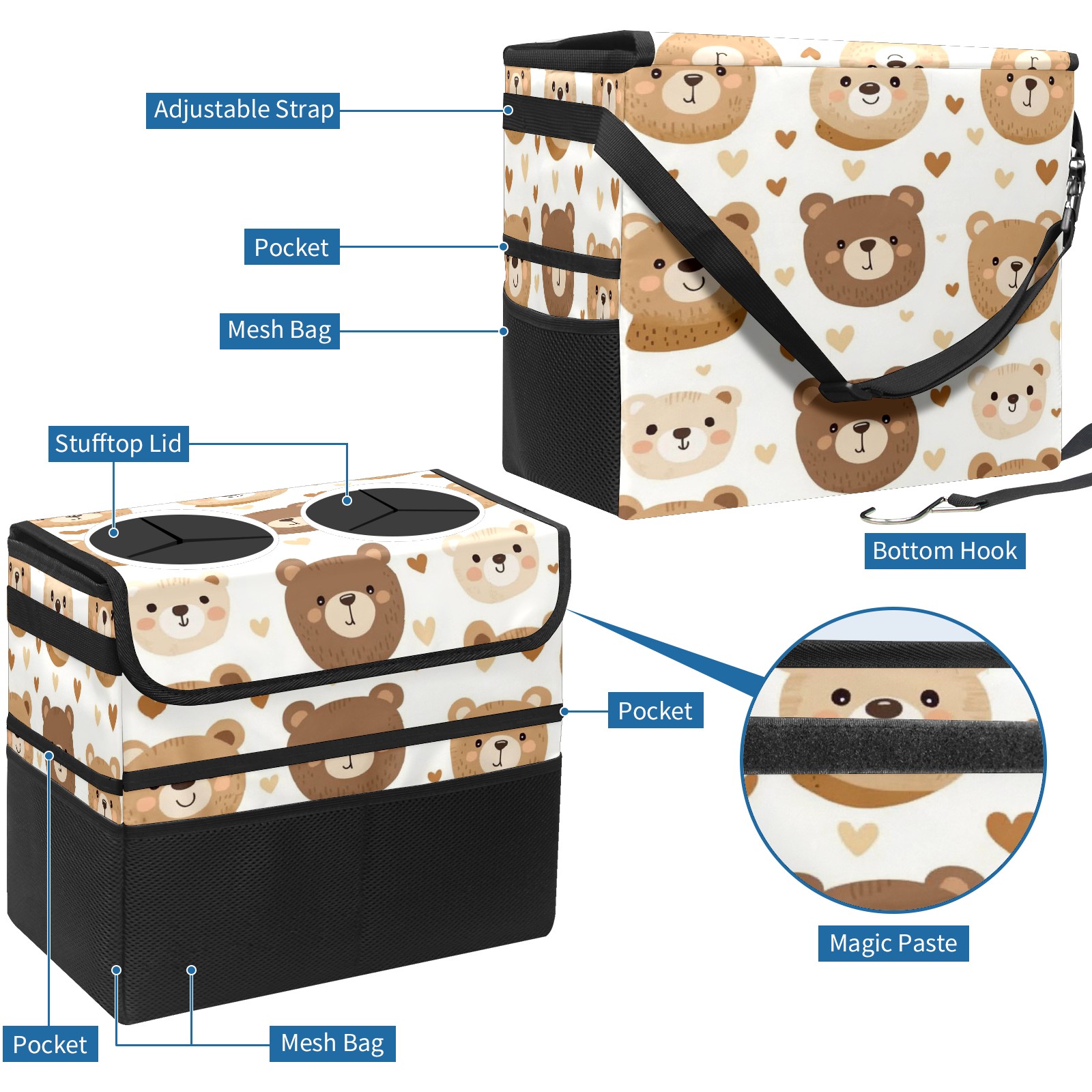 Car Trash Can with Lid, Portable Hanging Automotive Garbage Bin for Vehicles, Leakproof Waste Bag Container for SUV Truck Van Interior Auto Travel Road Trips(Teddy Bear)