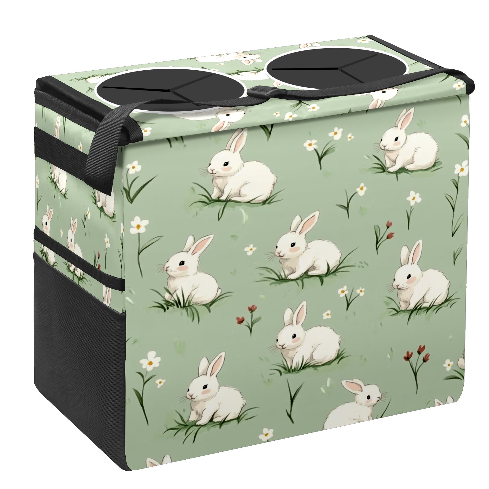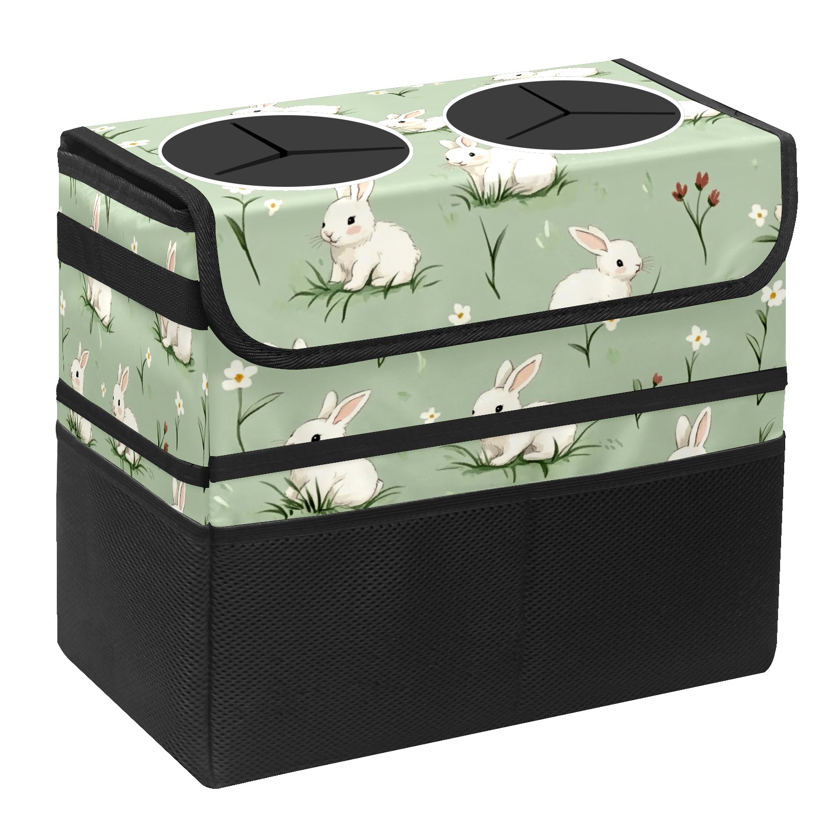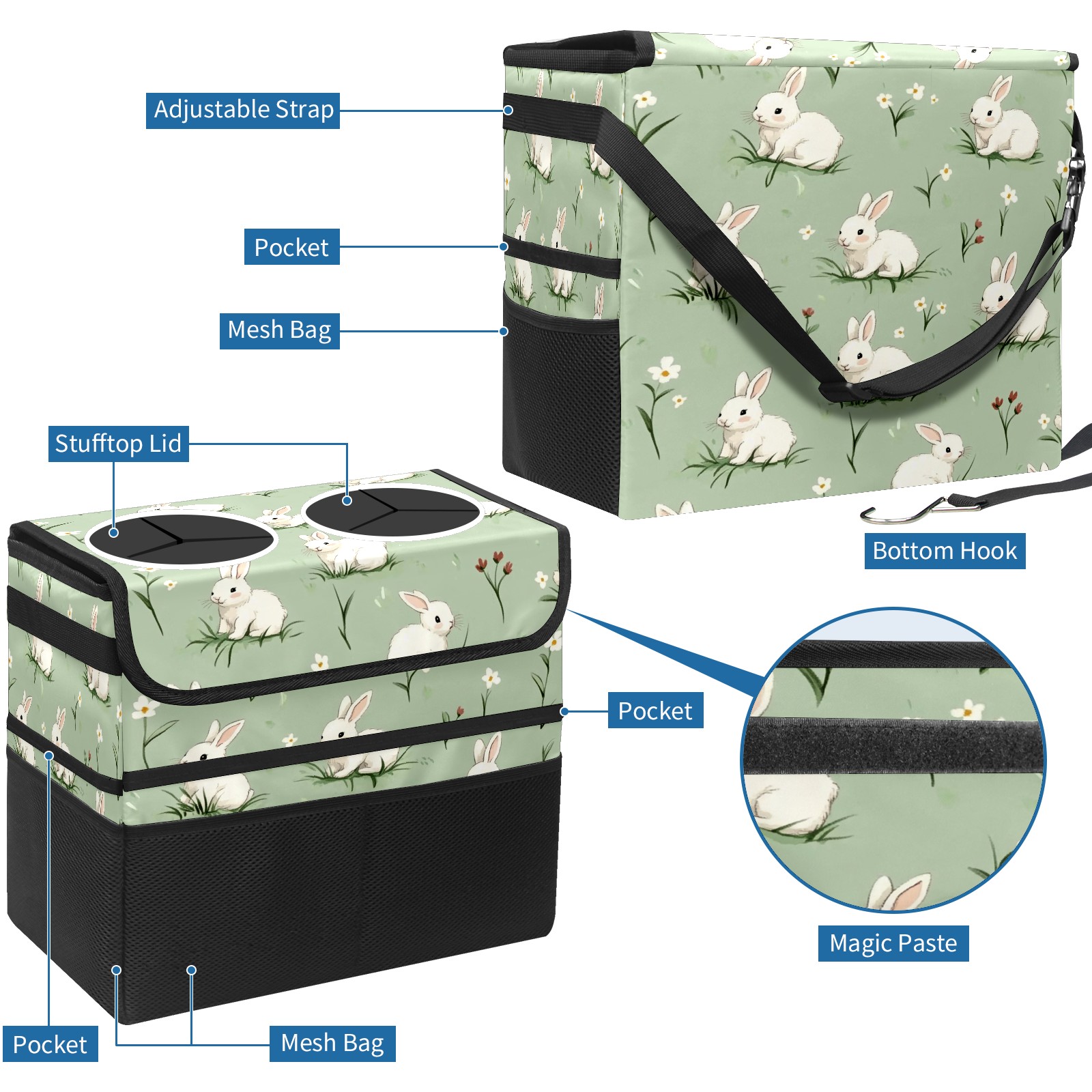 Car Trash Can with Lid, Portable Hanging Automotive Garbage Bin for Vehicles, Leakproof Waste Bag Container for SUV Truck Van Interior Auto Travel Road Trips(White Rabbits)