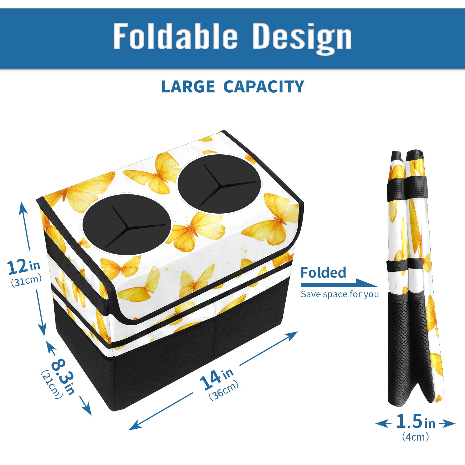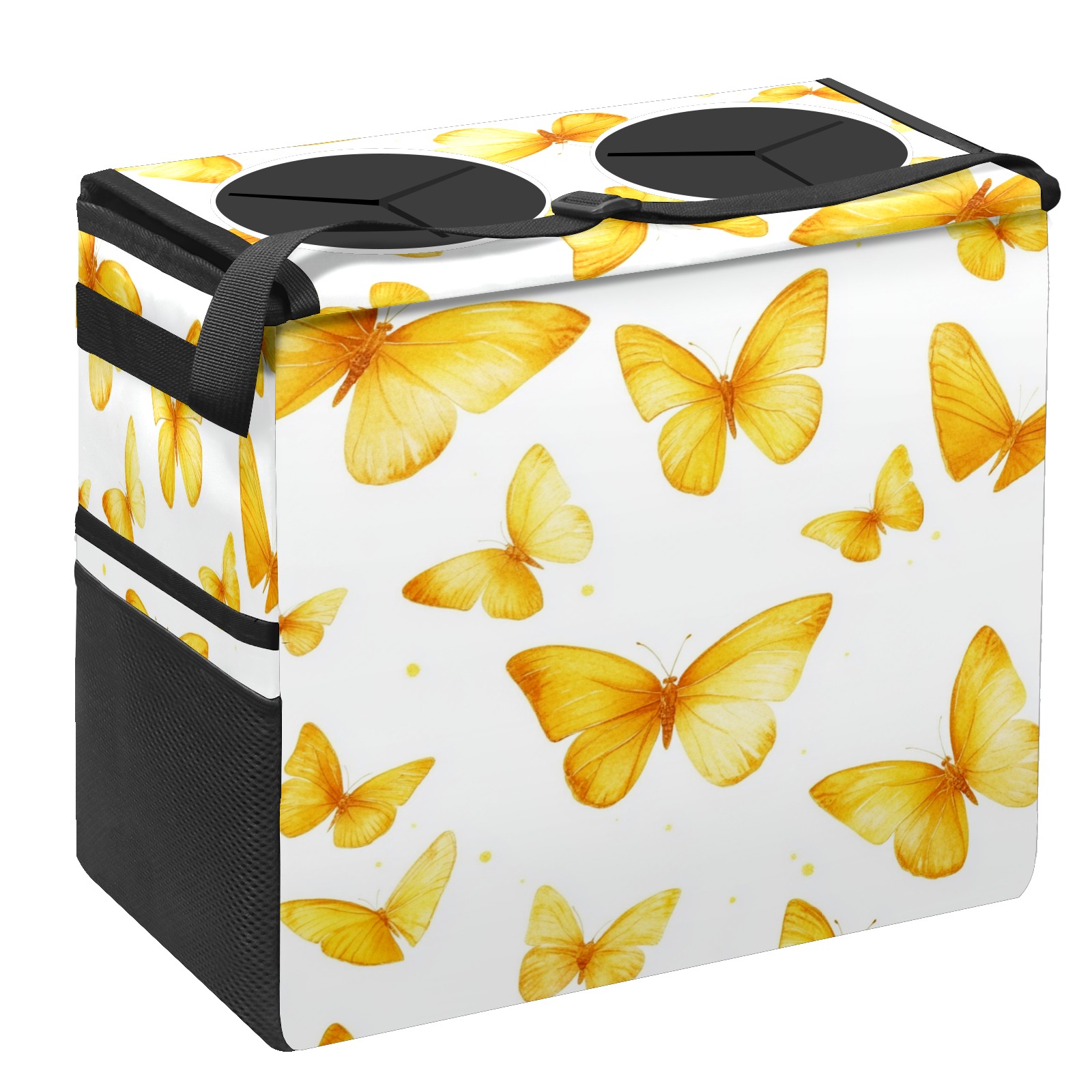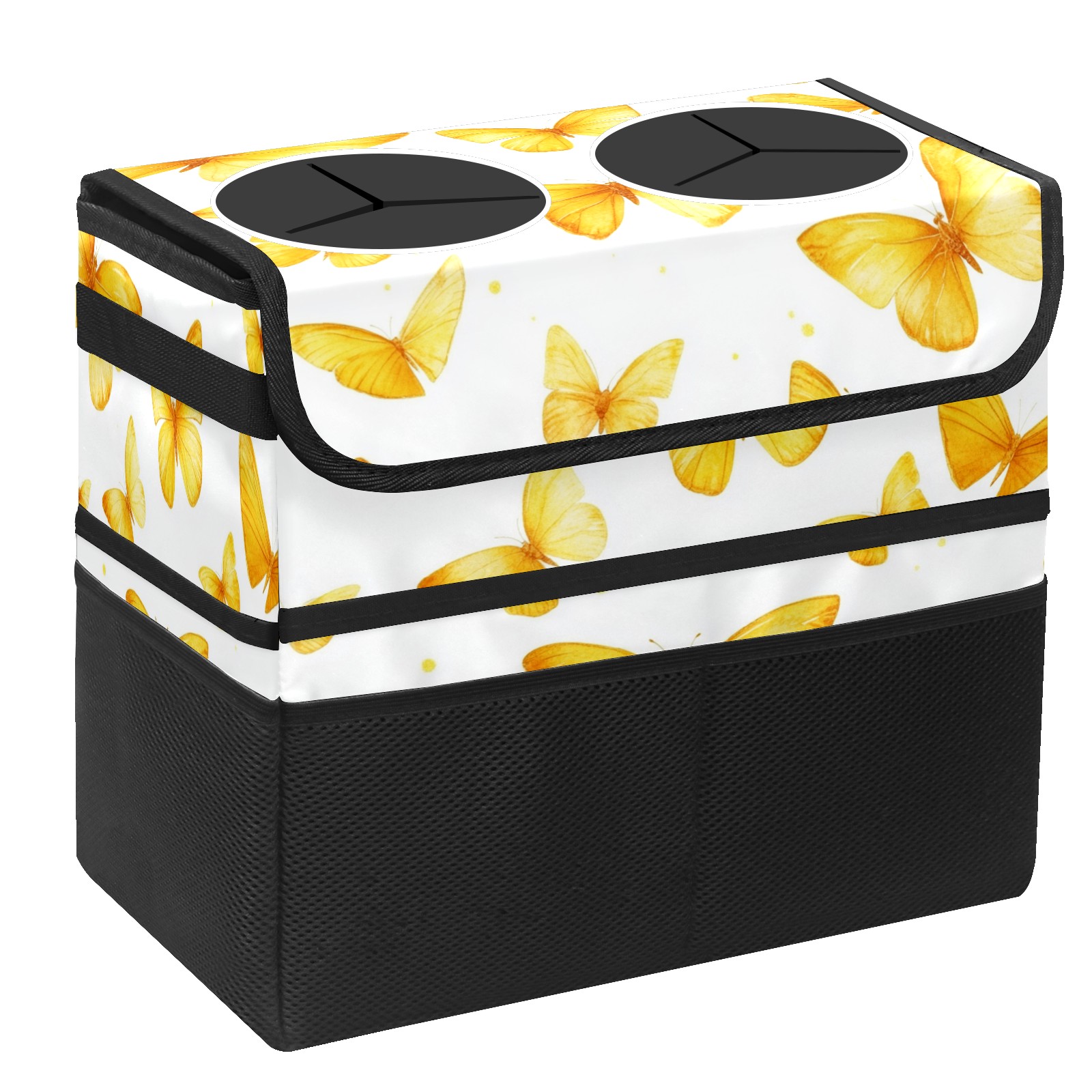 Car Trash Can with Lid, Portable Hanging Automotive Garbage Bin for Vehicles, Leakproof Waste Bag Container for SUV Truck Van Interior Auto Travel Road Trips(Yellow Butterflies)