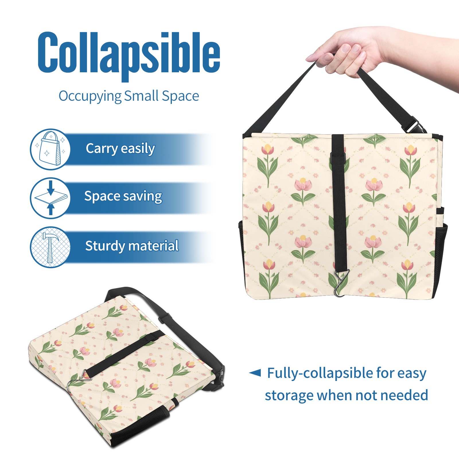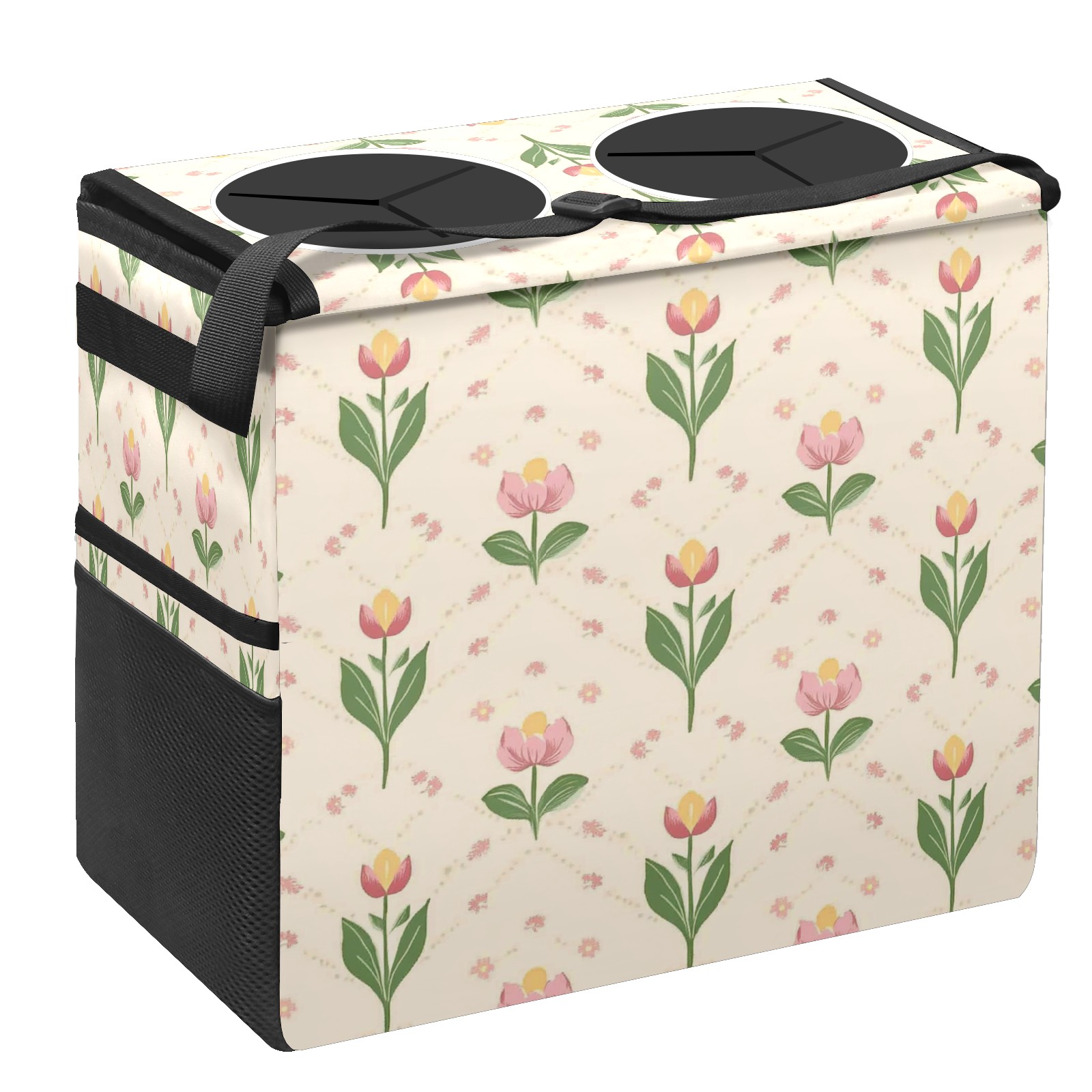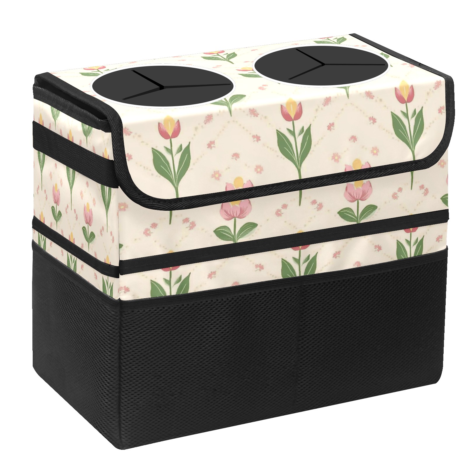 Car Trash Can with Lid, Portable Hanging Automotive Garbage Bin for Vehicles, Leakproof Waste Bag Container for SUV Truck Van Interior Auto Travel Road Trips(Small Tulips)