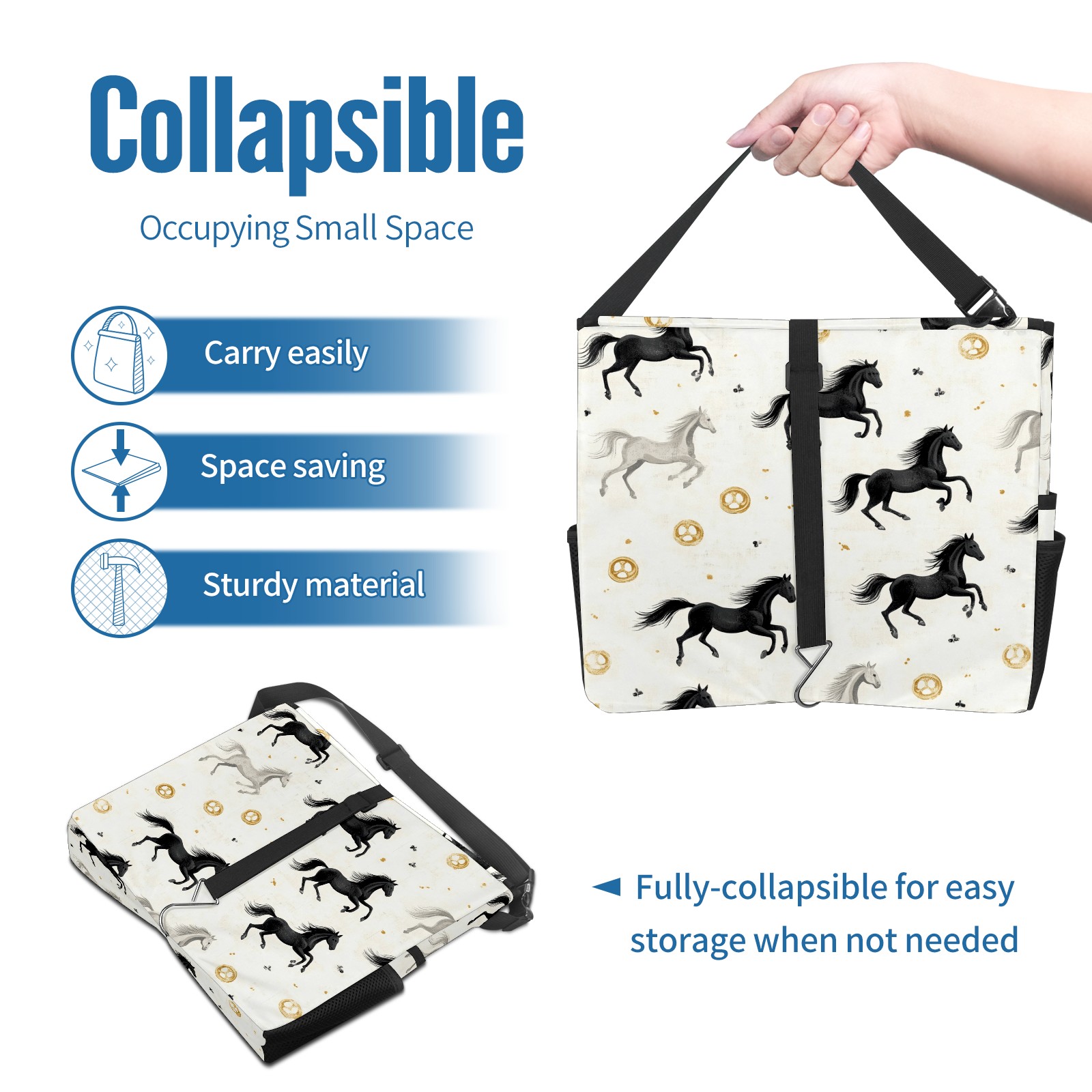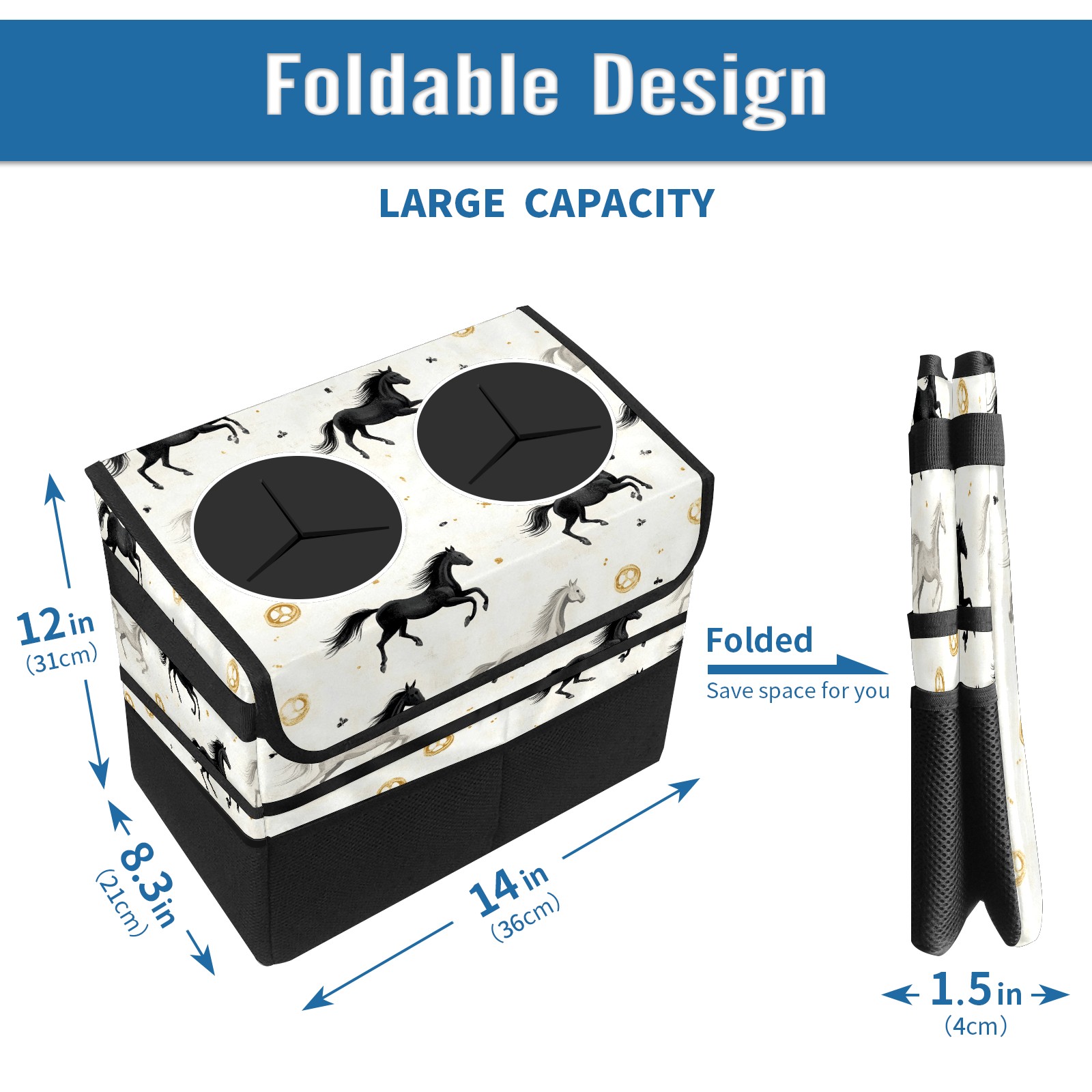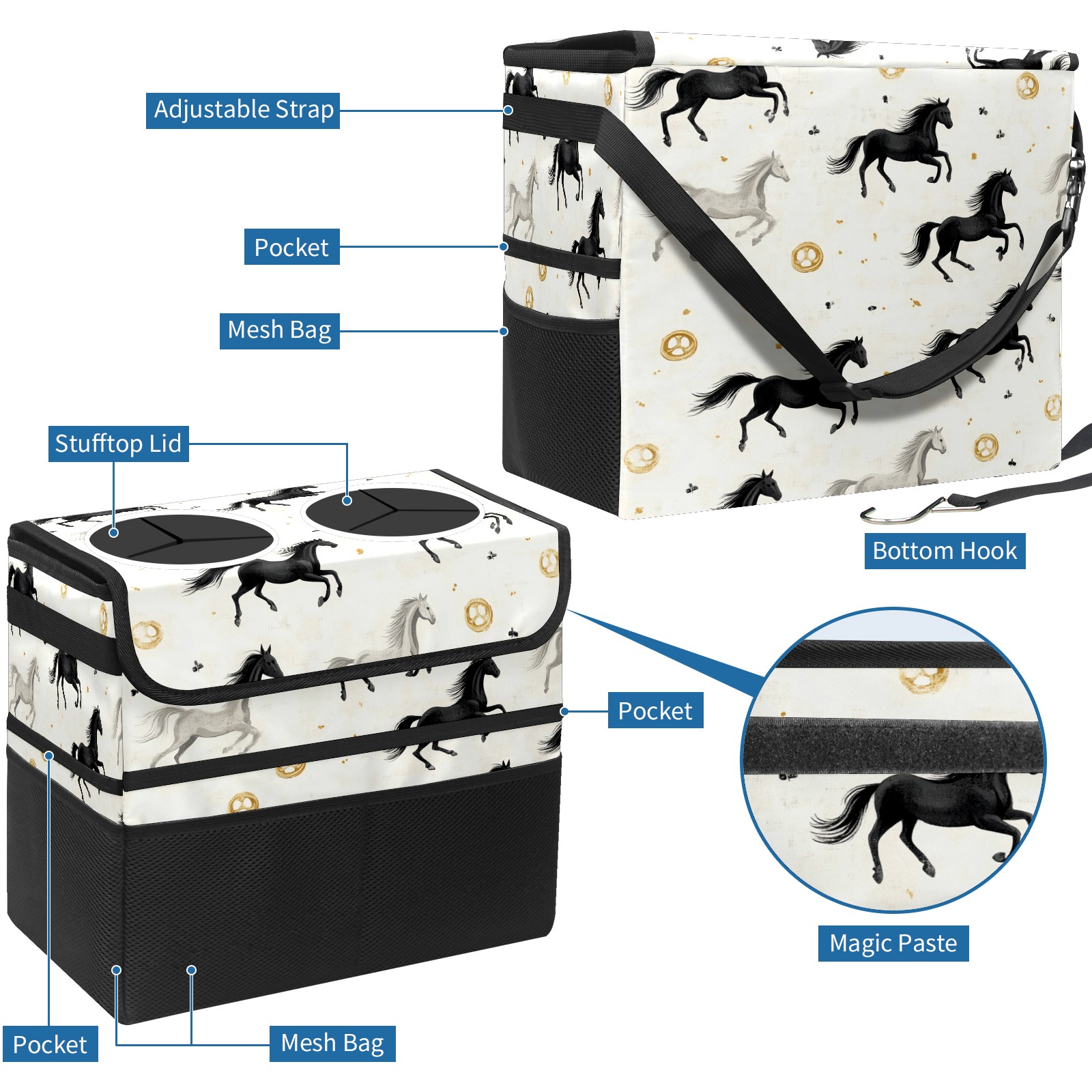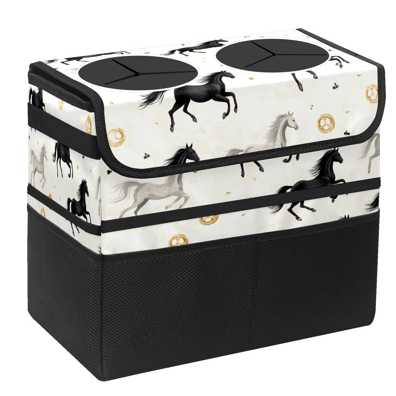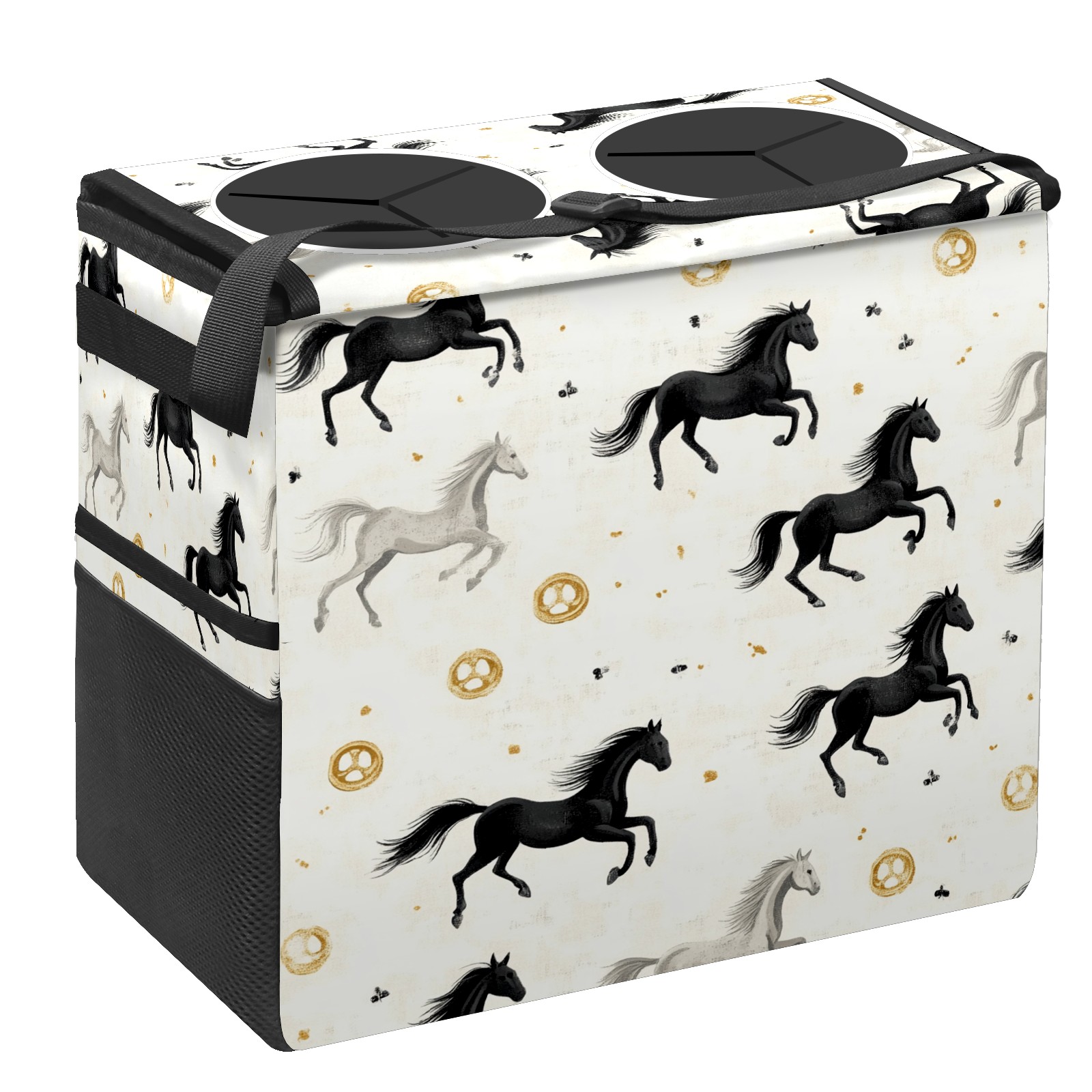 Car Trash Can with Lid, Portable Hanging Automotive Garbage Bin for Vehicles, Leakproof Waste Bag Container for SUV Truck Van Interior Auto Travel Road Trips(Horses)