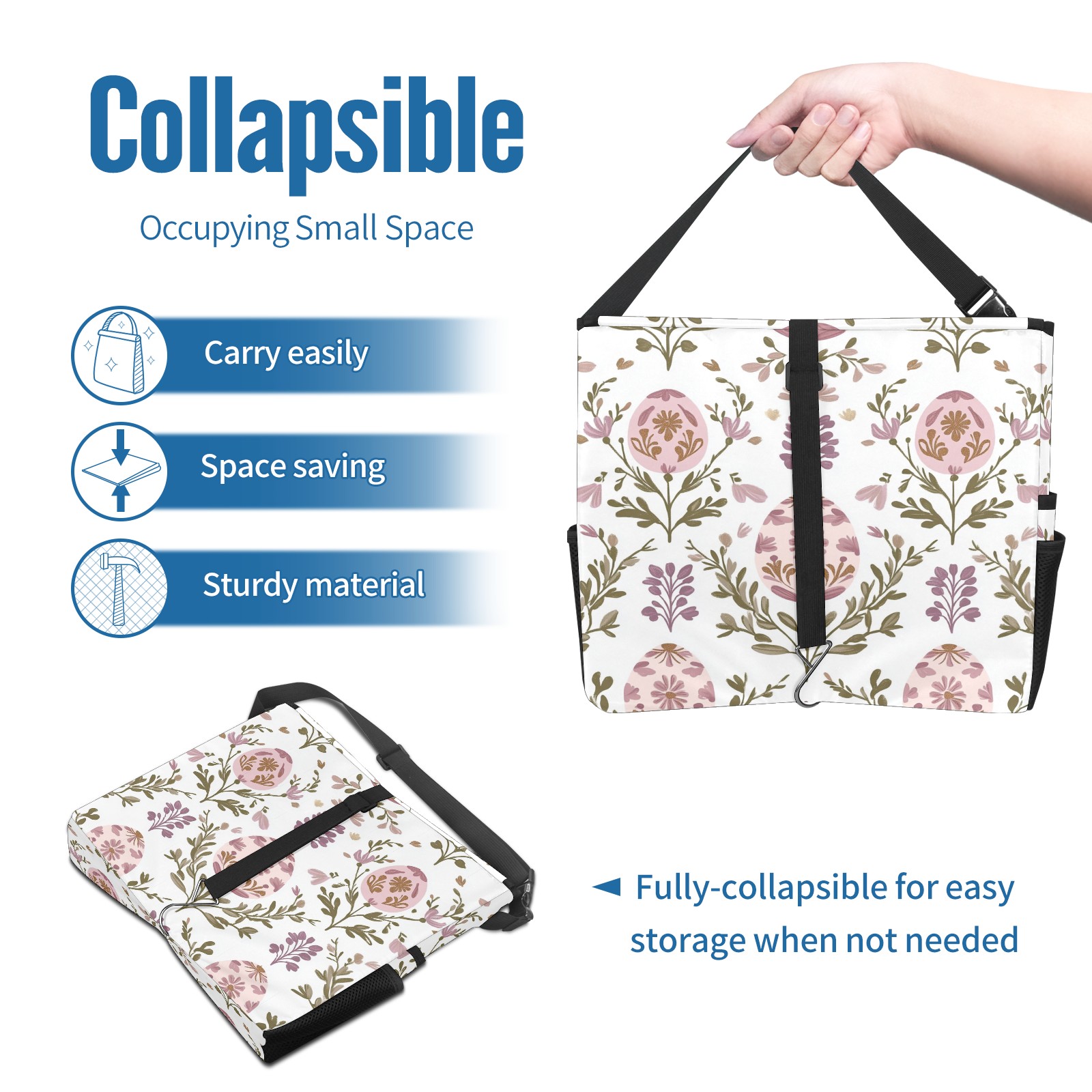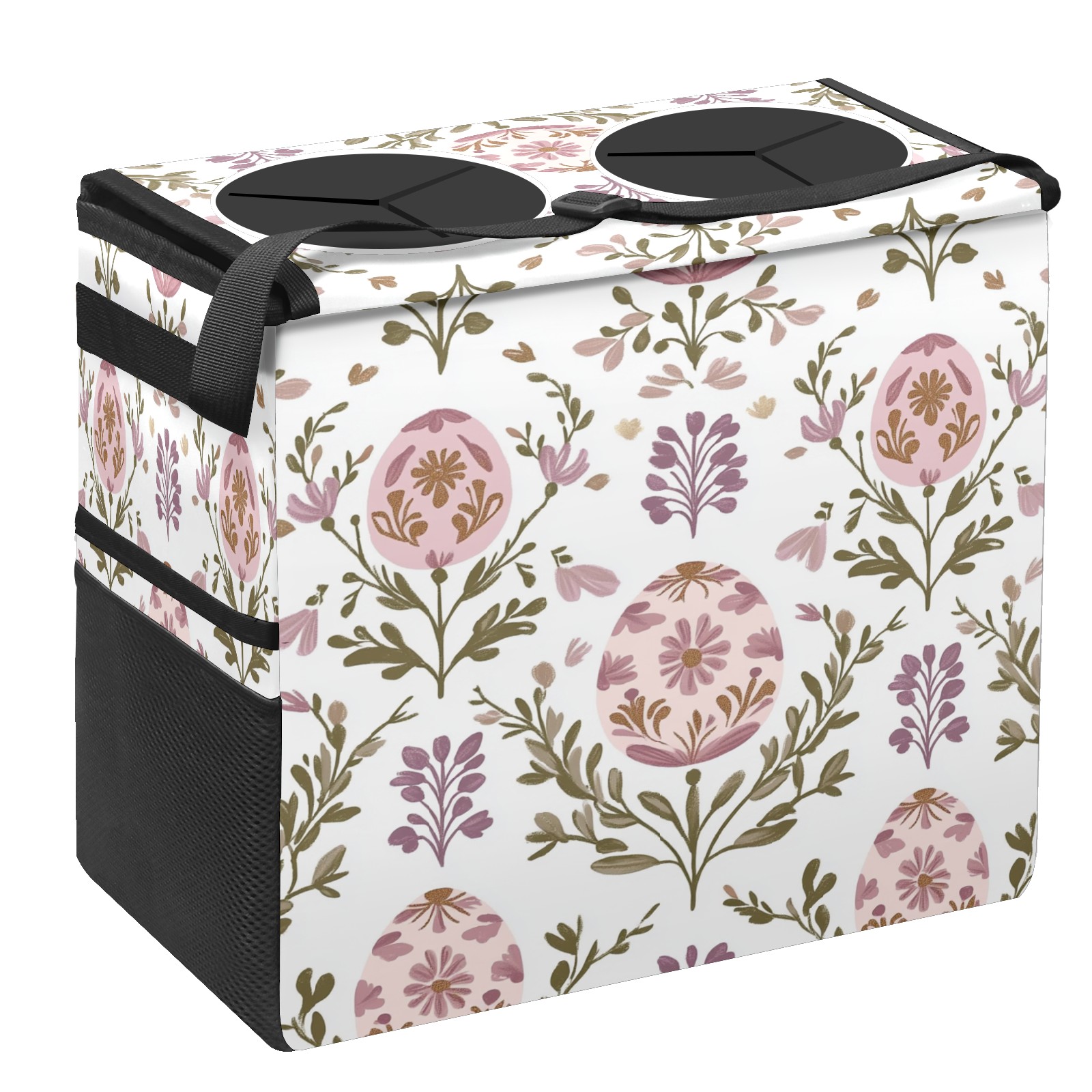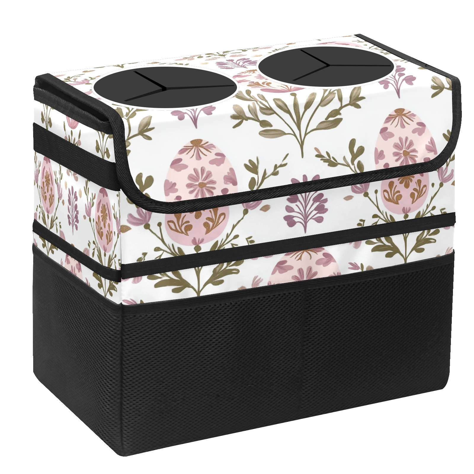 Car Trash Can with Lid, Portable Hanging Automotive Garbage Bin for Vehicles, Leakproof Waste Bag Container for SUV Truck Van Interior Auto Travel Road Trips(Egg-shaped Floral)