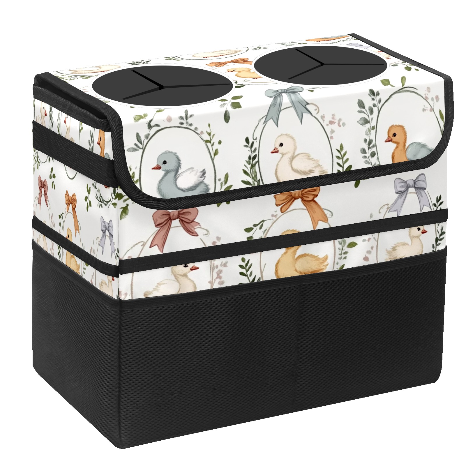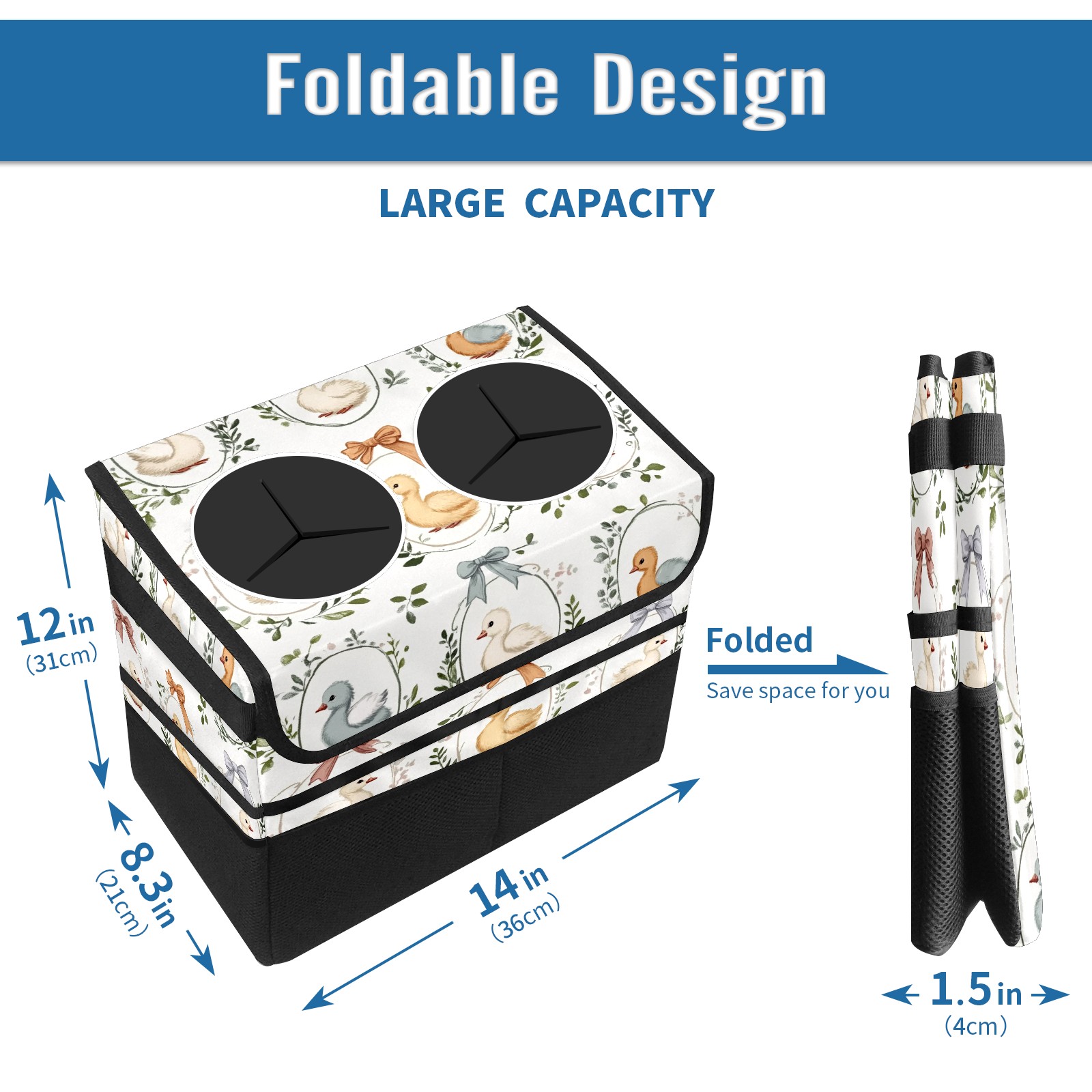 Car Trash Can with Lid, Portable Hanging Automotive Garbage Bin for Vehicles, Leakproof Waste Bag Container for SUV Truck Van Interior Auto Travel Road Trips(Cute Geese)