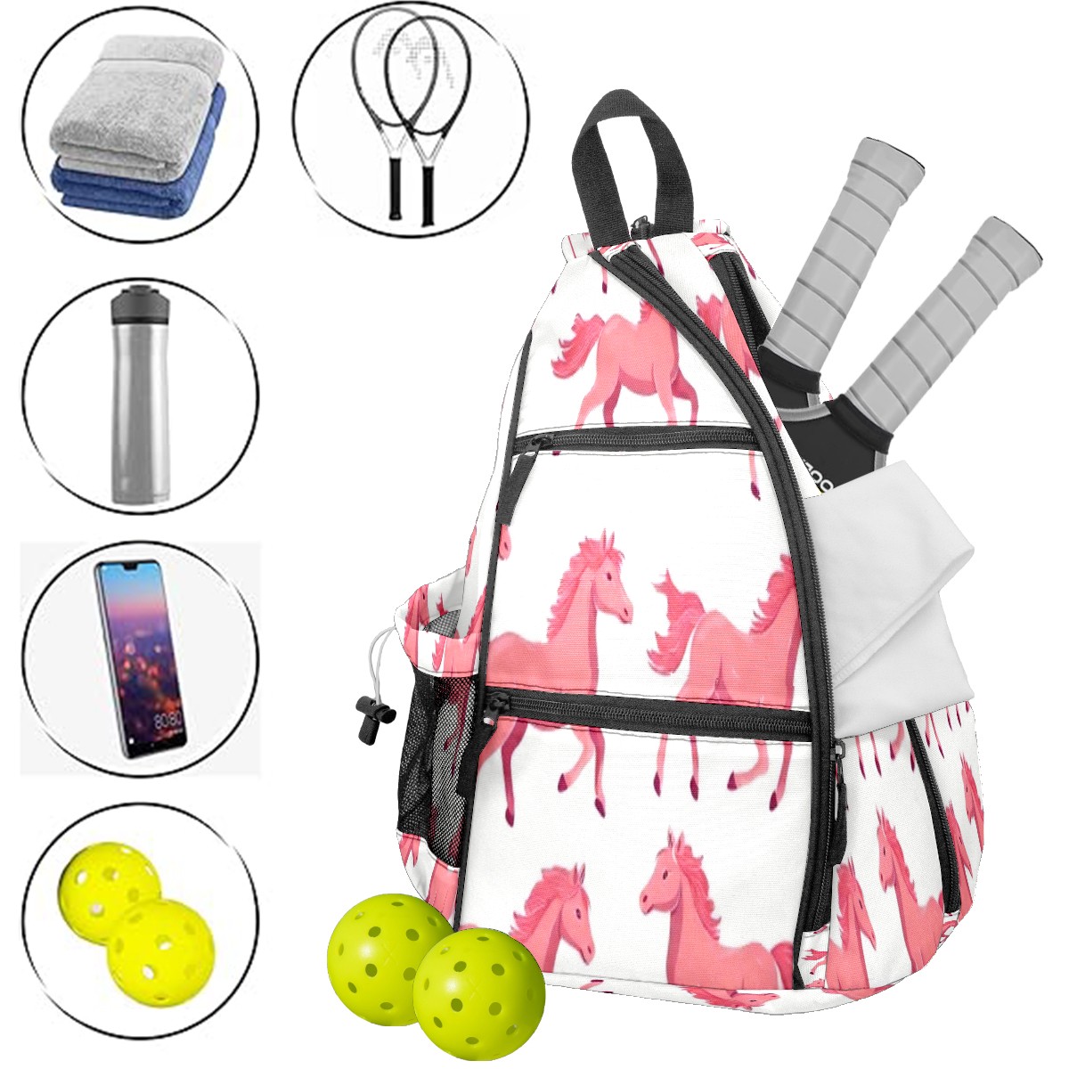 <p>This multifunctional pickleball Bag is made of lightweight and durable nylon fabric, which is lightweight yet has a large capacity, making it easy to store all equipment. Adjustable shoulder strap design supports multiple carrying modes on one shoulder and both shoulders, adapting to left and right hand habits; Breathable mesh back pad+waterproof fabric, balancing comfort and protection. The safety pocket and mesh hook design make access more convenient. Whether it's competition training, daily commuting, or as a gift, it's an ideal choice that combines practicality and aesthetics!</p>