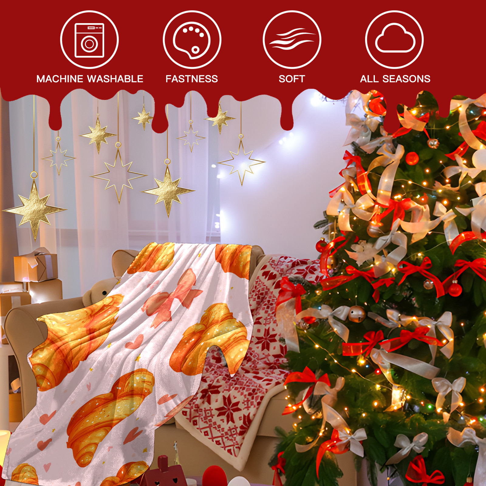 Эта шаль изготовлена из высококачественного сверхмягкого флиса с коротким ворсом, обладает нежной и приятной на ощупь текстурой, легка, но при этом отлично сохраняет тепло. Будь то уютное сидение на диване во время сериала, небольшая дневная сонливость или использование в качестве накрывающего одеяла у изголовья кровати — она подарит вам комфорт, подобный объятиям.