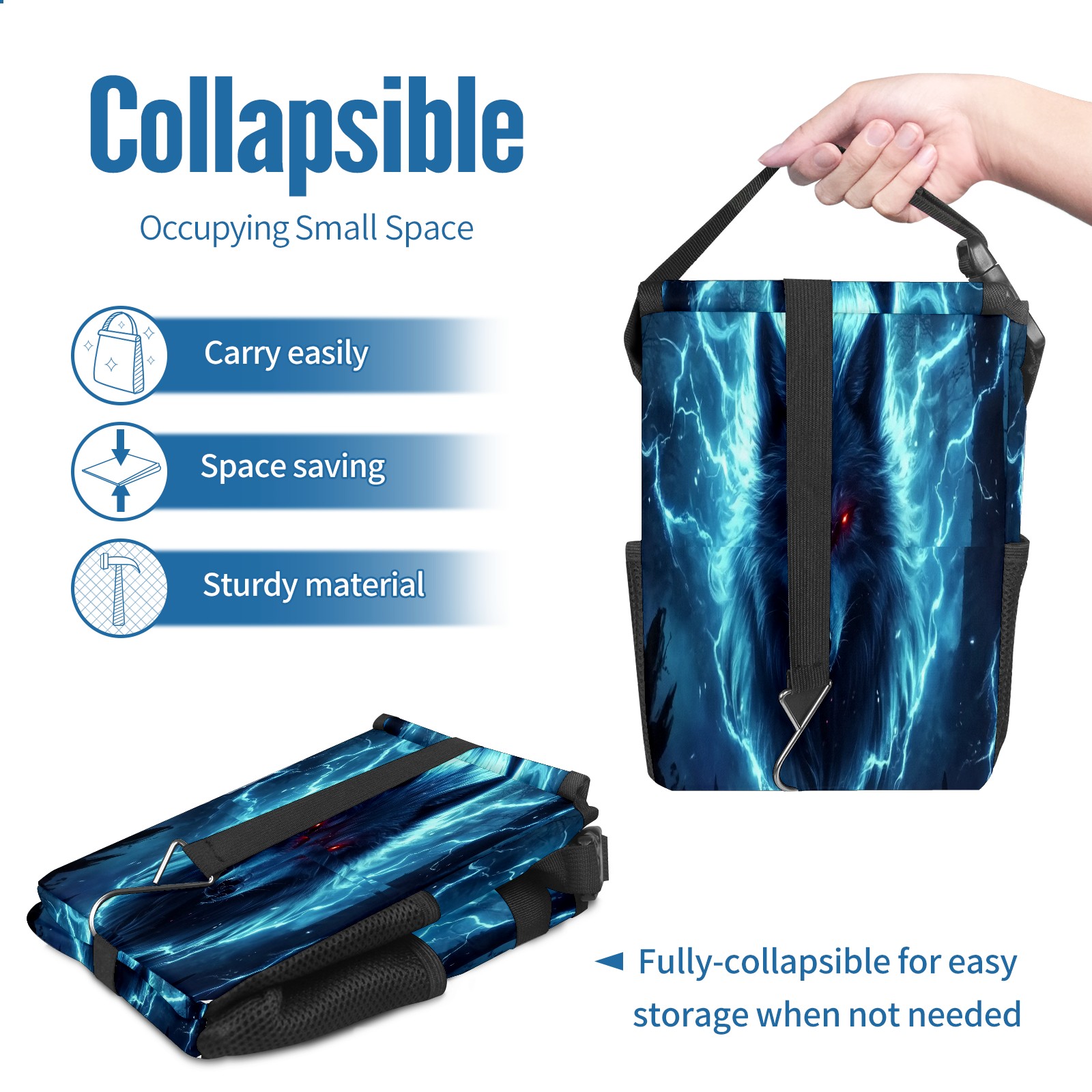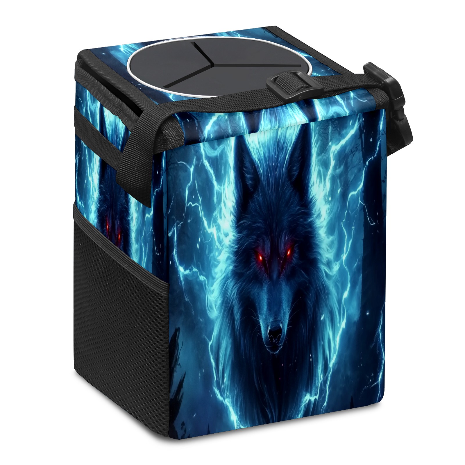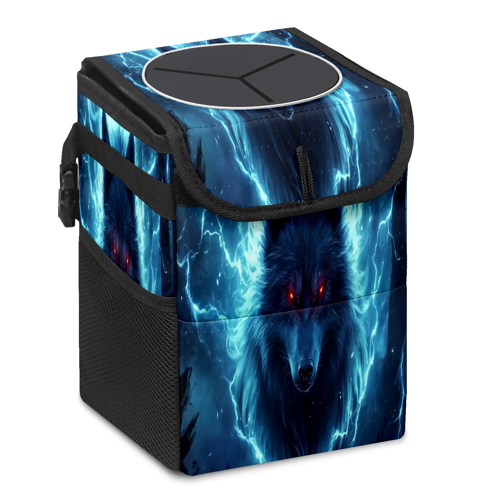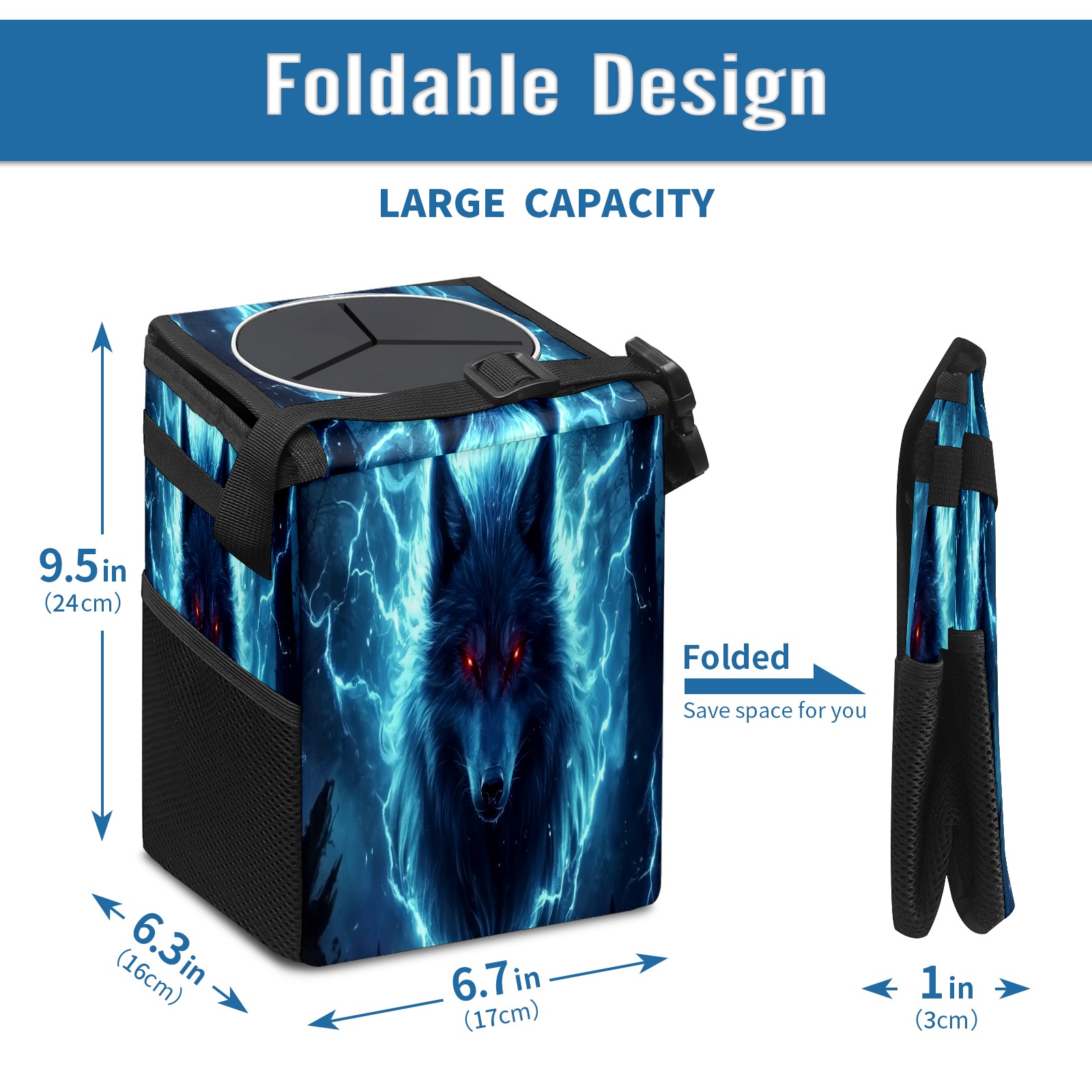 Car Trash Can with Lid, Small Portable Hanging Automotive Garbage Bin for Vehicles, Leakproof Waste Bag Container for SUV Truck Van Interior Auto Travel Road Trips(Mystical Wolf)