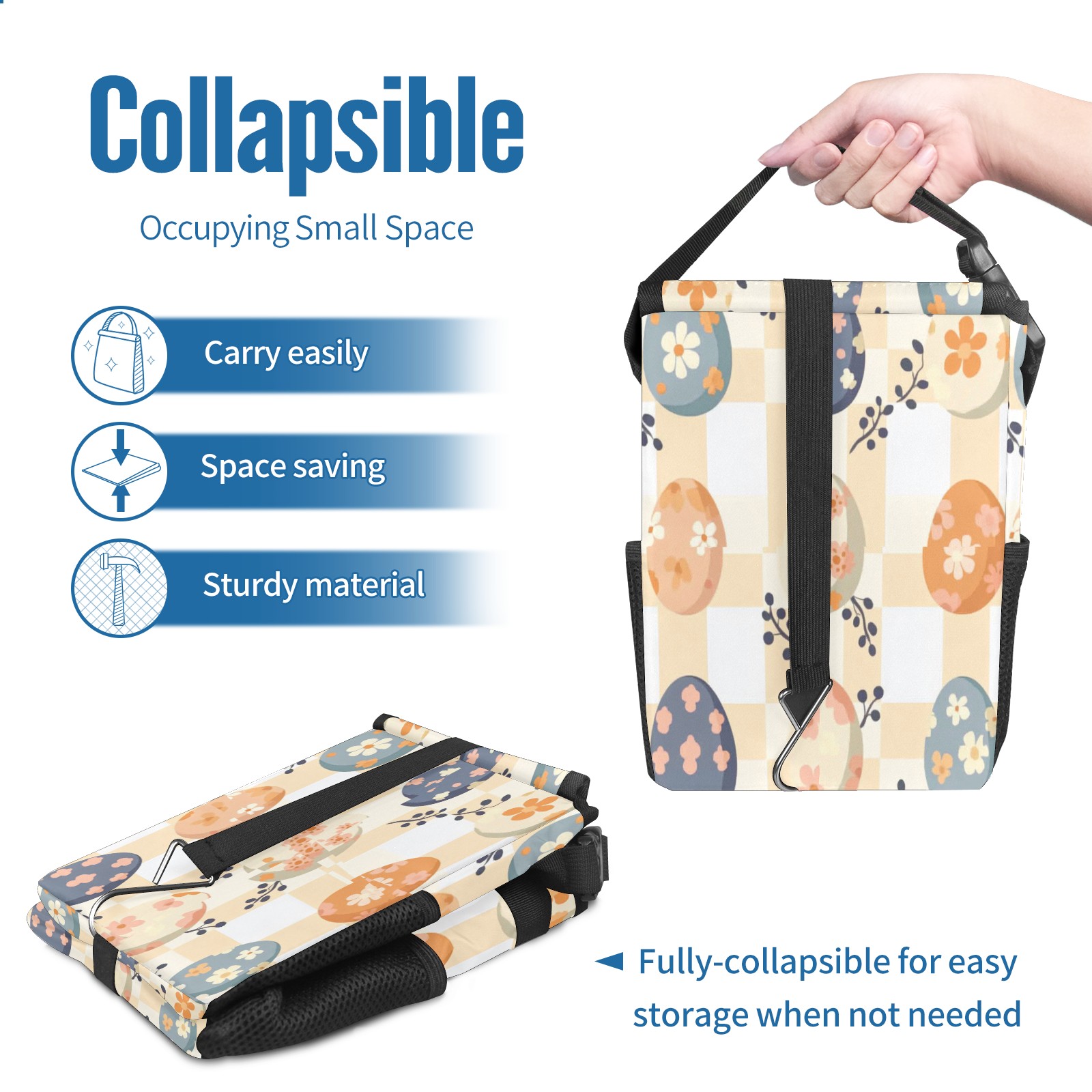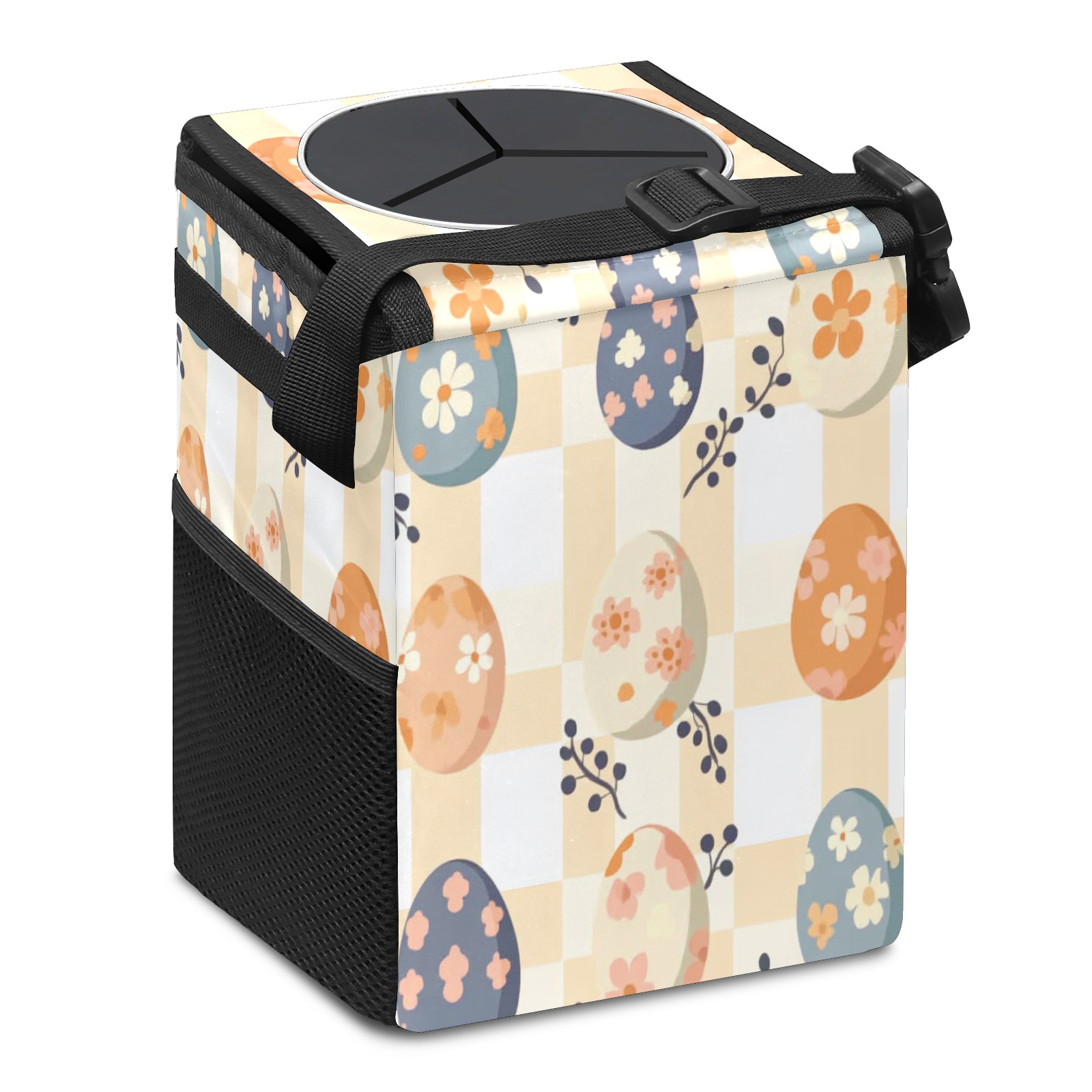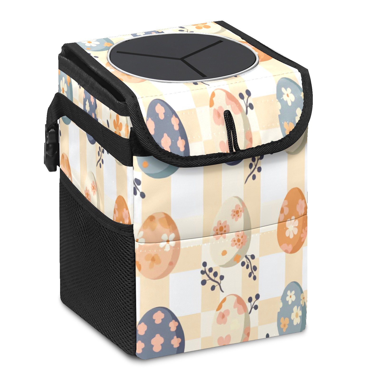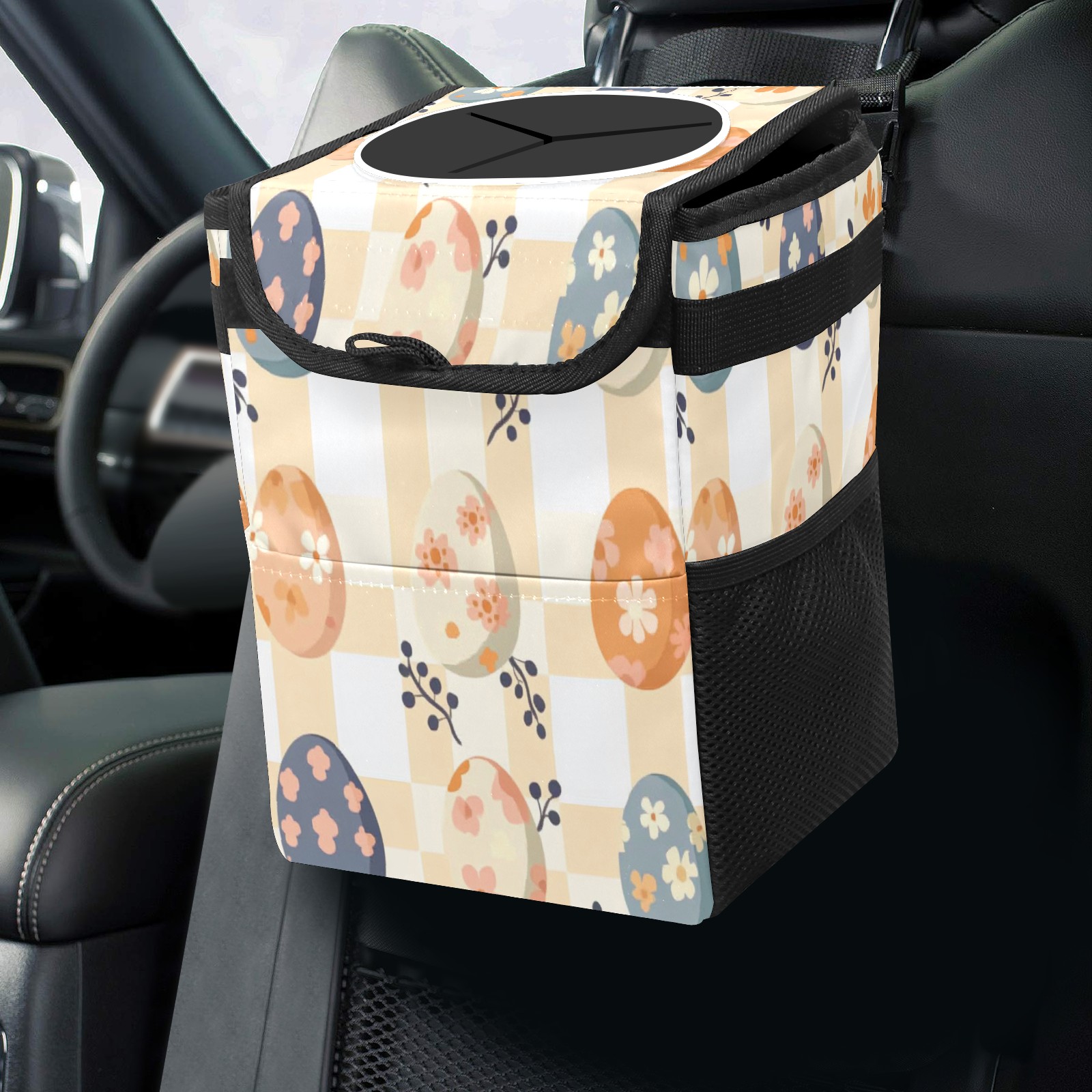 Car Trash Can with Lid, Small Portable Hanging Automotive Garbage Bin for Vehicles, Leakproof Waste Bag Container for SUV Truck Van Interior Auto Travel Road Trips(Pastel Easter Eggs And Flowers)