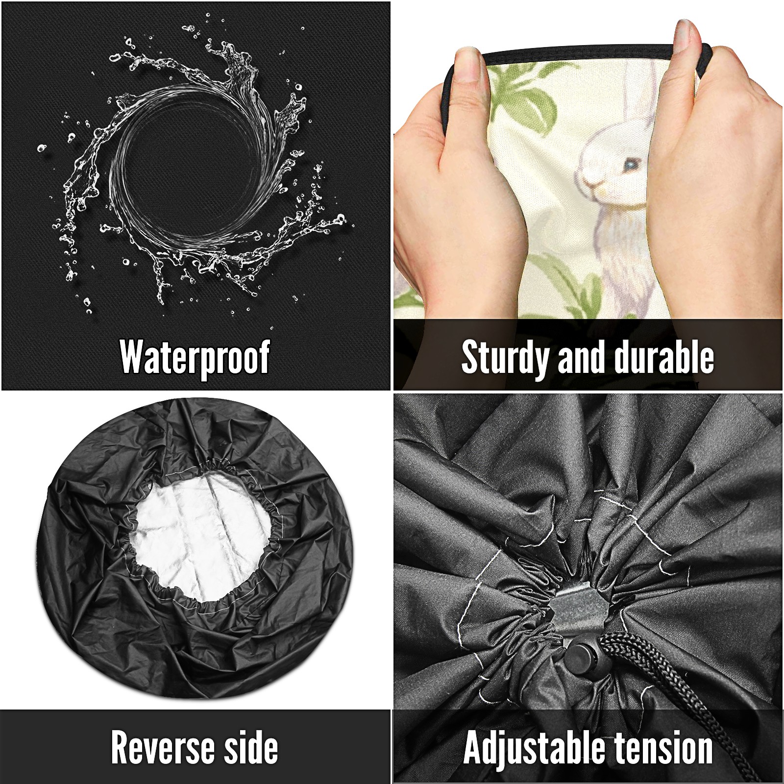 • <p>Keep your spare tire protected and your vehicle looking sharp with our universal Tire Cover. Designed with a sleek single-sided print and classic black sides, this rugged cover is made from high-quality polyester fabric that is fully waterproof. The adjustable nylon rope ensures a secure, custom fit for any tire, helping to maintain a clean and professional appearance for your vehicle.</p>