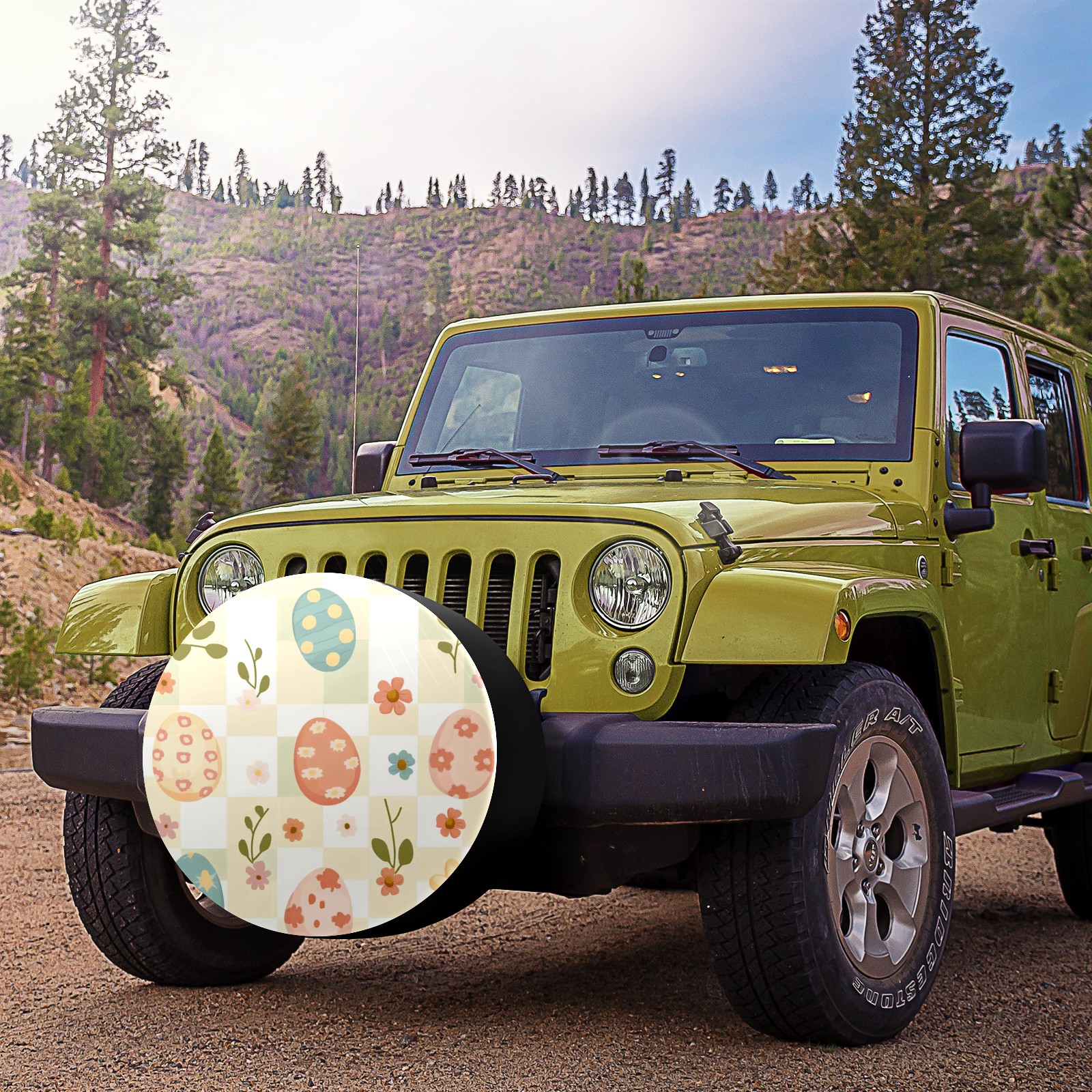 Cute Easter Eggs And Flowers Spare Tire Cover, Waterproof Wheel Protector Universal Fits for Truck SUV RV Trailer Camper (14 Inch)