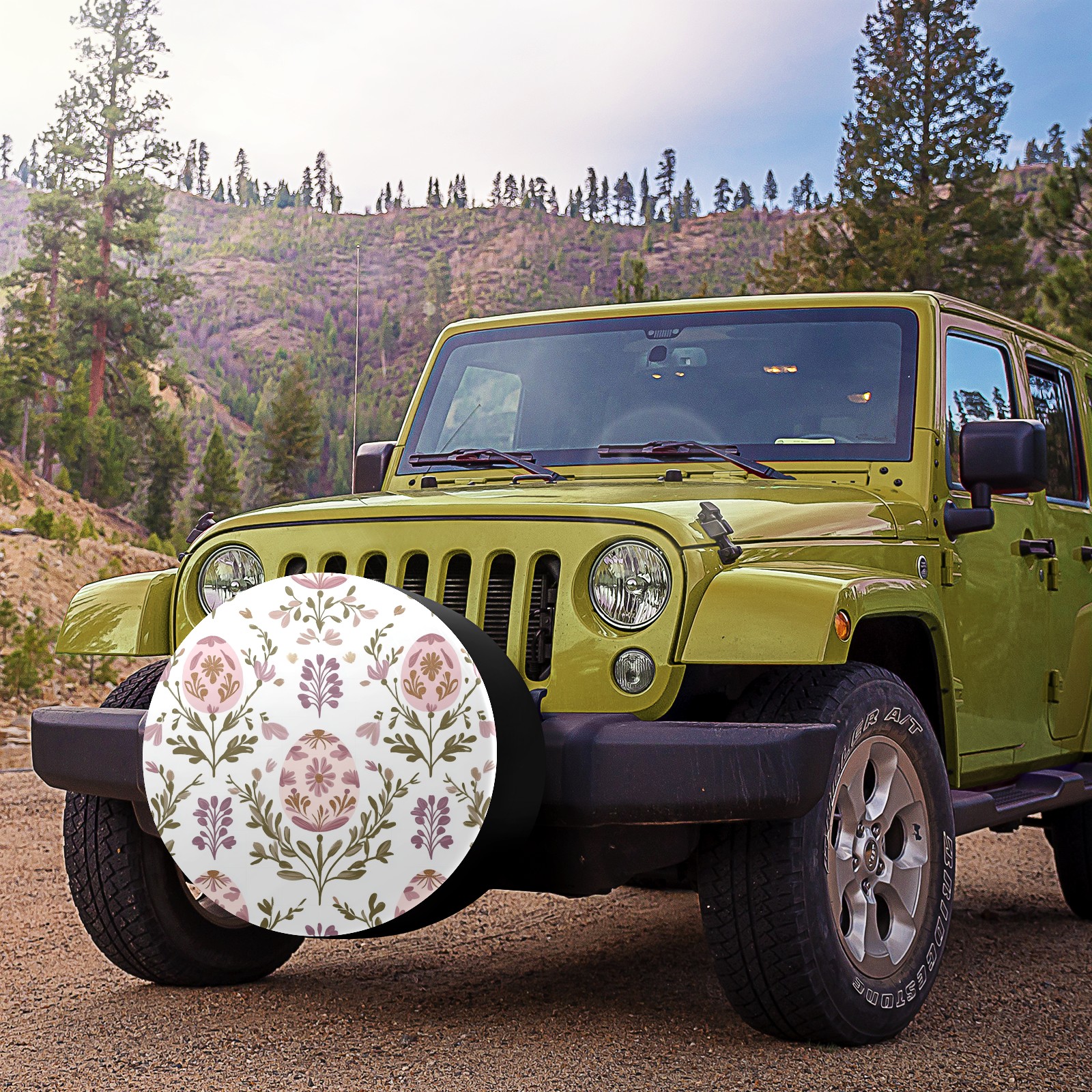 Egg-shaped Floral Spare Tire Cover, Waterproof Wheel Protector Universal Fits for Truck SUV RV Trailer Camper (14 Inch)