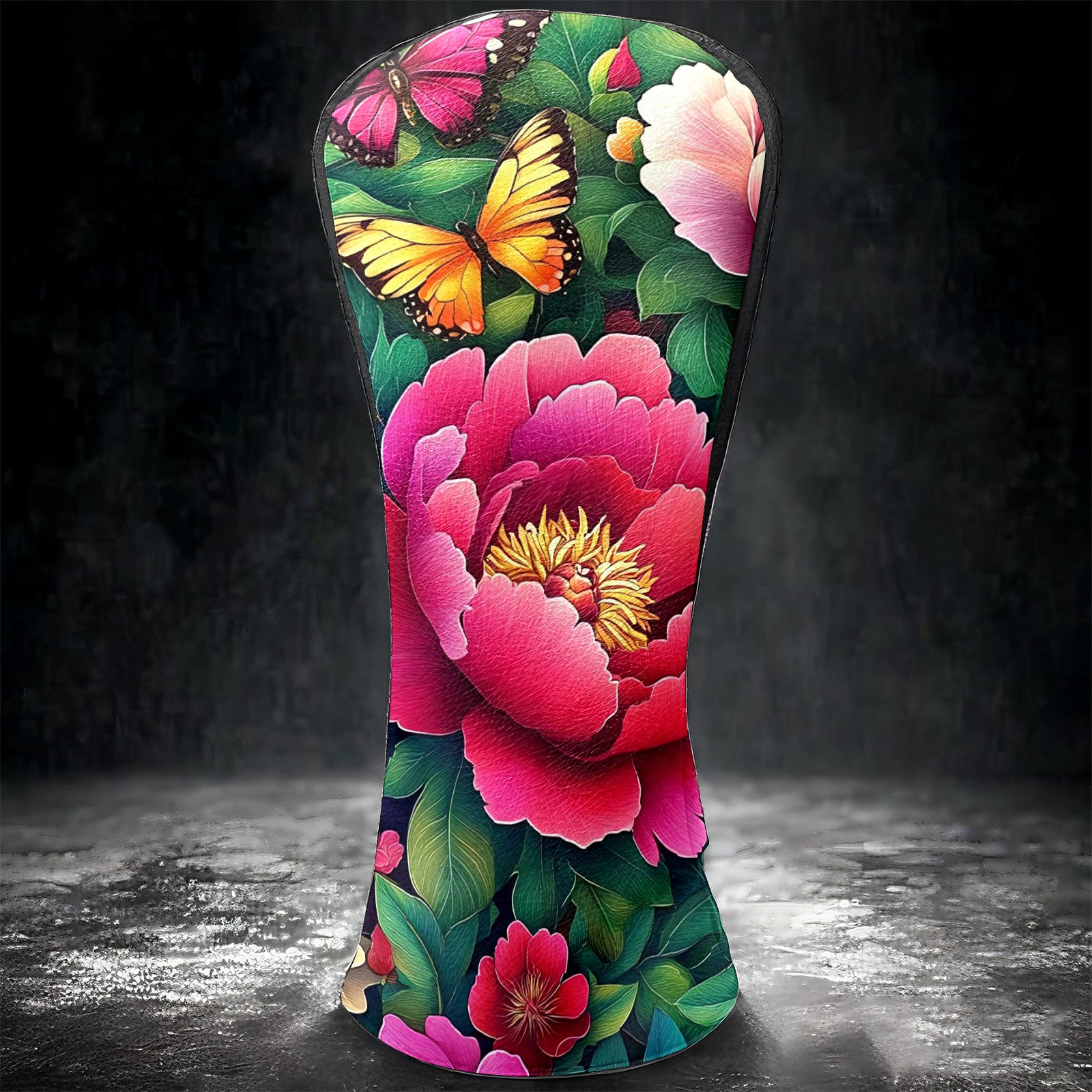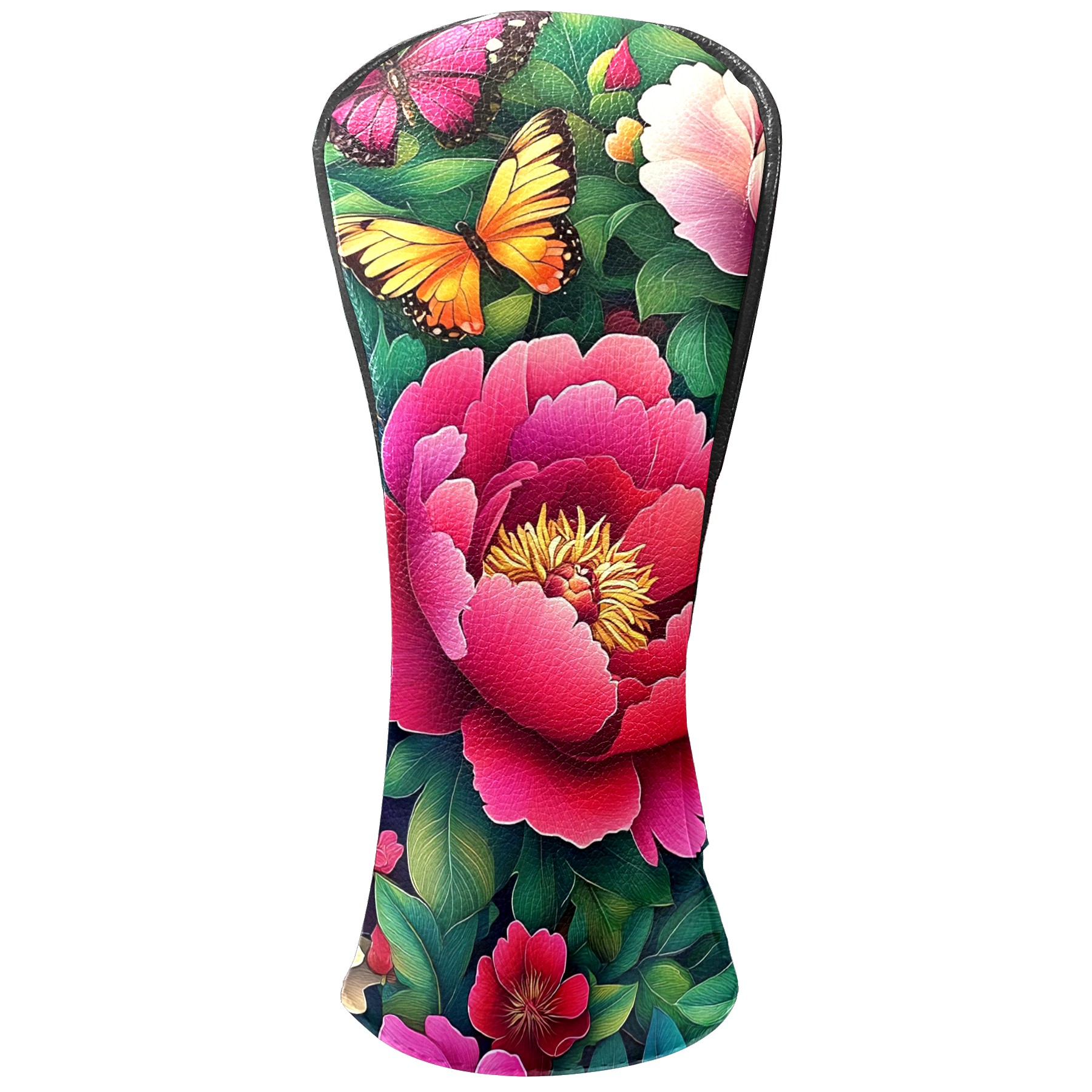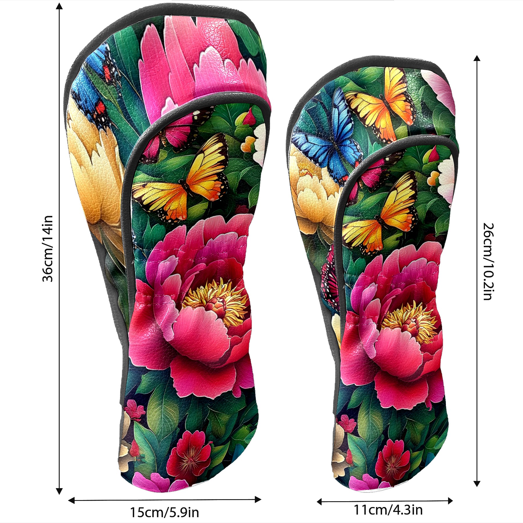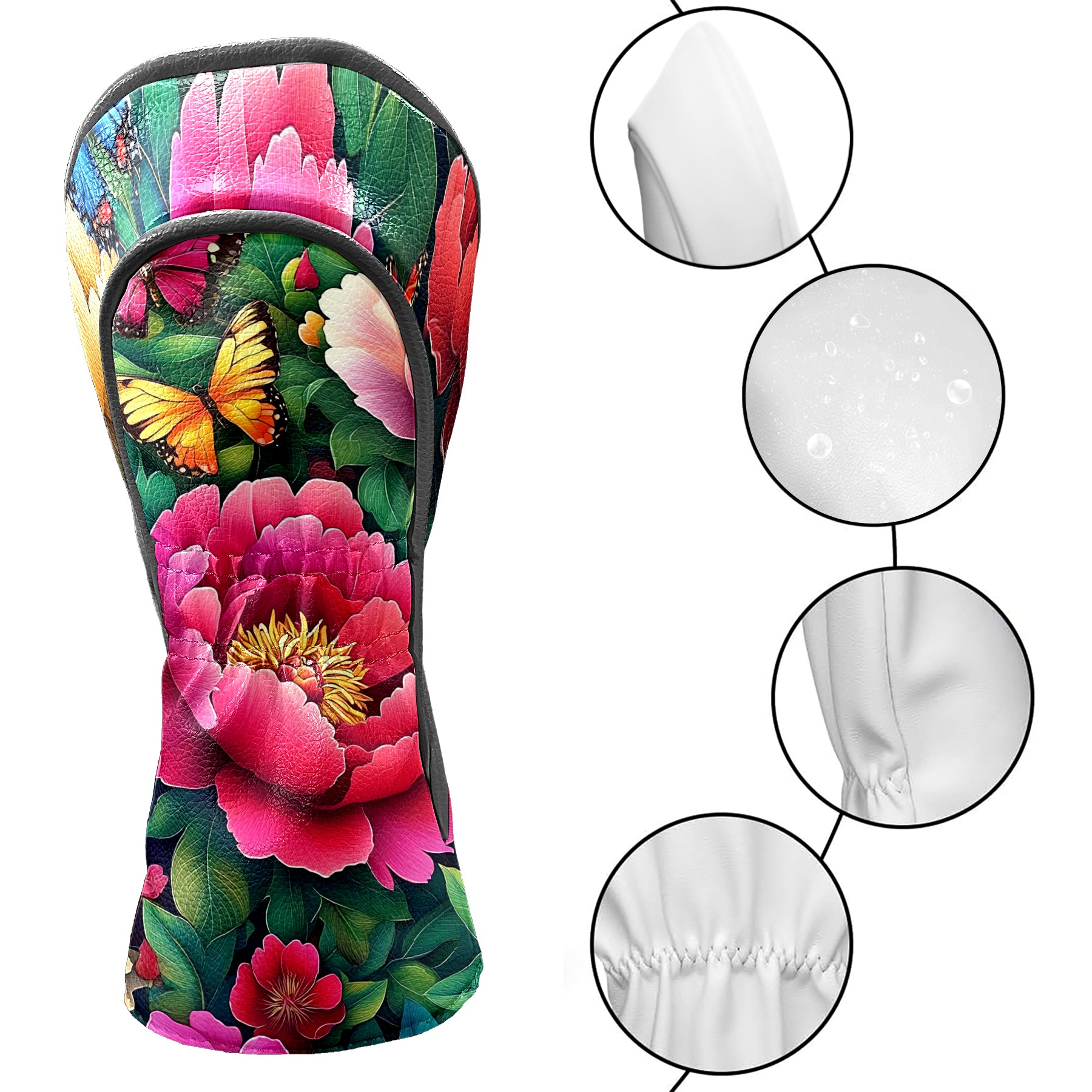 Golf Head Covers Leather Driver Head Cover, Premium Golf Club Covers with Anti-Scratch Lining for Women Men 1/3/5 Wood Cover for Golf Clubs (Colorful Peonies Butterflies (1))