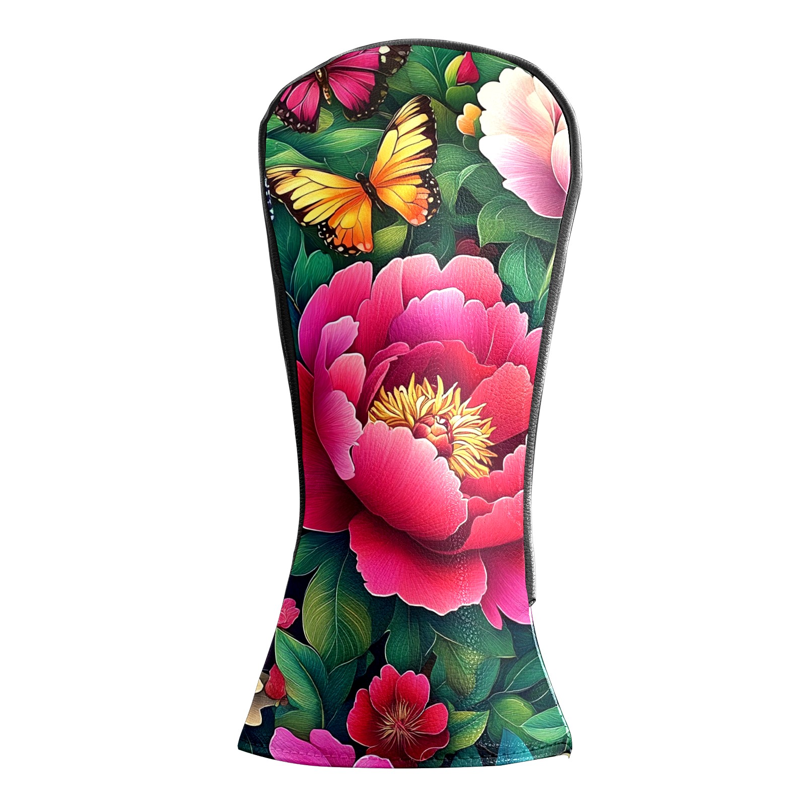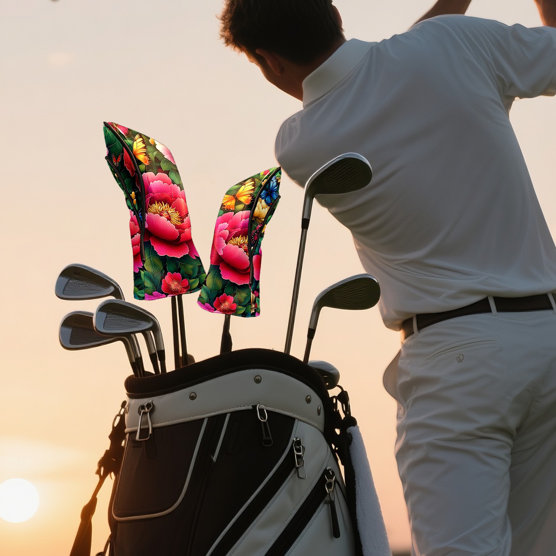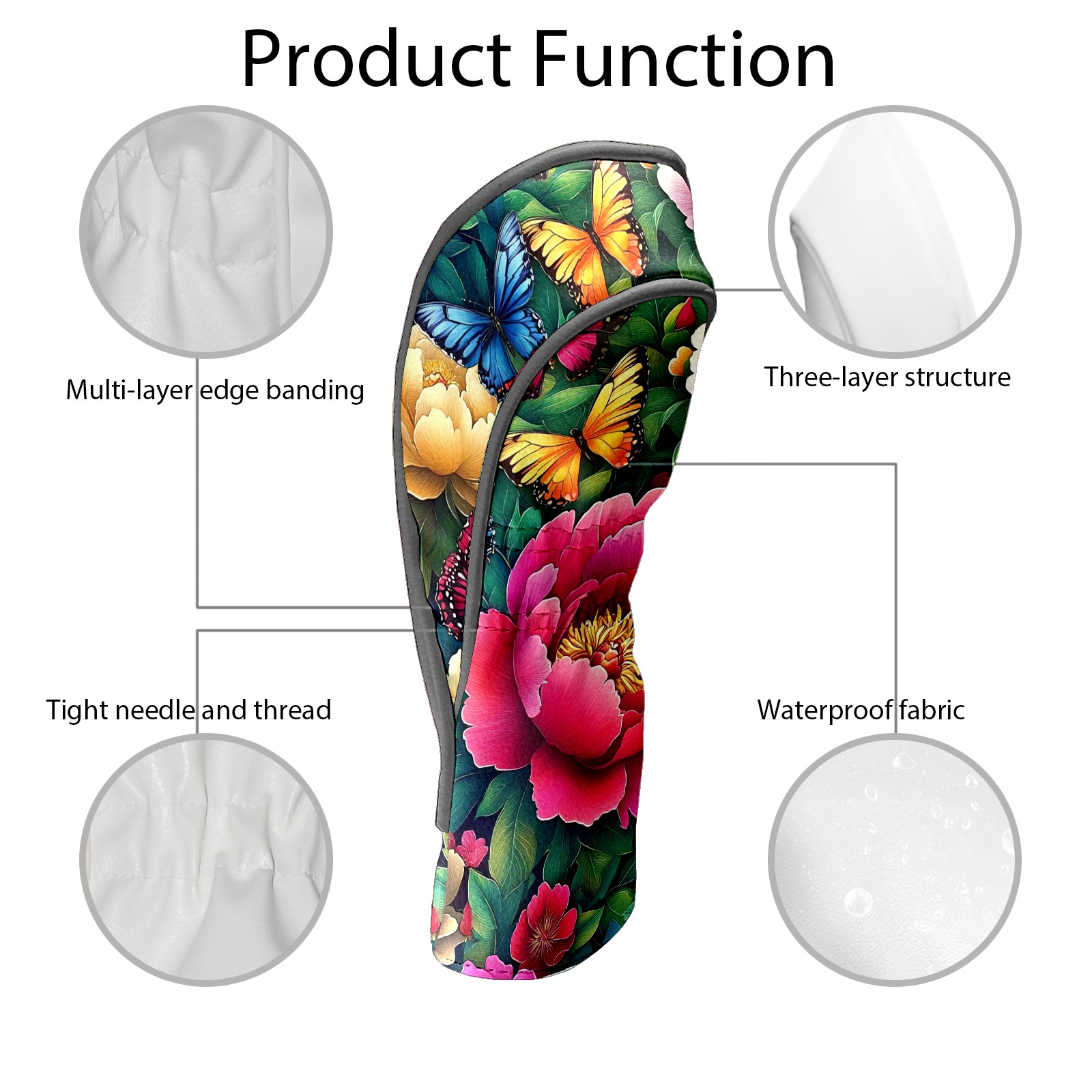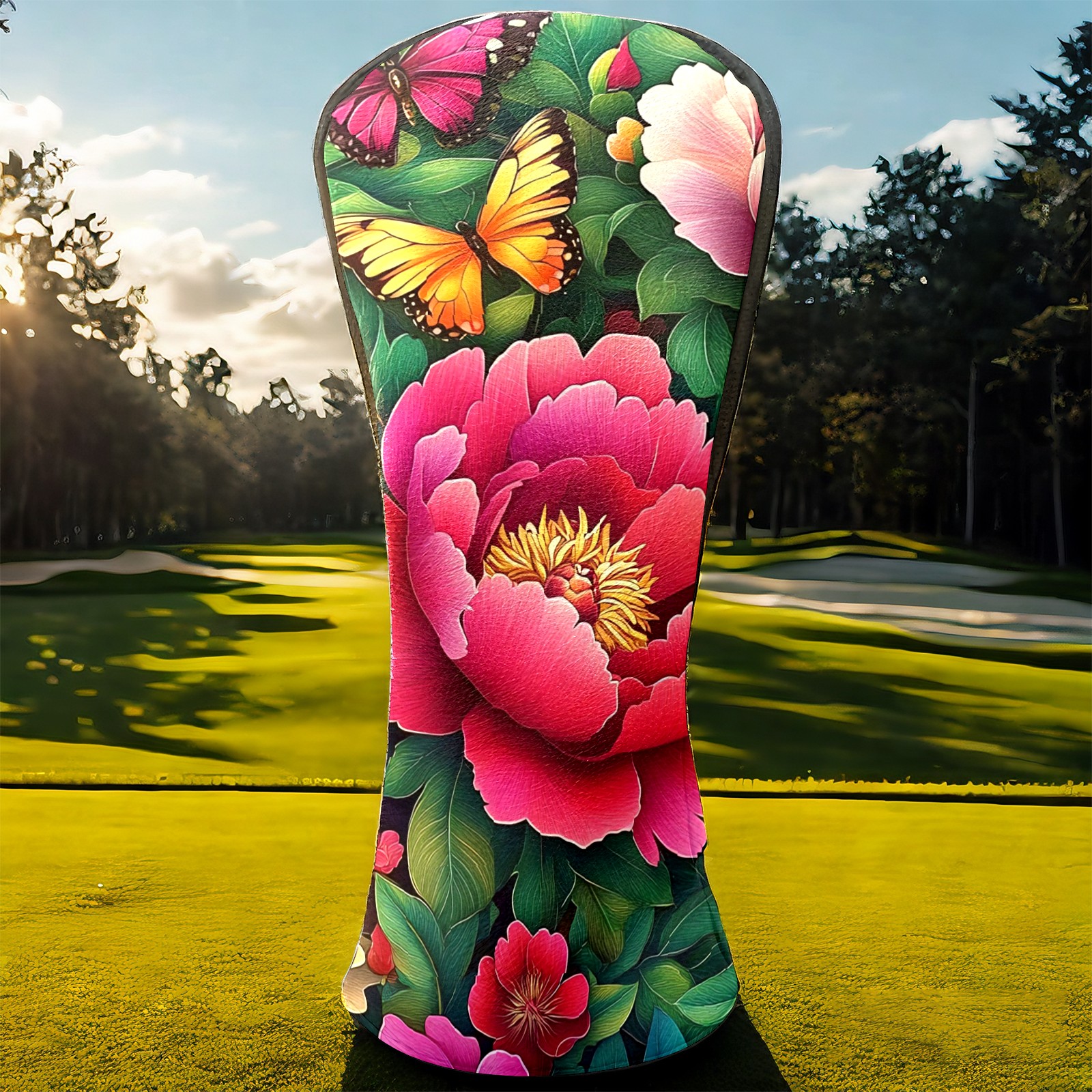 Golf Head Covers Leather Driver Head Cover, Premium Golf Club Covers with Anti-Scratch Lining for Women Men 1/3/5 Wood Cover for Golf Clubs (Colorful Peonies Butterflies (1))