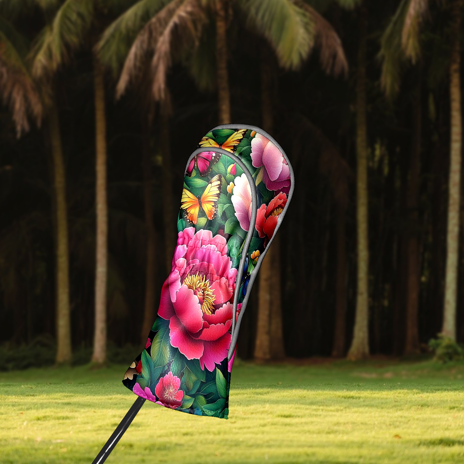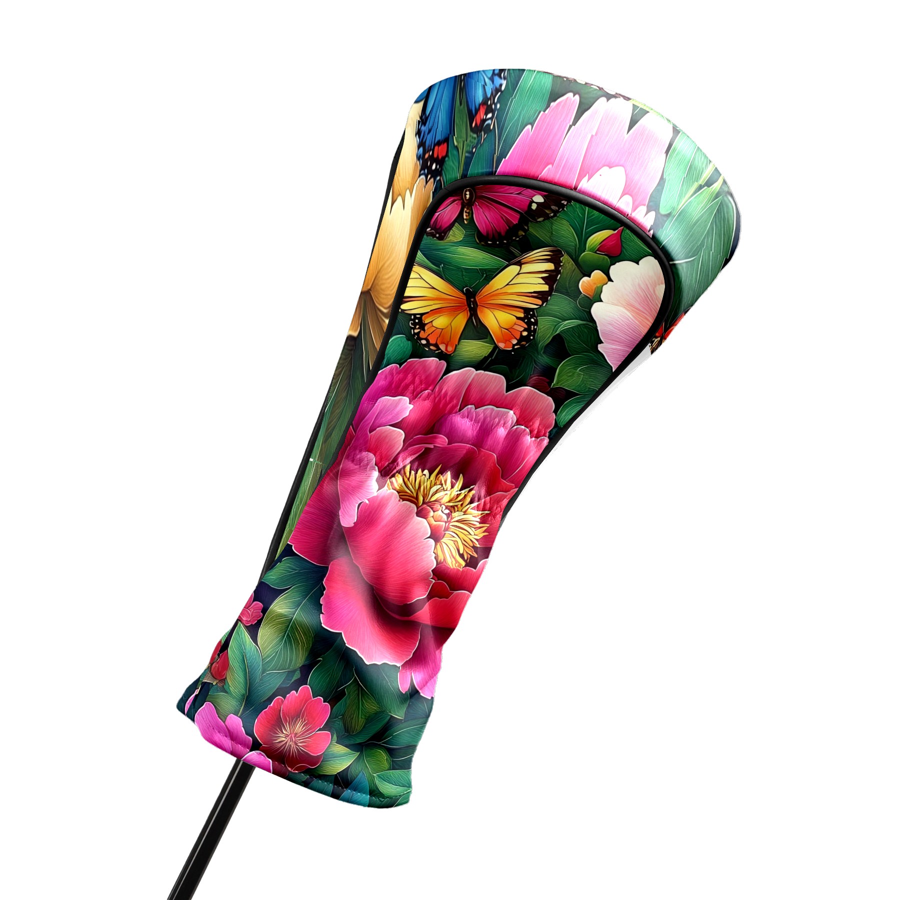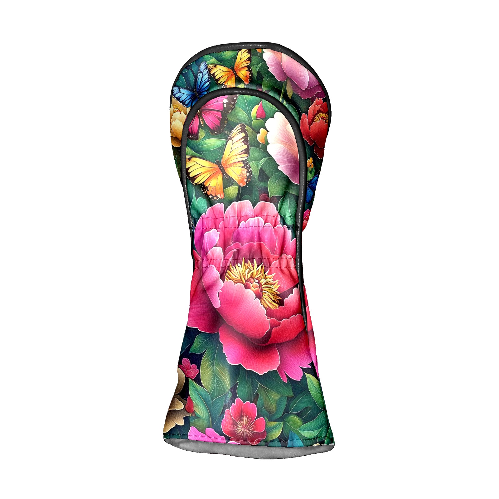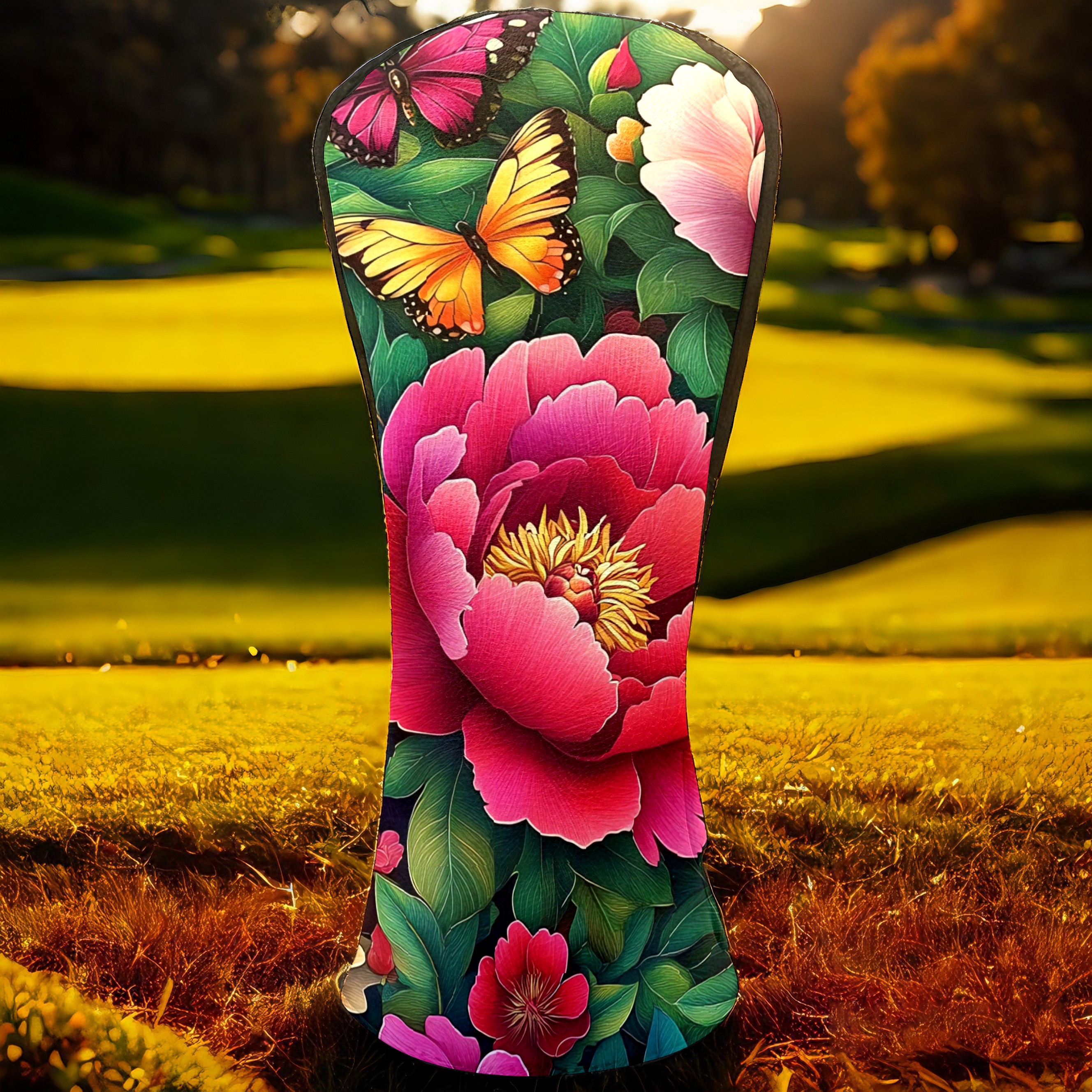 Golf Head Covers Leather Driver Head Cover, Premium Golf Club Covers with Anti-Scratch Lining for Women Men 1/3/5 Wood Cover for Golf Clubs (Colorful Peonies Butterflies (1))