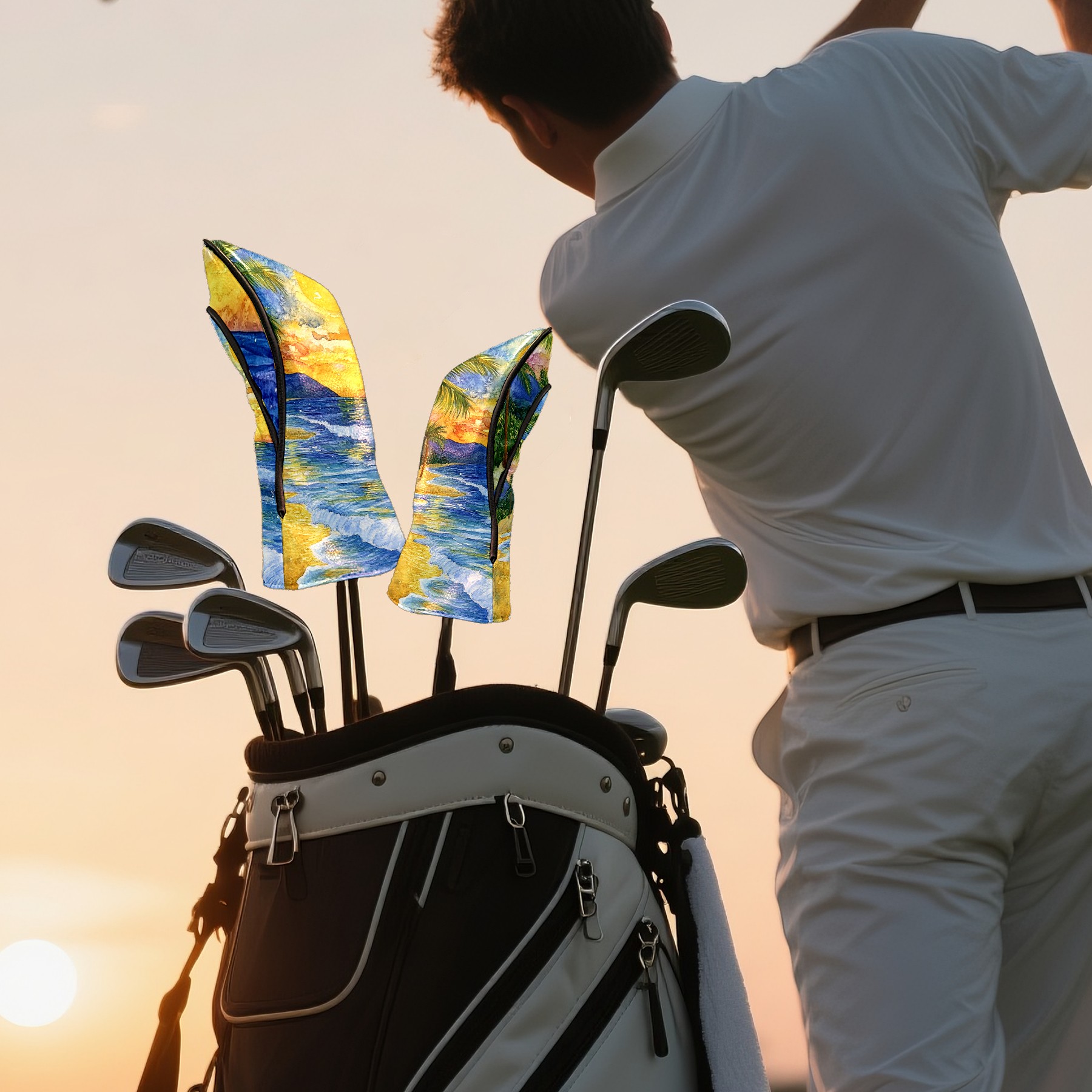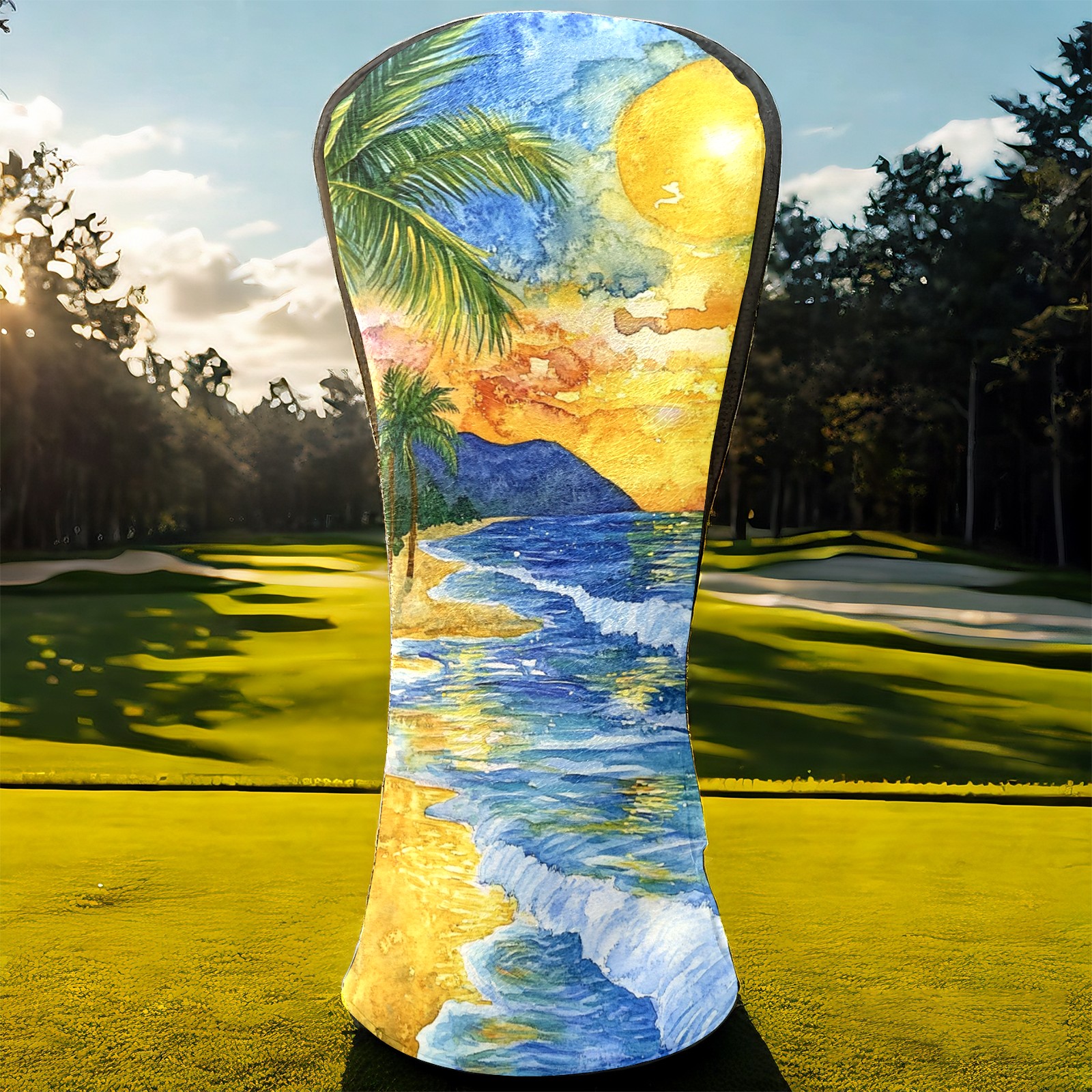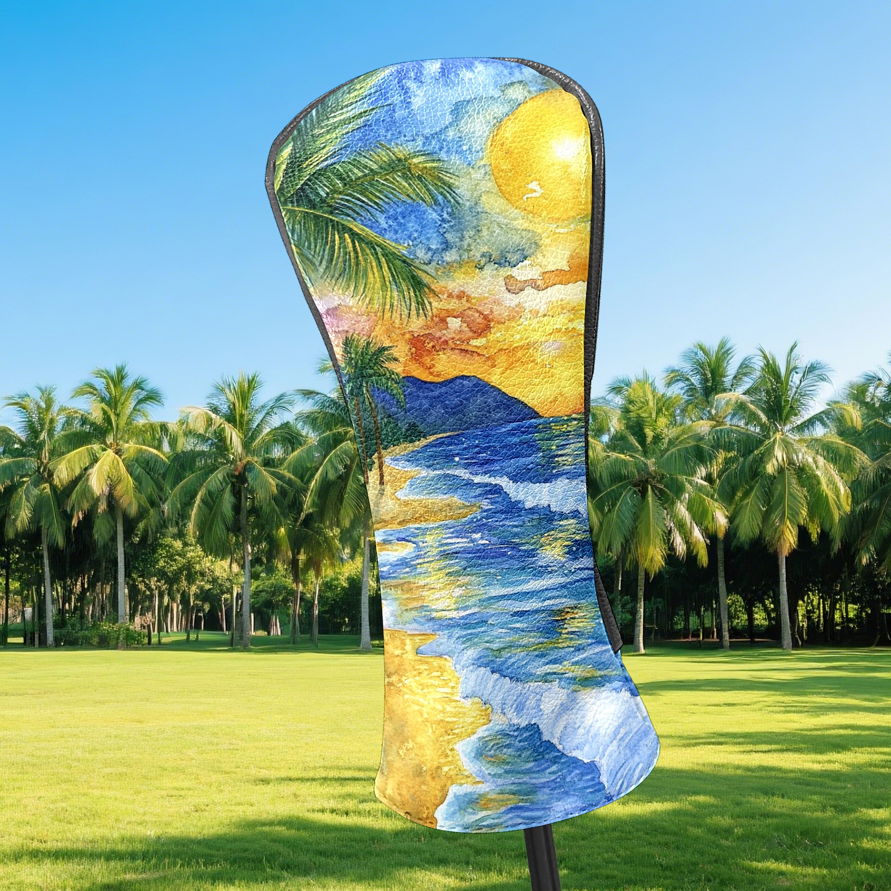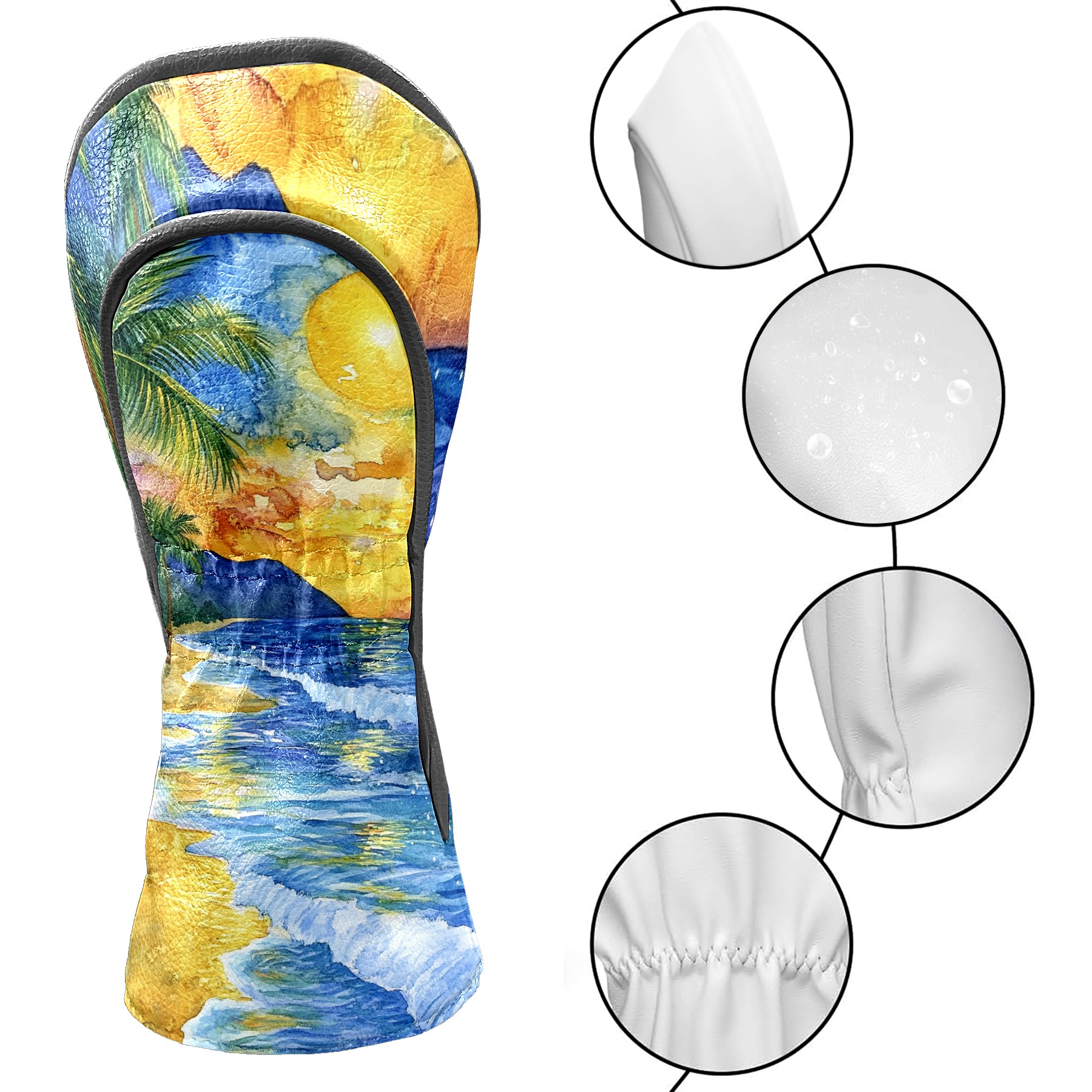 Golf Head Covers Leather Driver Head Cover, Premium Golf Club Covers with Anti-Scratch Lining for Women Men 1/3/5 Wood Cover for Golf Clubs (Beach Sunset)