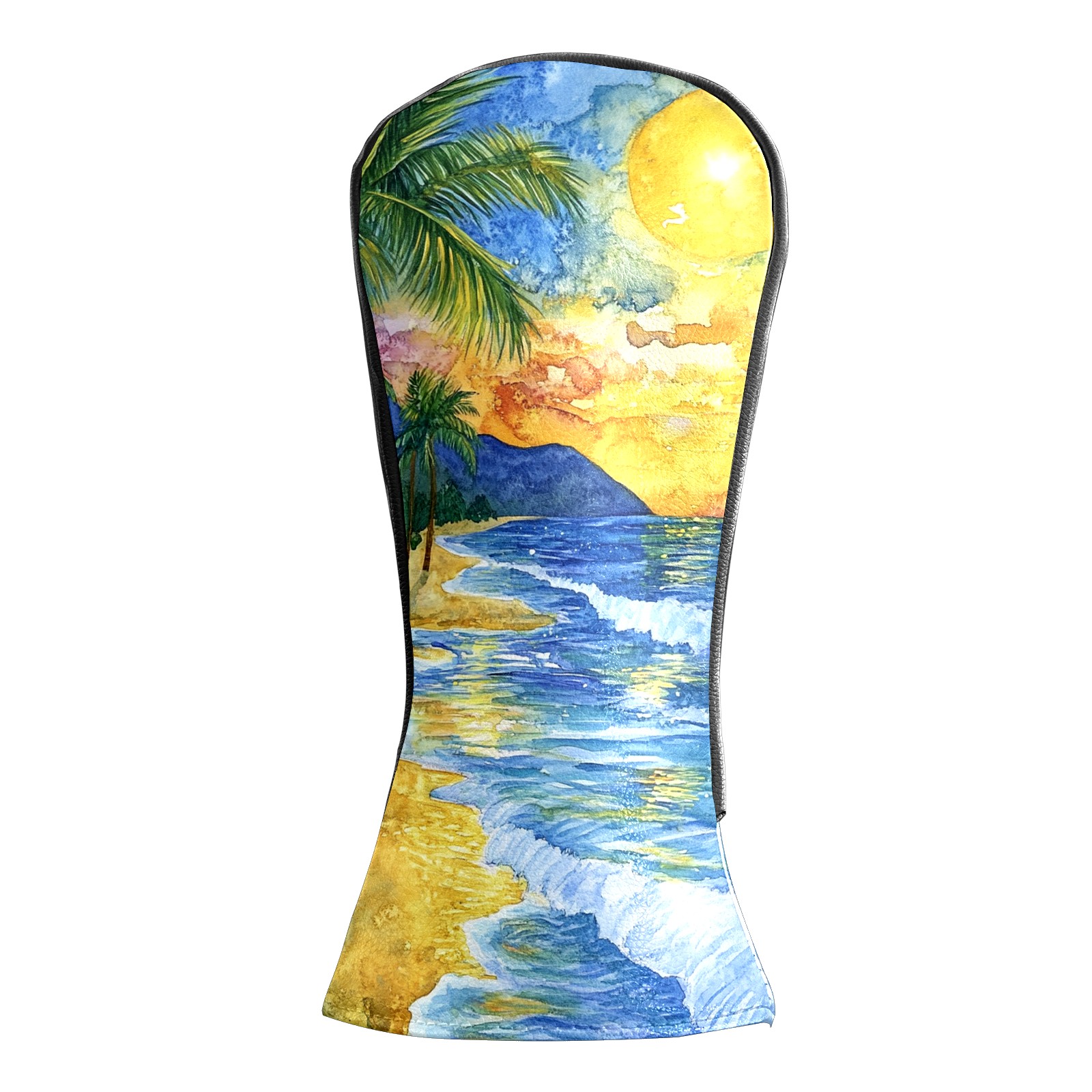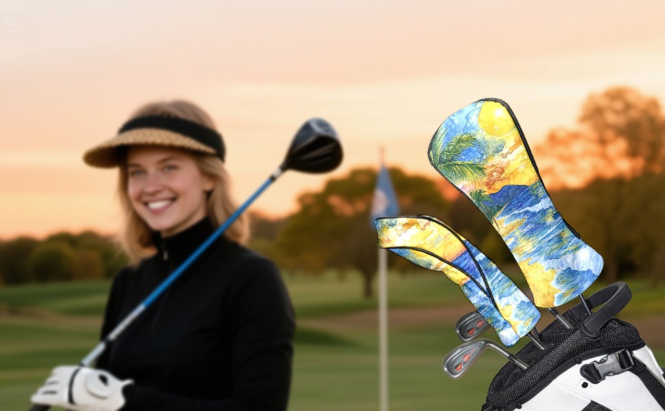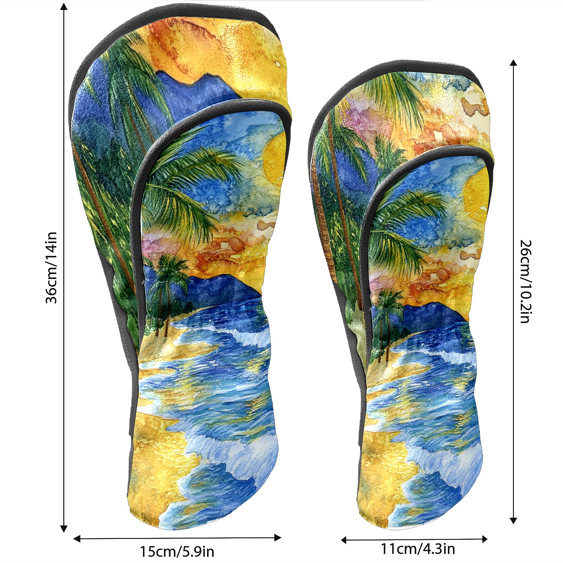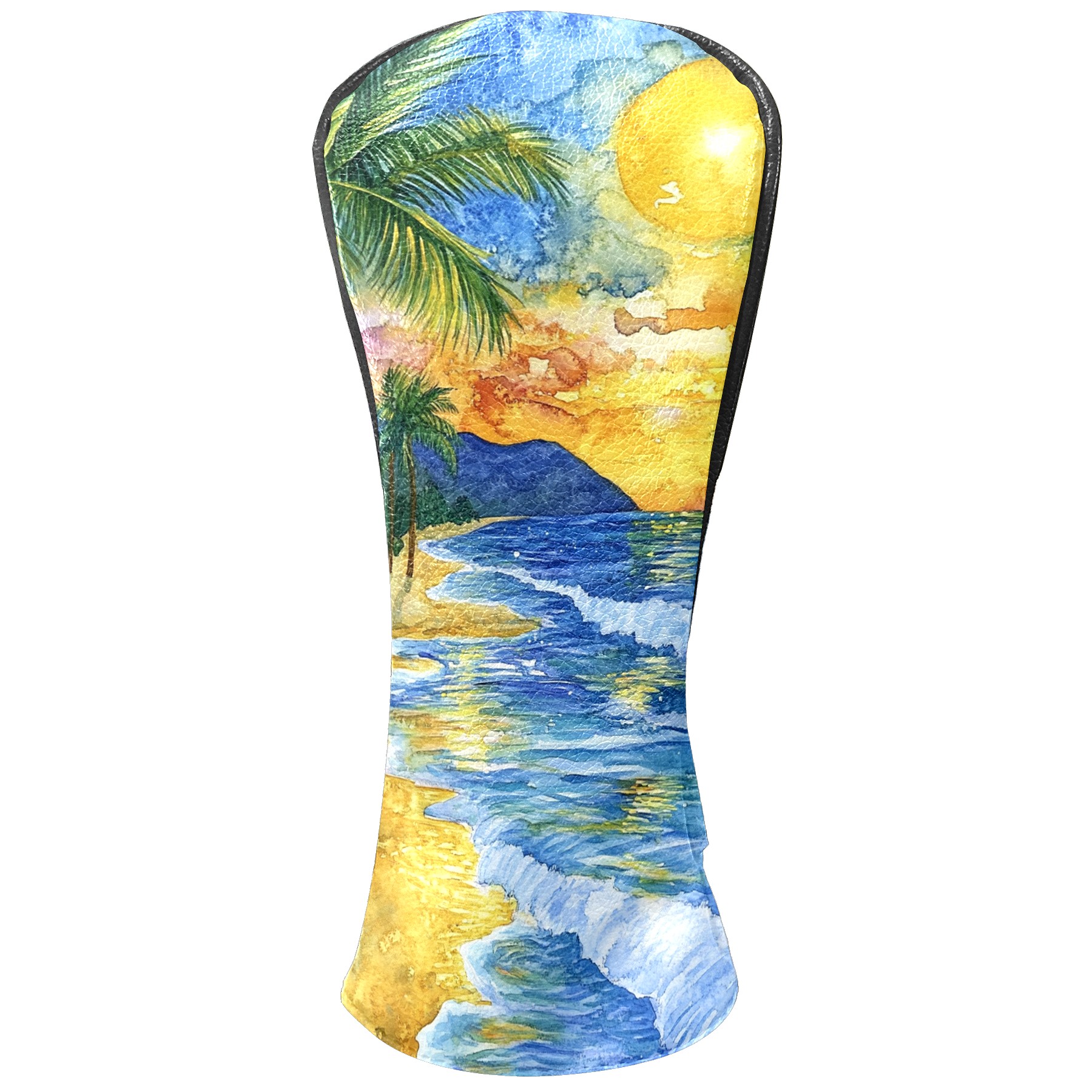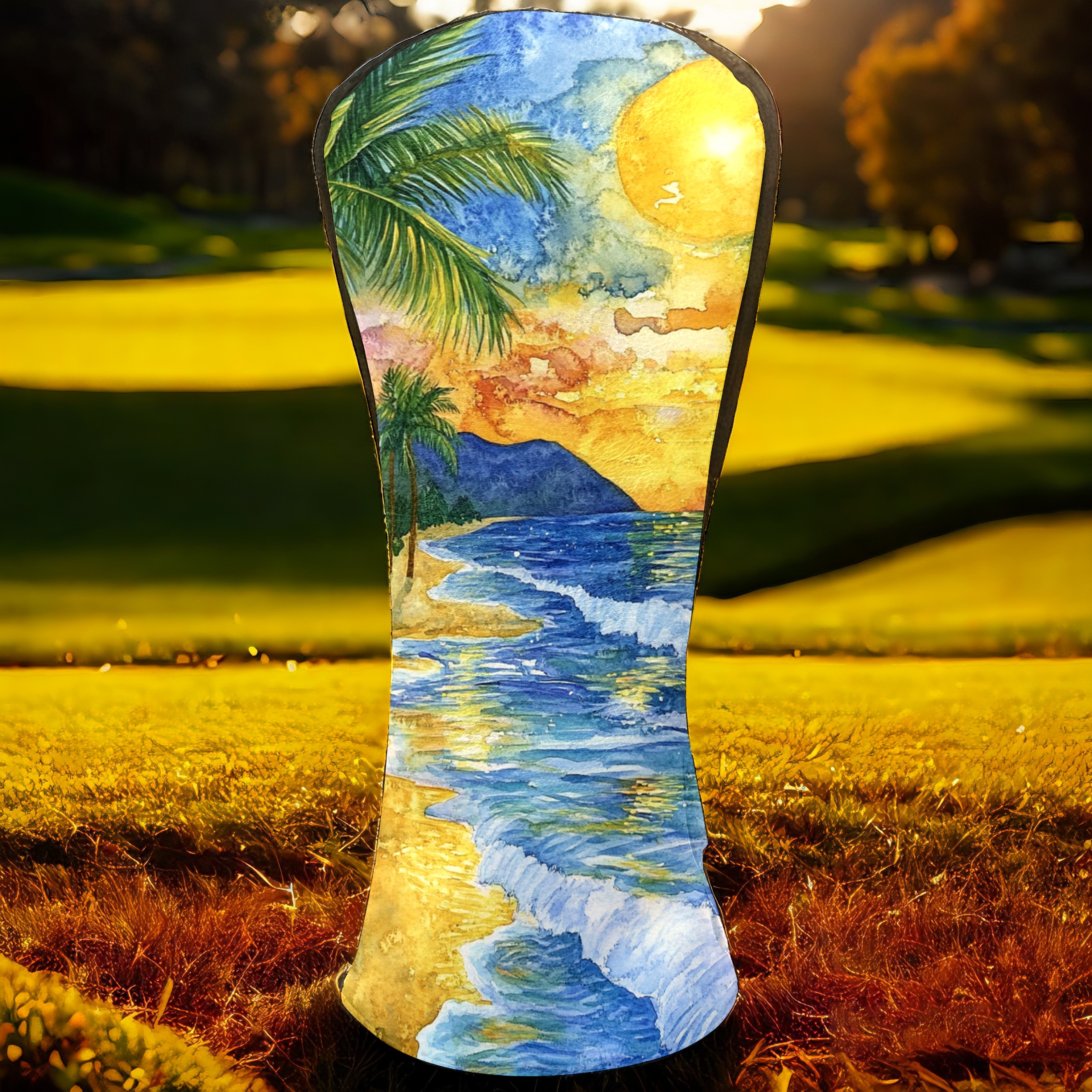 Golf Head Covers Leather Driver Head Cover, Premium Golf Club Covers with Anti-Scratch Lining for Women Men 1/3/5 Wood Cover for Golf Clubs (Beach Sunset)