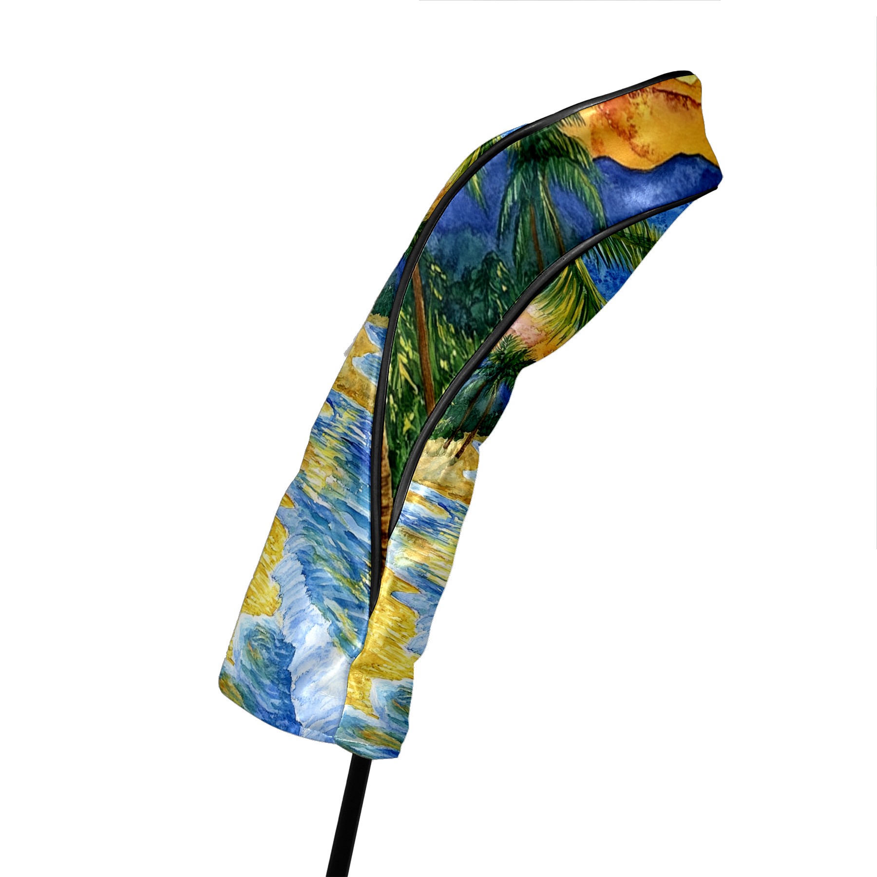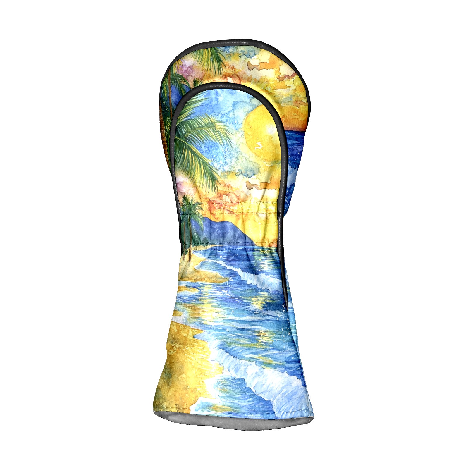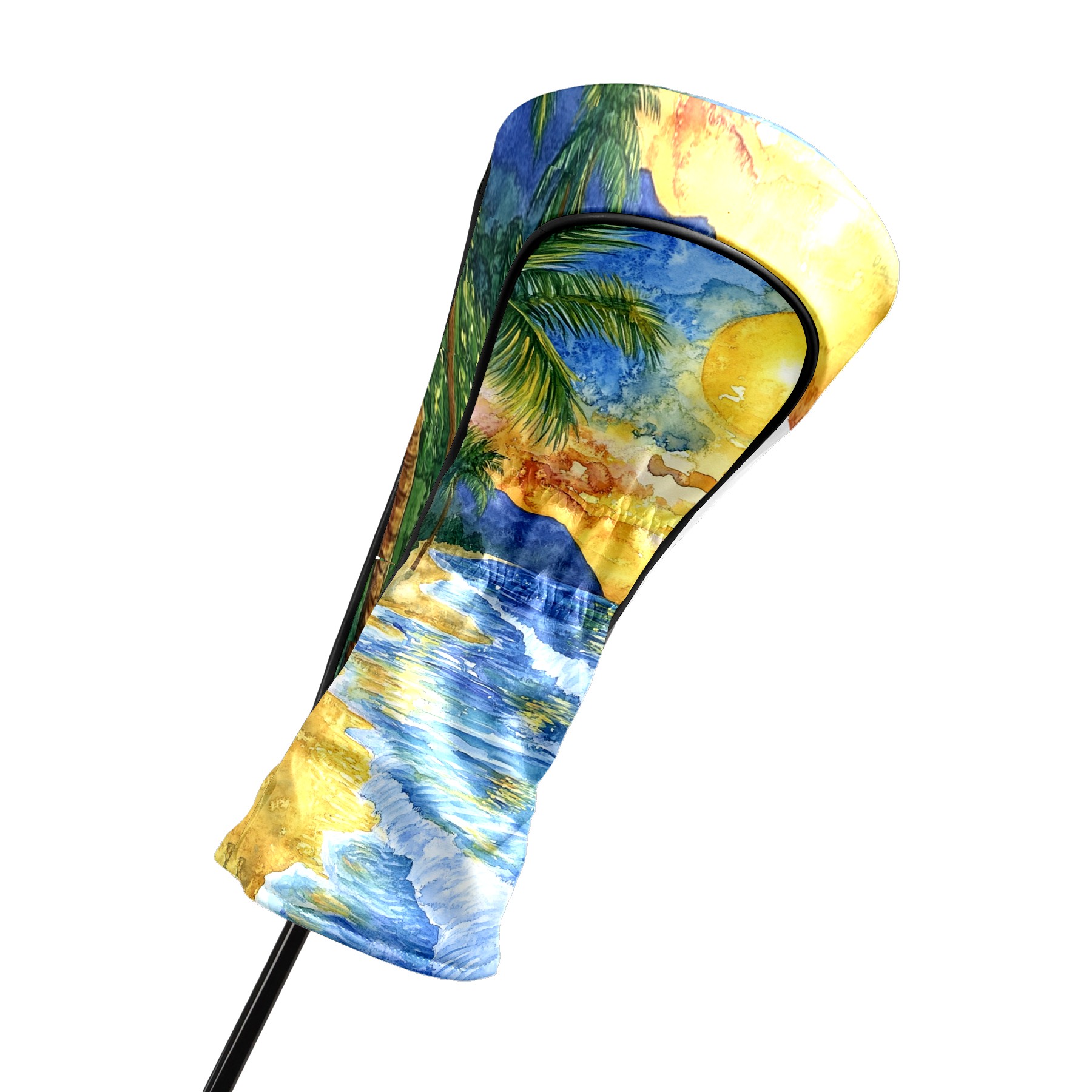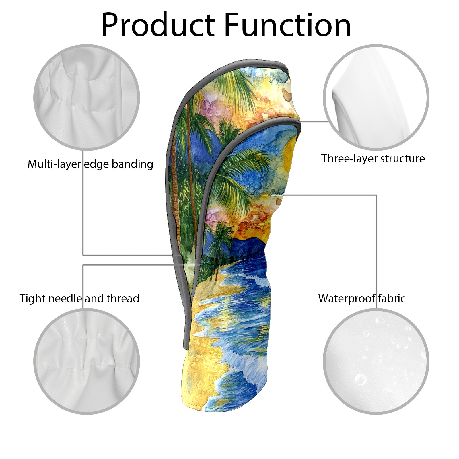 Golf Head Covers Leather Driver Head Cover, Premium Golf Club Covers with Anti-Scratch Lining for Women Men 1/3/5 Wood Cover for Golf Clubs (Beach Sunset)