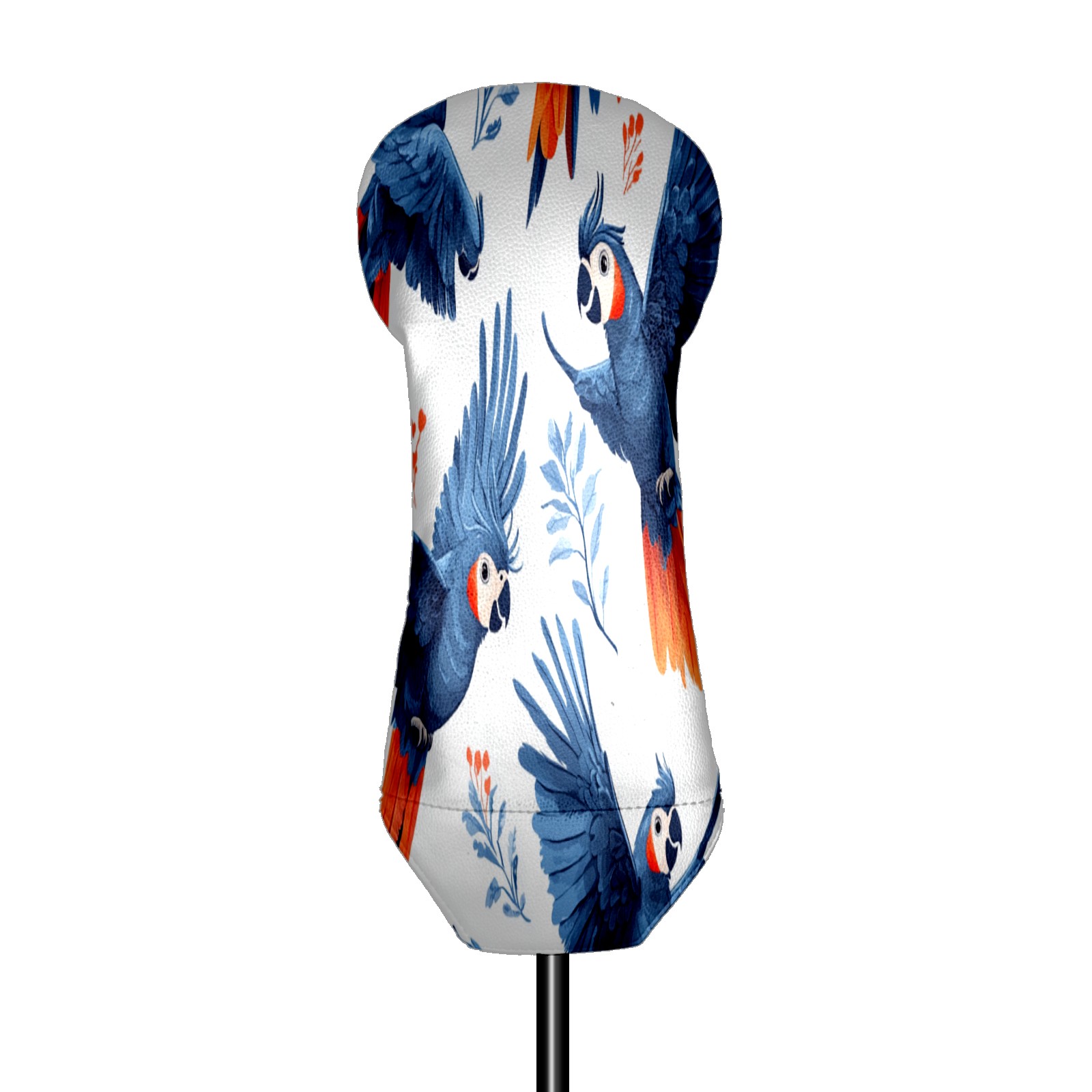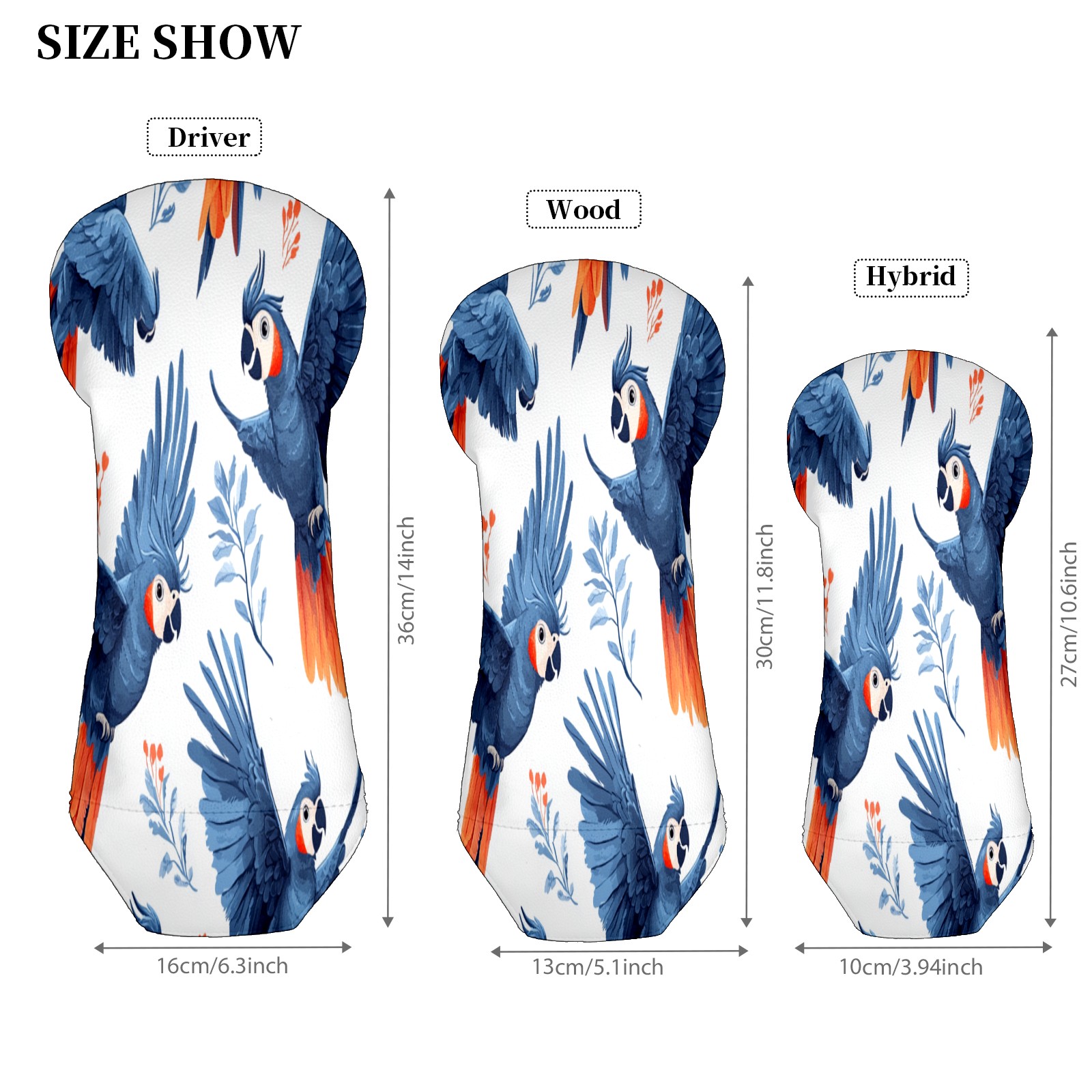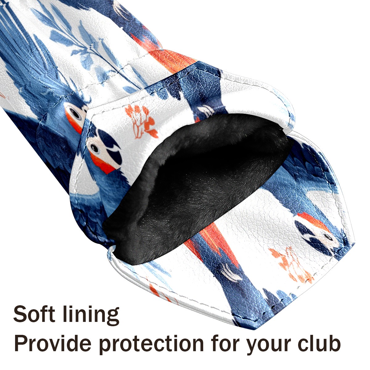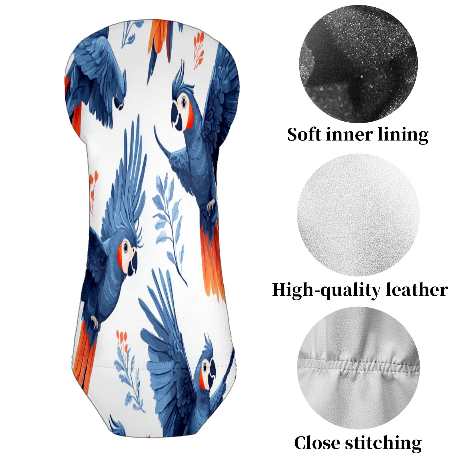 Golf Club Covers for Woods and Driver Hybrid Velvet Cover Leather Golf Headcover for Most Brand Club Men Women Blue-winged Parrot