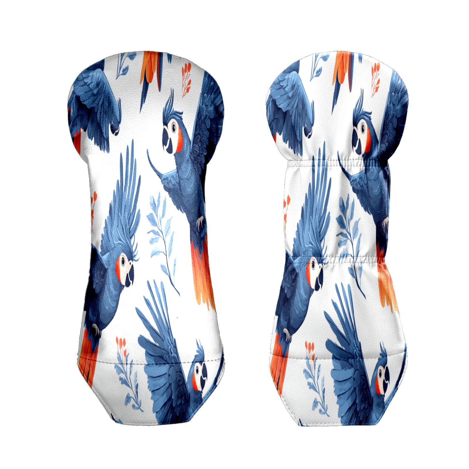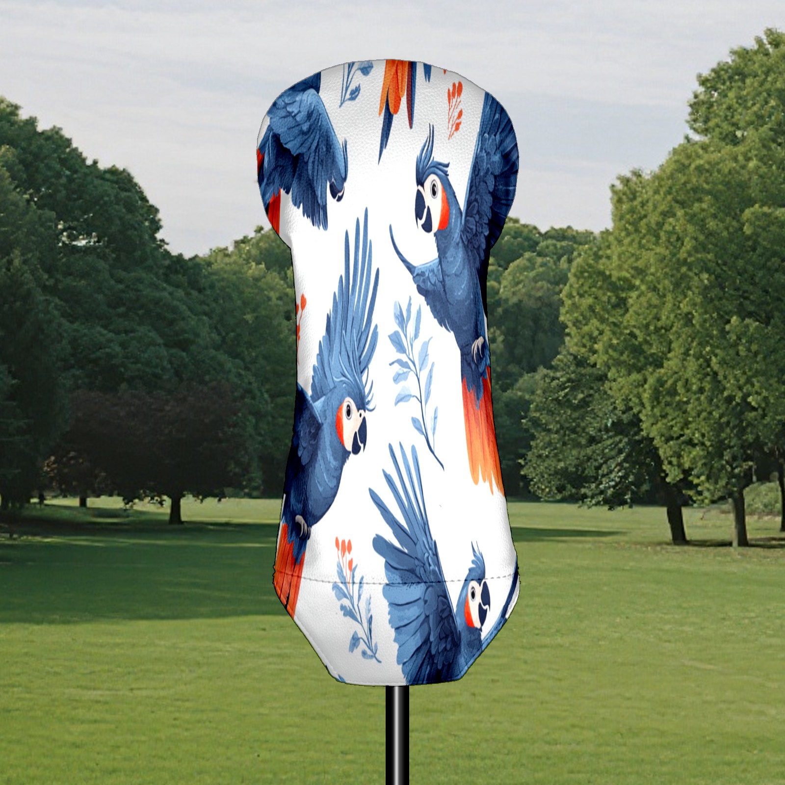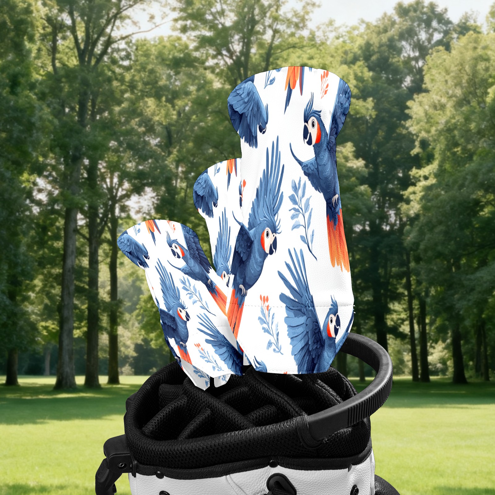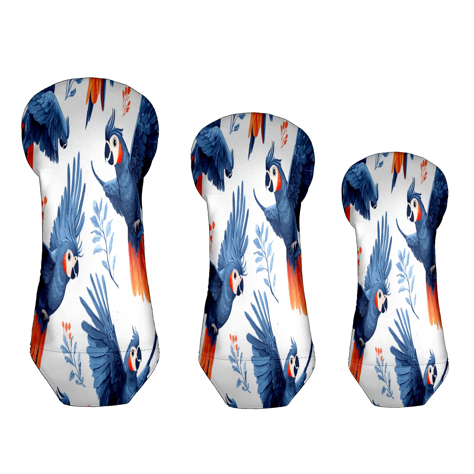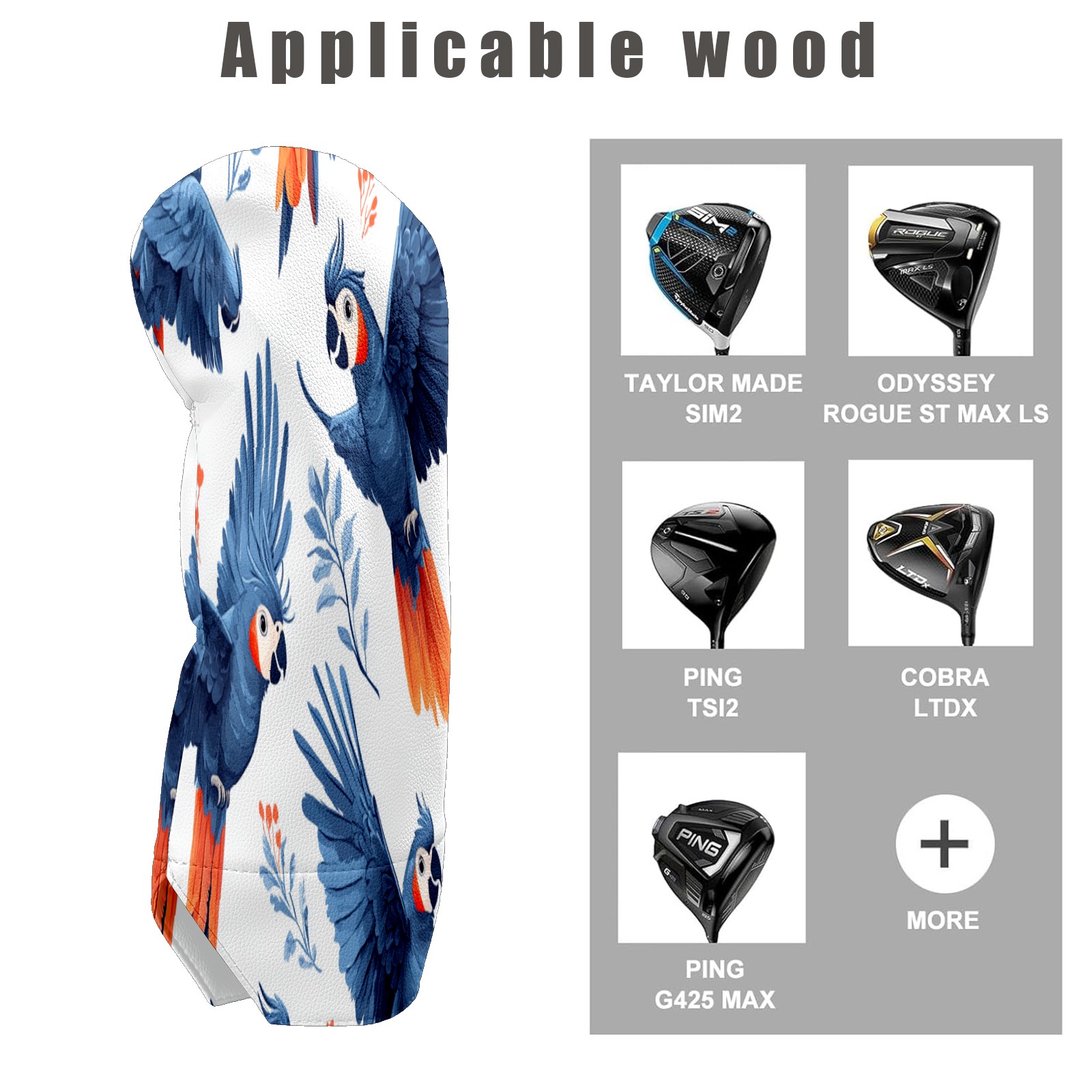 Golf Club Covers for Woods and Driver Hybrid Velvet Cover Leather Golf Headcover for Most Brand Club Men Women Blue-winged Parrot