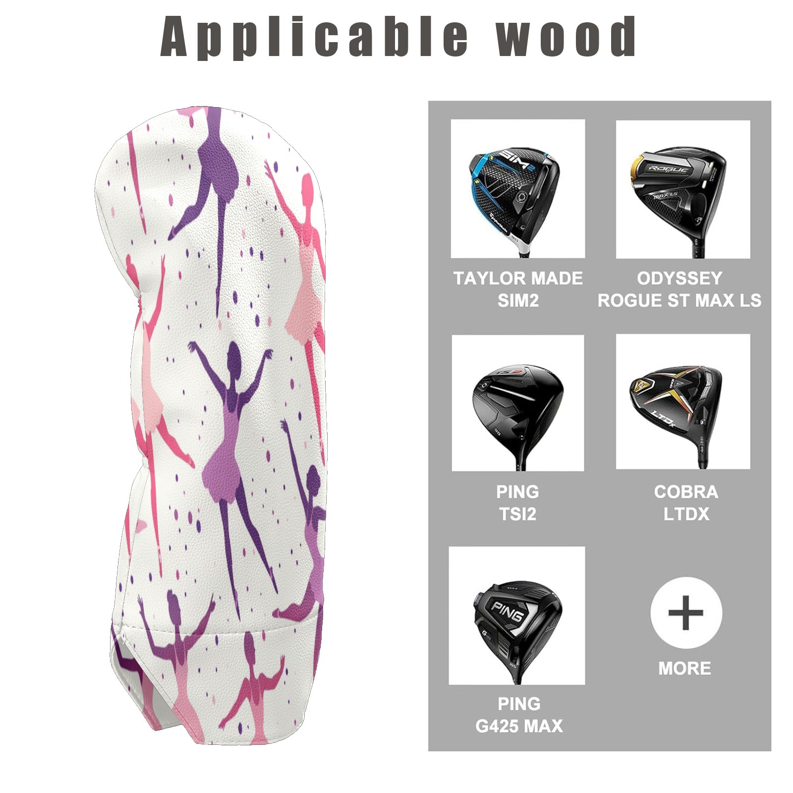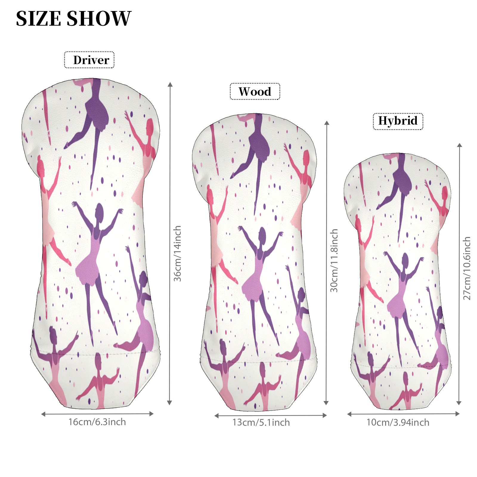 Golf Club Covers for Woods and Driver Hybrid Velvet Cover Leather Golf Headcover for Most Brand Club Men Women Ballet Silhouettes