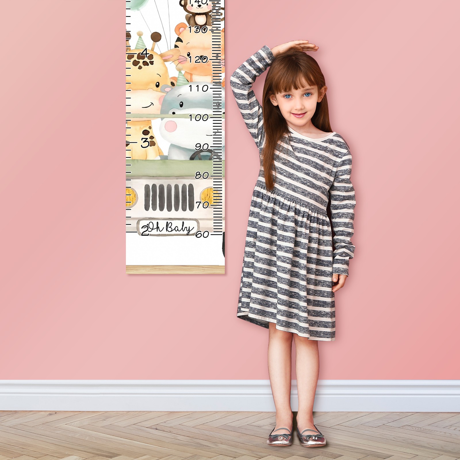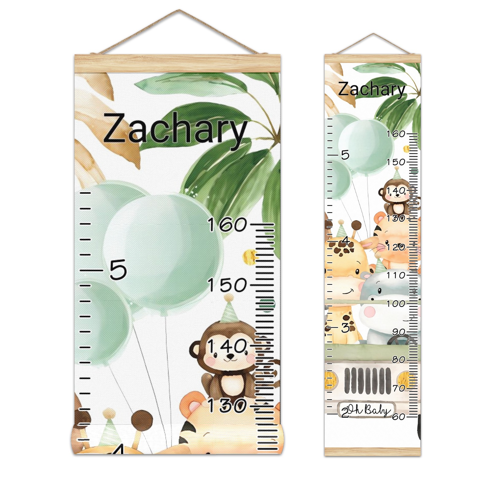 Personalized Kids Name Growth Chart Ruler for Wall Wood Frame Canvas Height Measure Chart 13.4x56 in Hanging Growth Chart Watercolor Safari Animals Jungle Greenery1.14 Boys Girls Room Decor