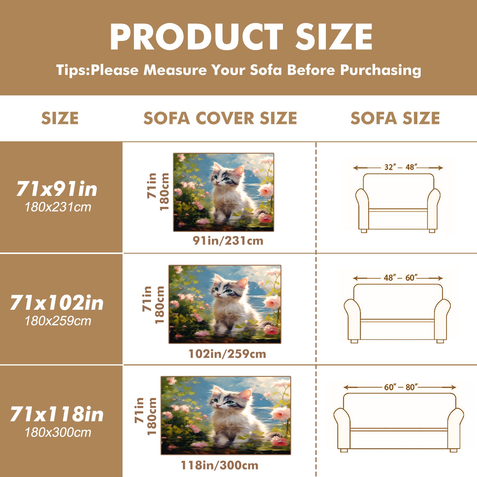 <p>Where Comfort Meets Everyday Elegance</p> <p>Engineered with a breakthrough polyester-cotton blend, these 4-size sofa covers deliver plush protection while enhancing your living space aesthetics.Precision-Crafted Details</p> <p>65% heavy-duty polyester + 35% combed cotton, brushed to create a velvety layer ideal for bare-skin contact during relaxation.</p> <p>Dimensions: 71x91/102/118/134in (±2cm). Elastic hemming + corner straps maintain smooth coverage on L-shaped curves and high-back designs.</p> <p>Dust Defense: Tight plain weave minimizes particle accumulation; easy shake-off maintenance</p> <p>Easy Maintenance: Machine washable at 86°F (30°C) without fading or shrinkage</p> <p>From quiet afternoon naps to lively gatherings, experience lasting softness and reliable protection that evolves with your lifestyle.</p>