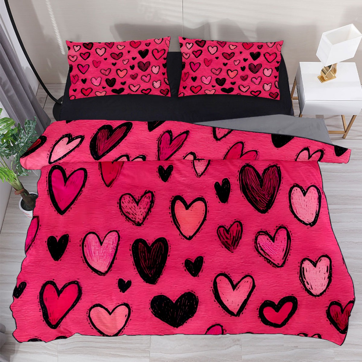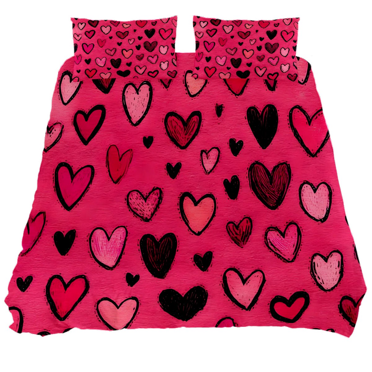 3-Piece Bed Set - Soft Microfiber Bedding (1 Duvet Cover + 2 Pillowcases), Vibrant Heat-Transfer Print, Fade & Pilling Resistant, Qu- ee-n/King Size Fiery Heart Red