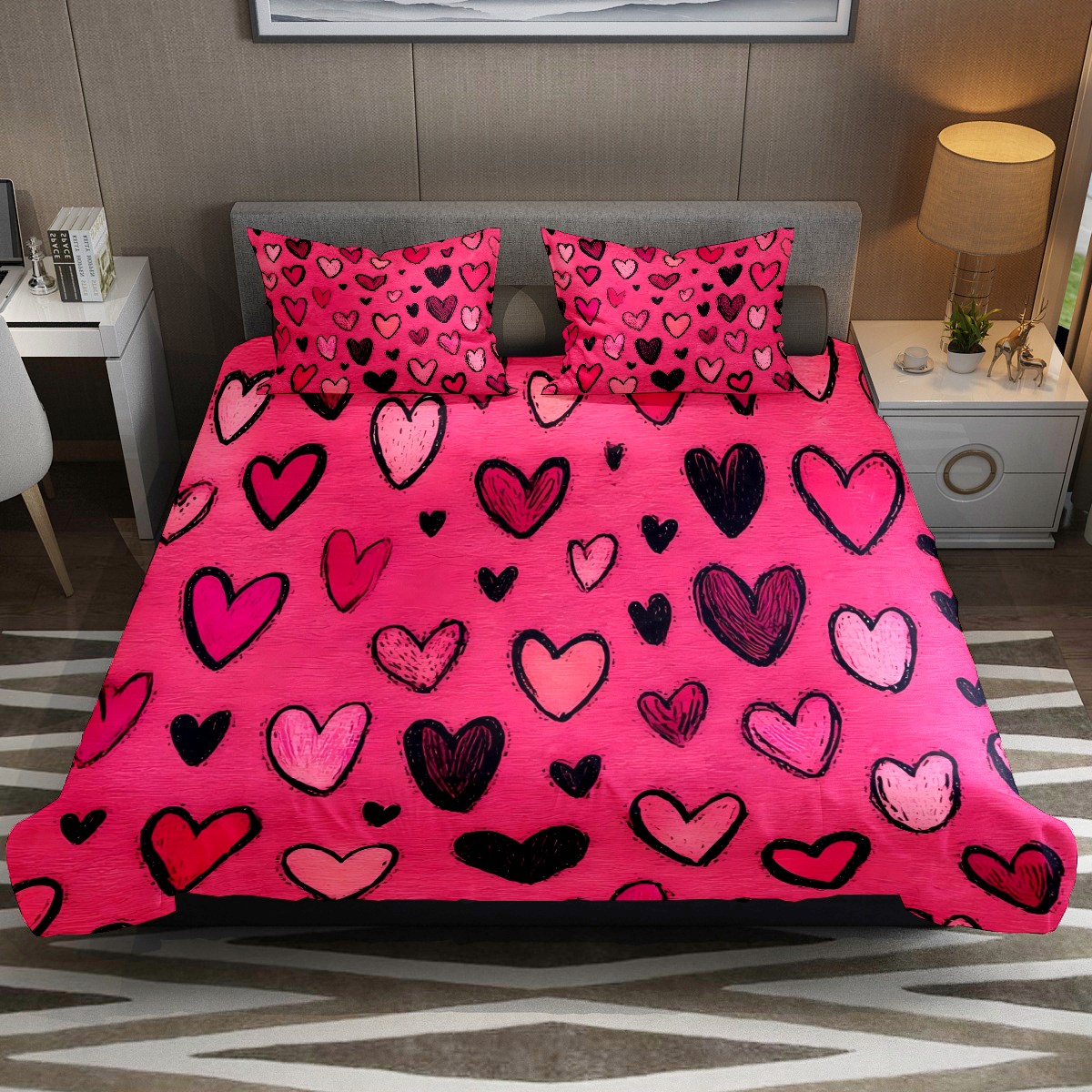 <p>Upgrade your sleep space with the HELVOON 3-Piece Bed Set. Made from soft, skin-friendly microfiber, it wraps you in cozy comfort night after night. The set includes 1 duvet cover and 2 matching pillowcases, fitting Queen/King beds perfectly. Its vibrant heat-transfer print stays bright wash after wash, while the durable fabric resists fading and pilling. Easy to care for (machine-washable) and wrinkle-resistant, this bedding works for daily use, guest rooms, or dorm rooms. Add a fresh, stylish touch to your bedroom—practical, comfortable, and decorative all in one.</p>