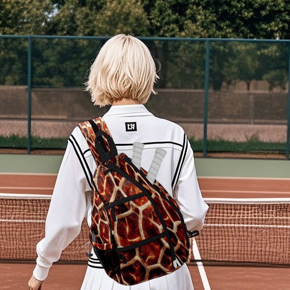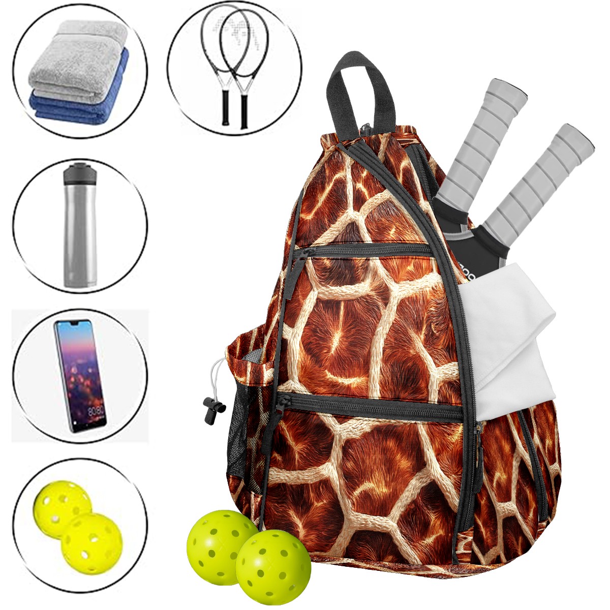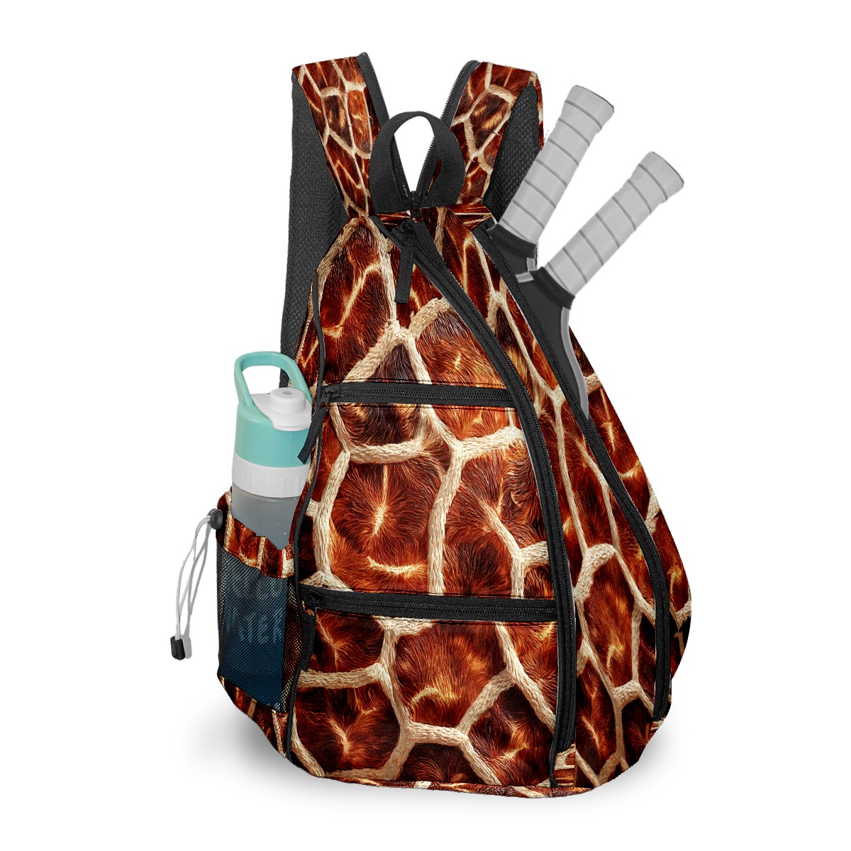 Counullo Vintage Giraffe Brown 3-in-1 Premium Nylon Pickleball Backpack, Convertible Shoulder & Crossbody Bag for Women & Men, Holds 2-4 Paddles & Sports Gear