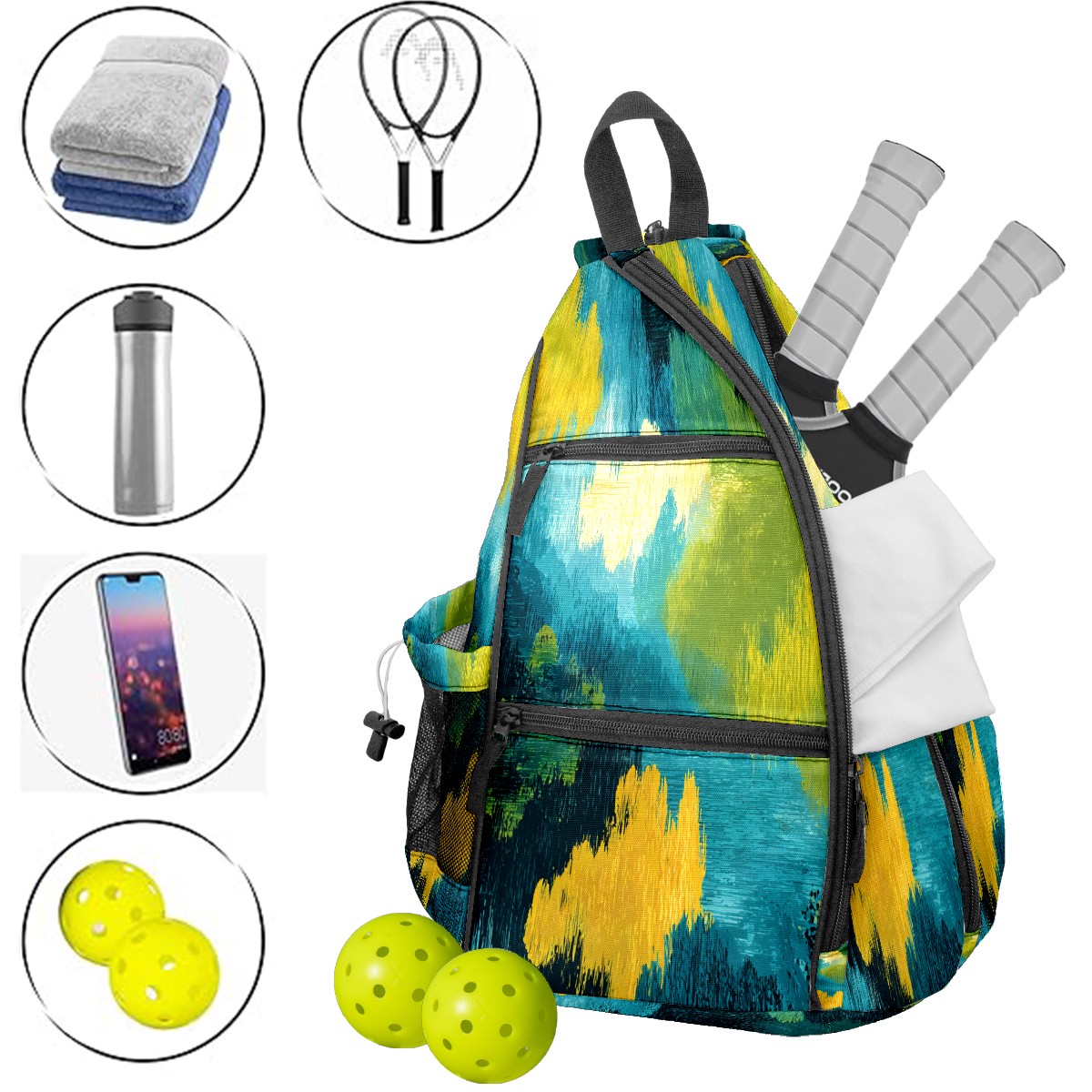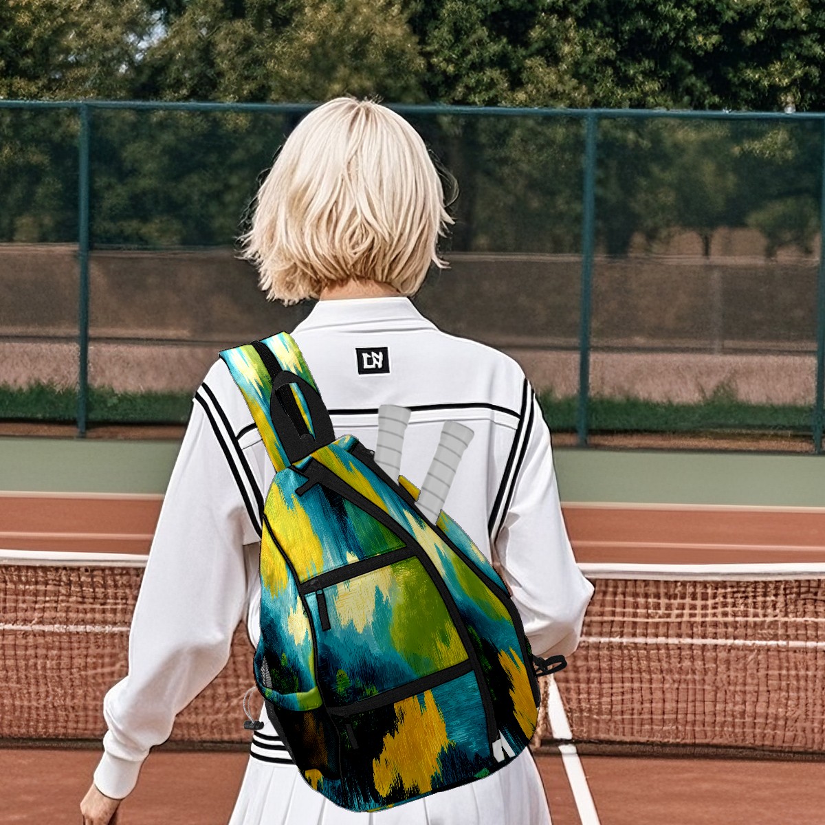 Counullo Dreamy Landscape Blue 3-in-1 Premium Nylon Pickleball Backpack, Convertible Shoulder & Crossbody Bag for Women & Men, Holds 2-4 Paddles & Sports Gear
