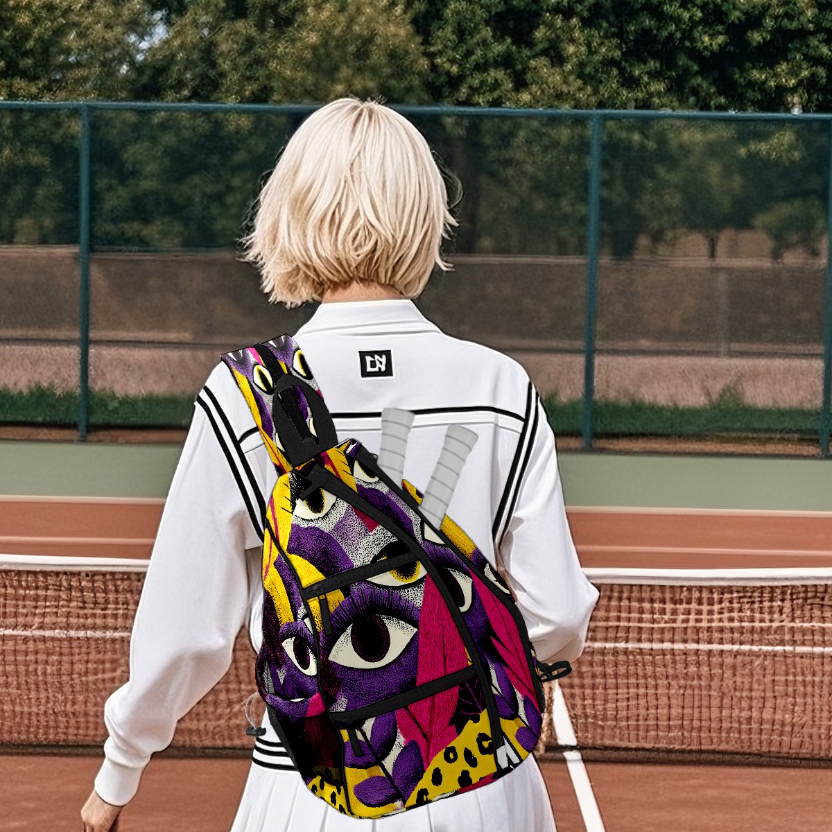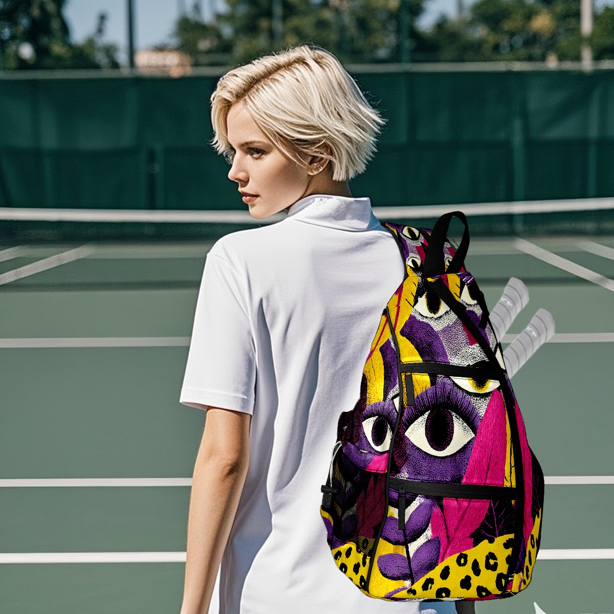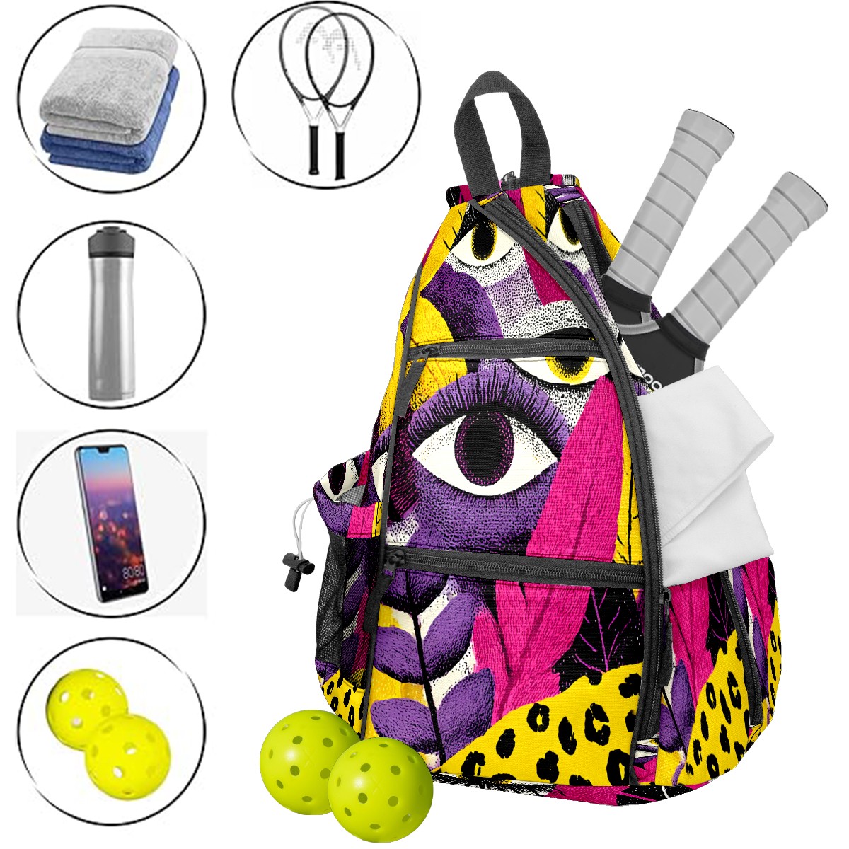 Counullo Fantasy Eye Multi 3-in-1 Premium Nylon Pickleball Backpack, Convertible Shoulder & Crossbody Bag for Women & Men, Holds 2-4 Paddles & Sports Gear