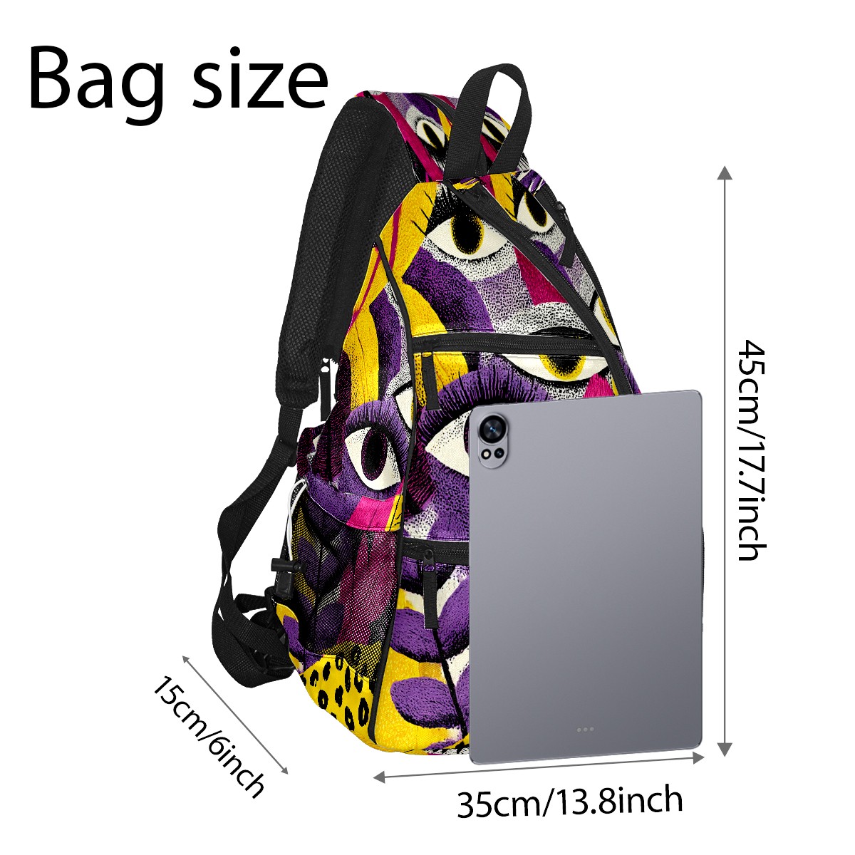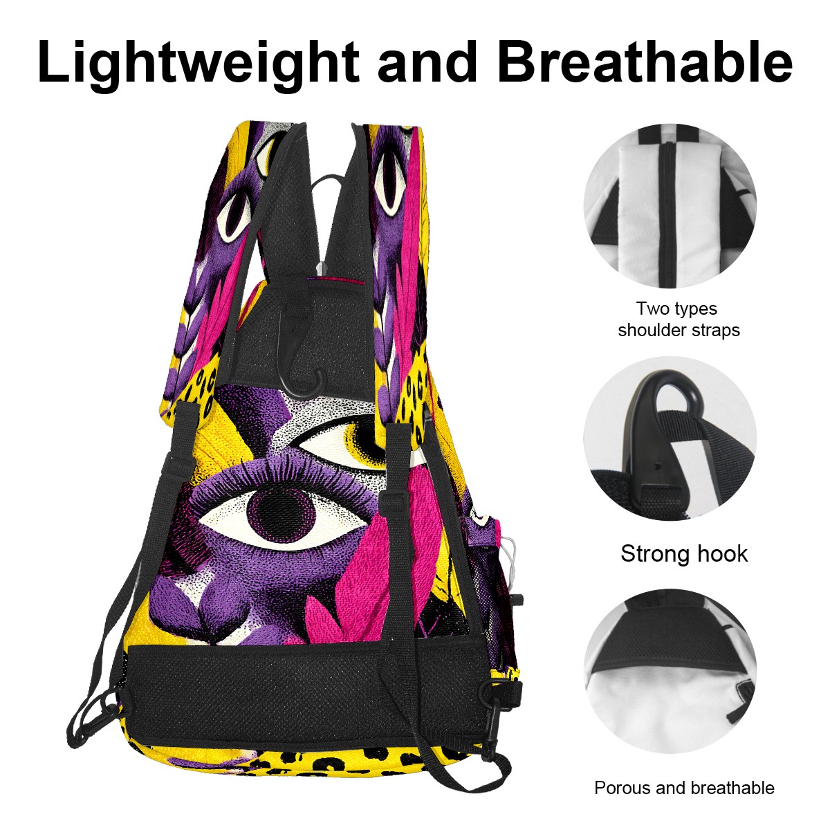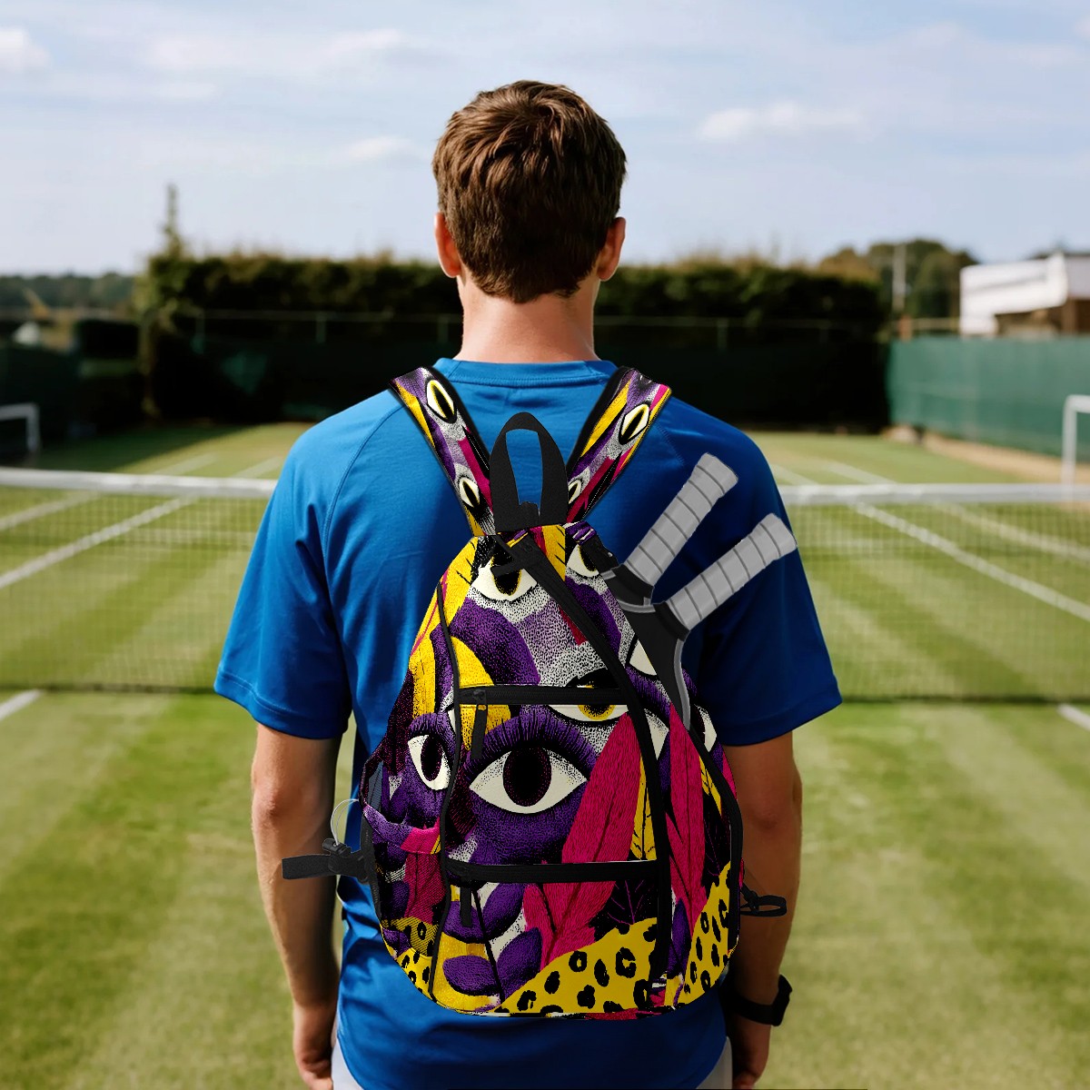Counullo Fantasy Eye Multi 3-in-1 Premium Nylon Pickleball Backpack, Convertible Shoulder & Crossbody Bag for Women & Men, Holds 2-4 Paddles & Sports Gear
