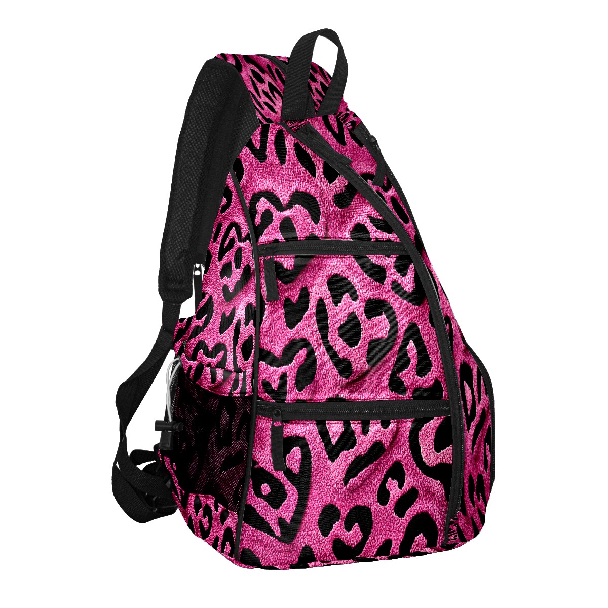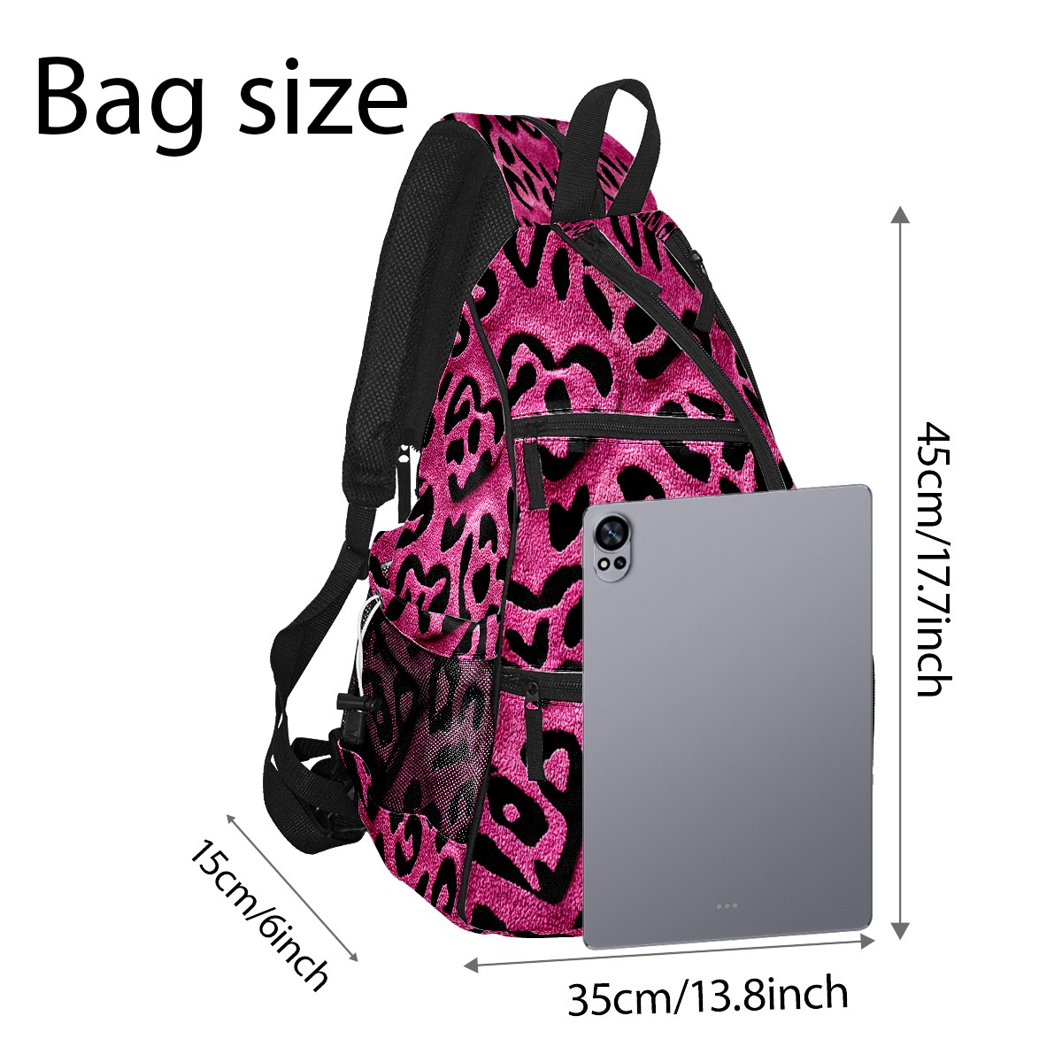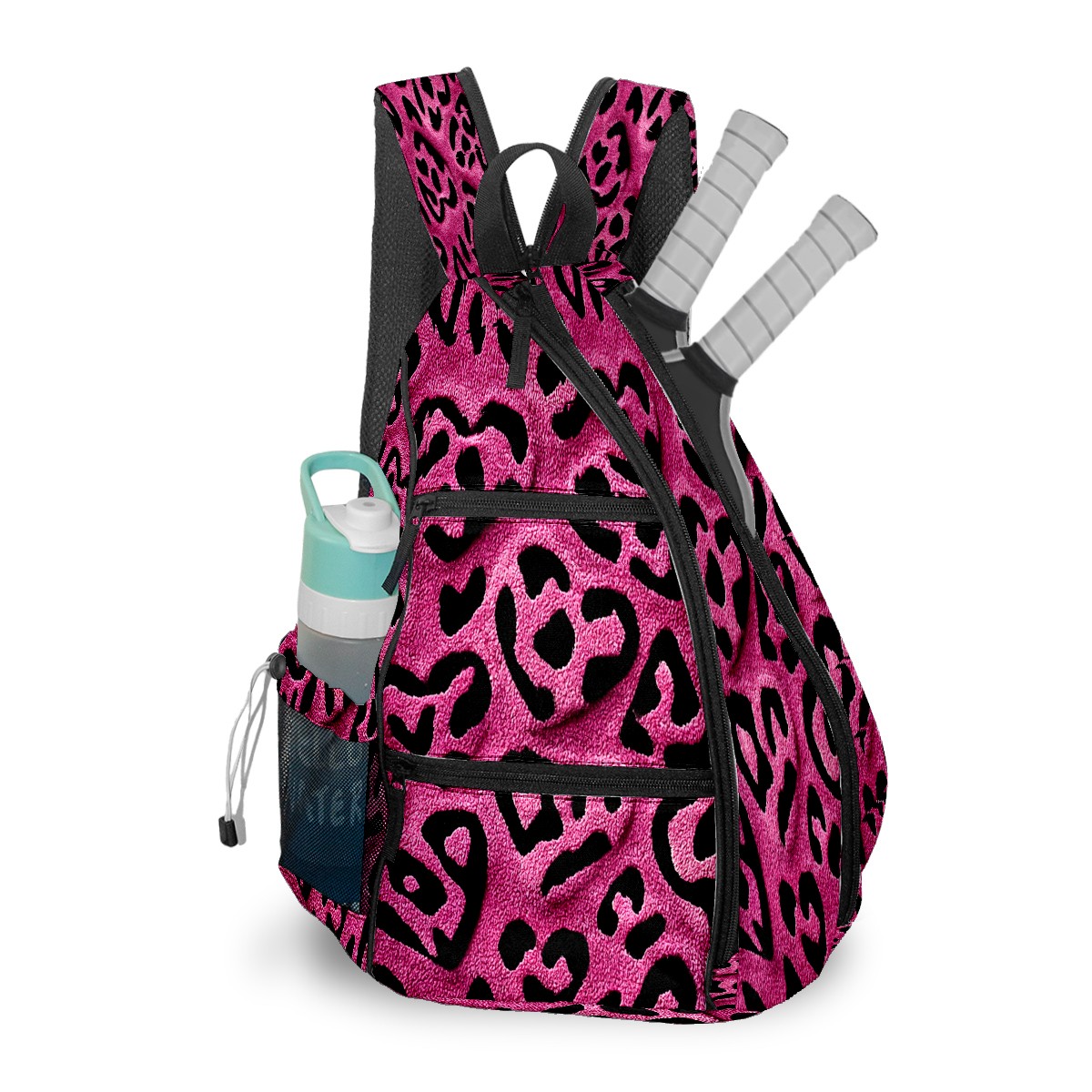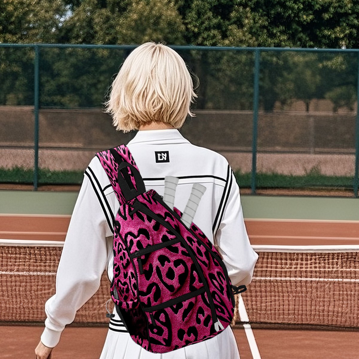 Counullo Charming Leopard Pink 3-in-1 Premium Nylon Pickleball Backpack, Convertible Shoulder & Crossbody Bag for Women & Men, Holds 2-4 Paddles & Sports Gear
